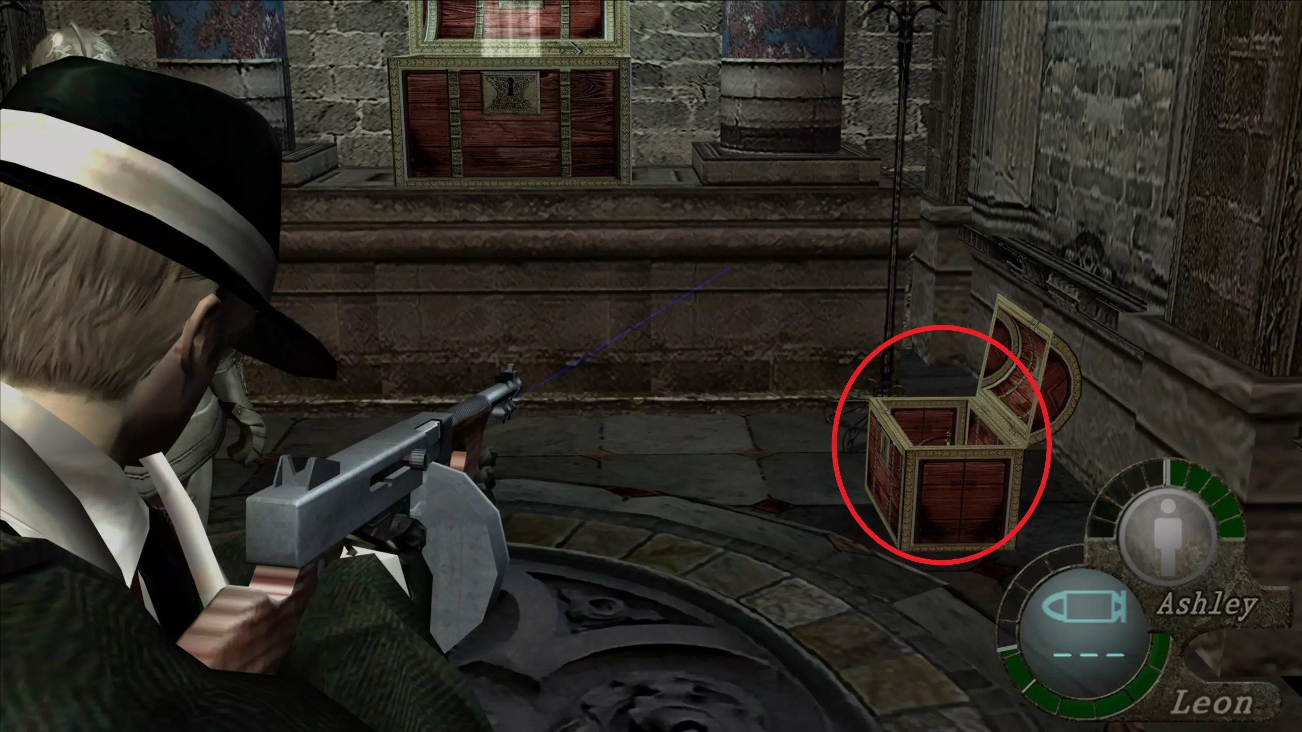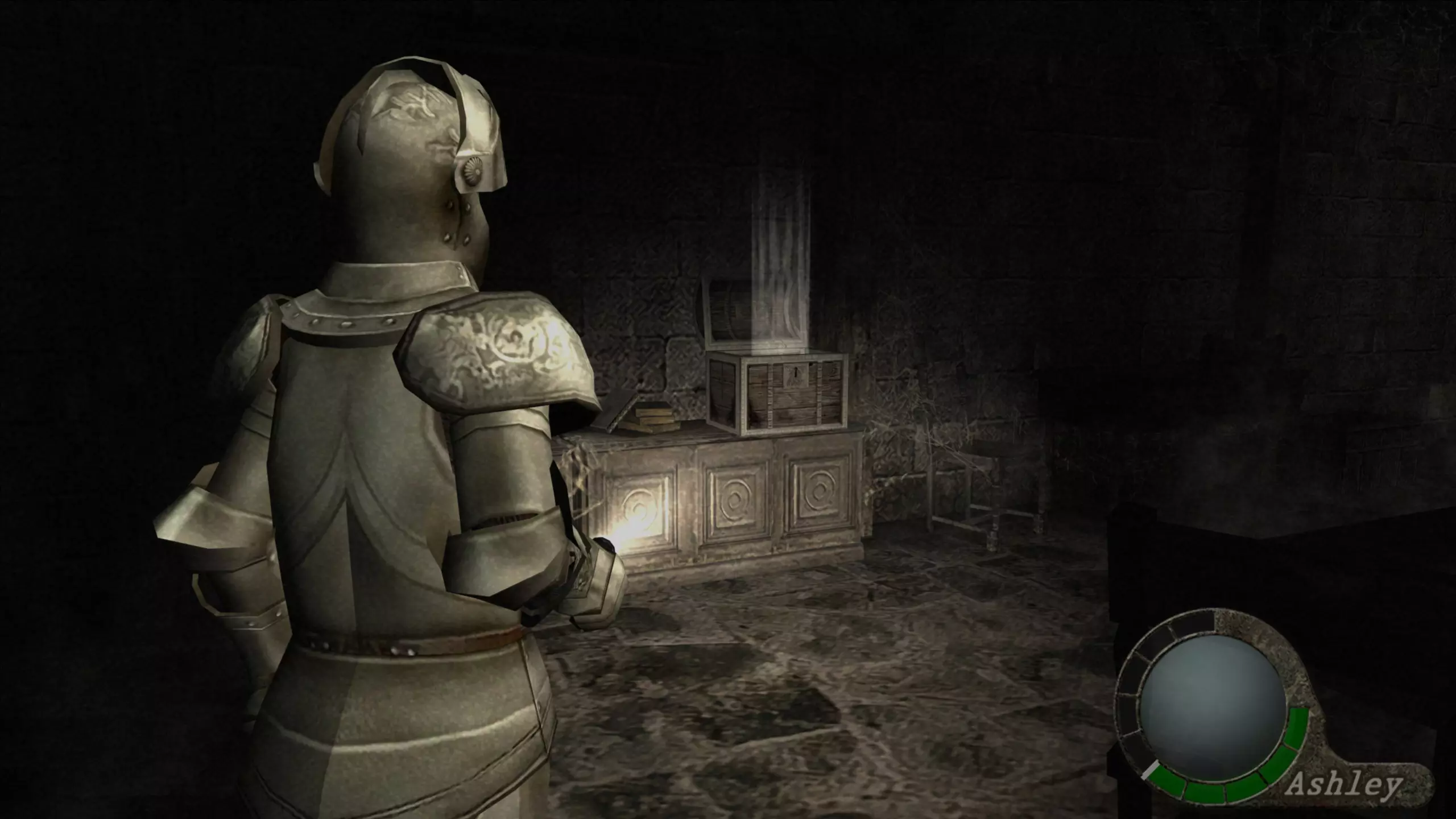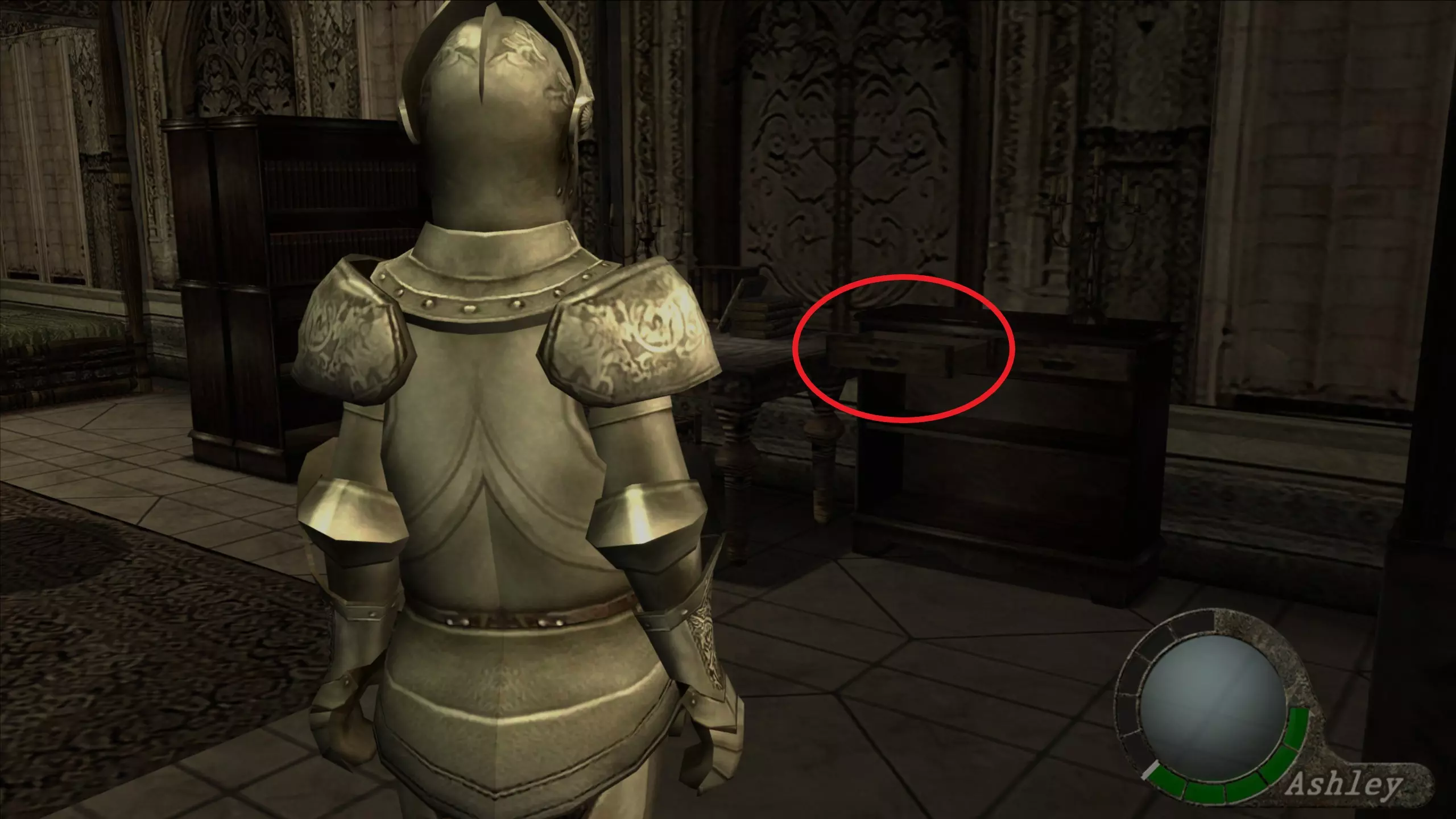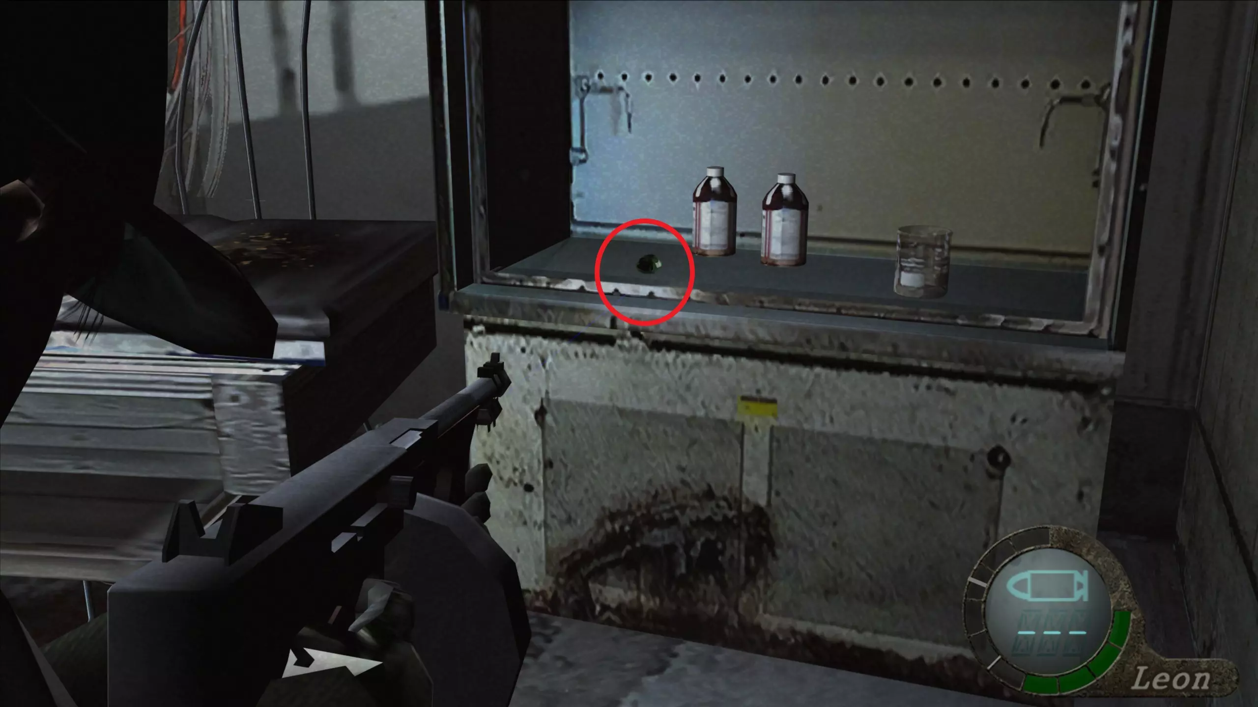 【绿宝石(3)】 在看到阿什莉被囚禁的过场动画后,我们需要继续前进,会看到一些储物柜,绿宝石就在我们能打开的第三个储物柜里。