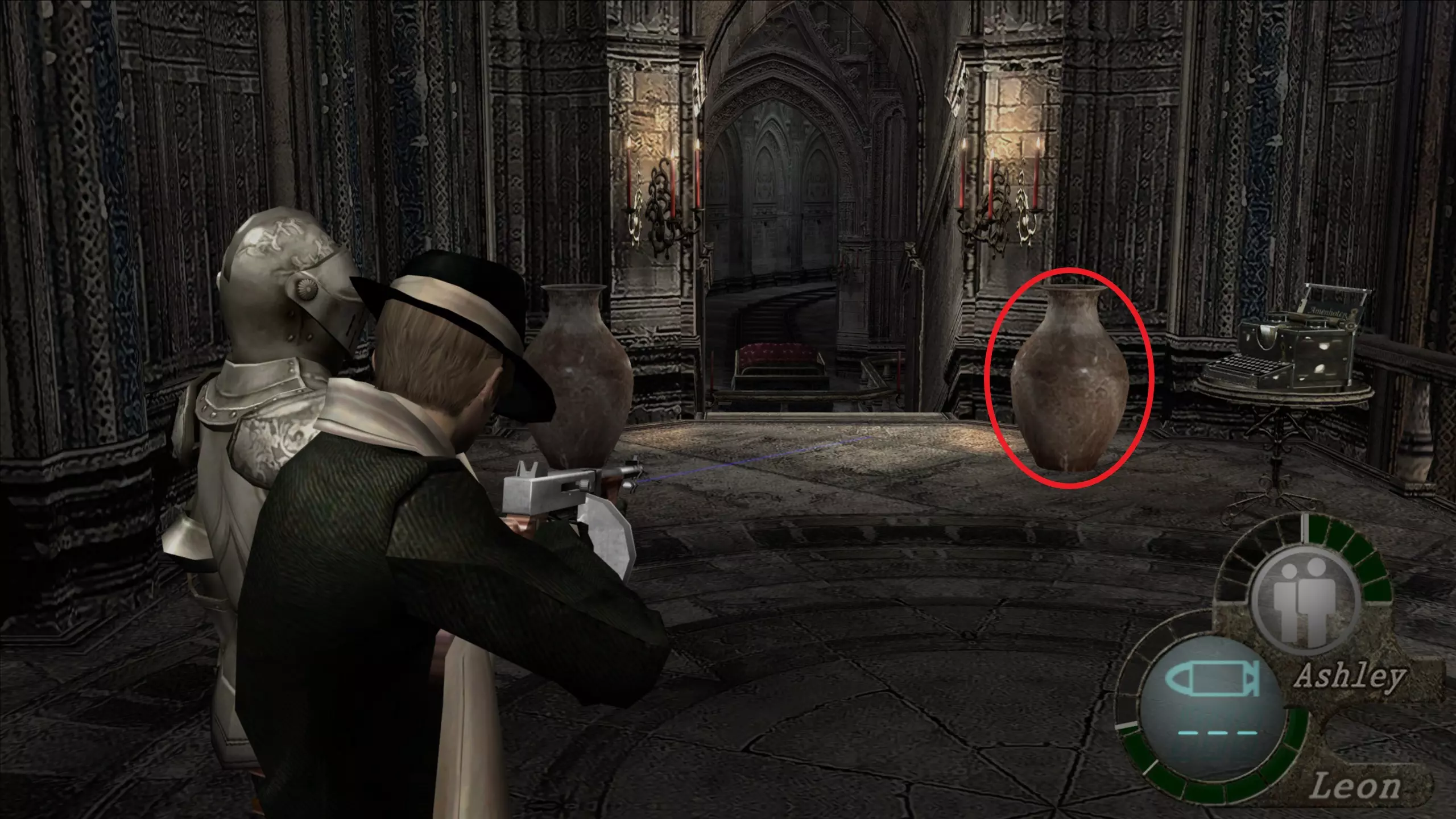 埃斯皮内拉(18):穿过我们拿到圆形徽章的相邻门后,会发现她正在破坏一个烛台。
