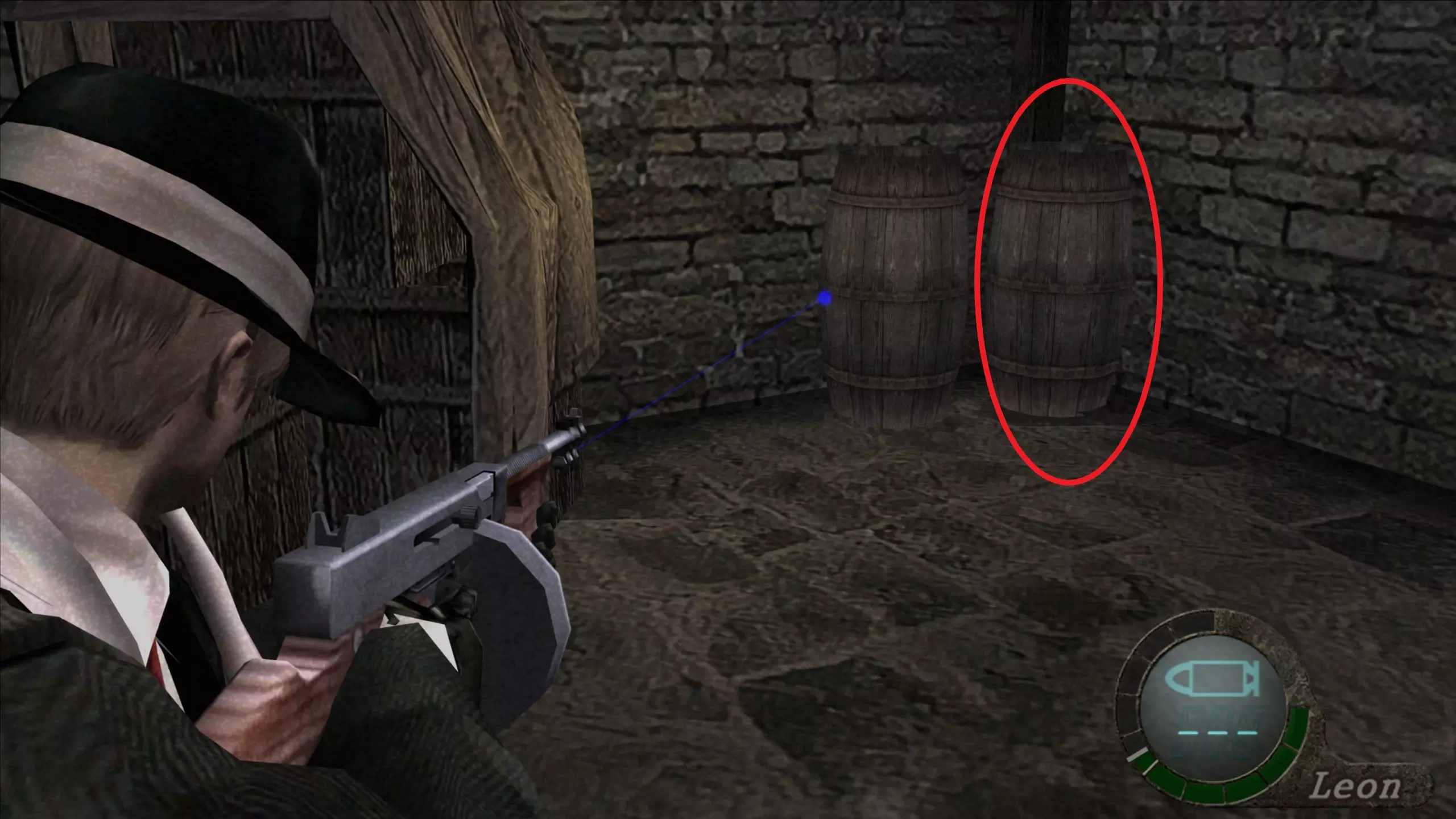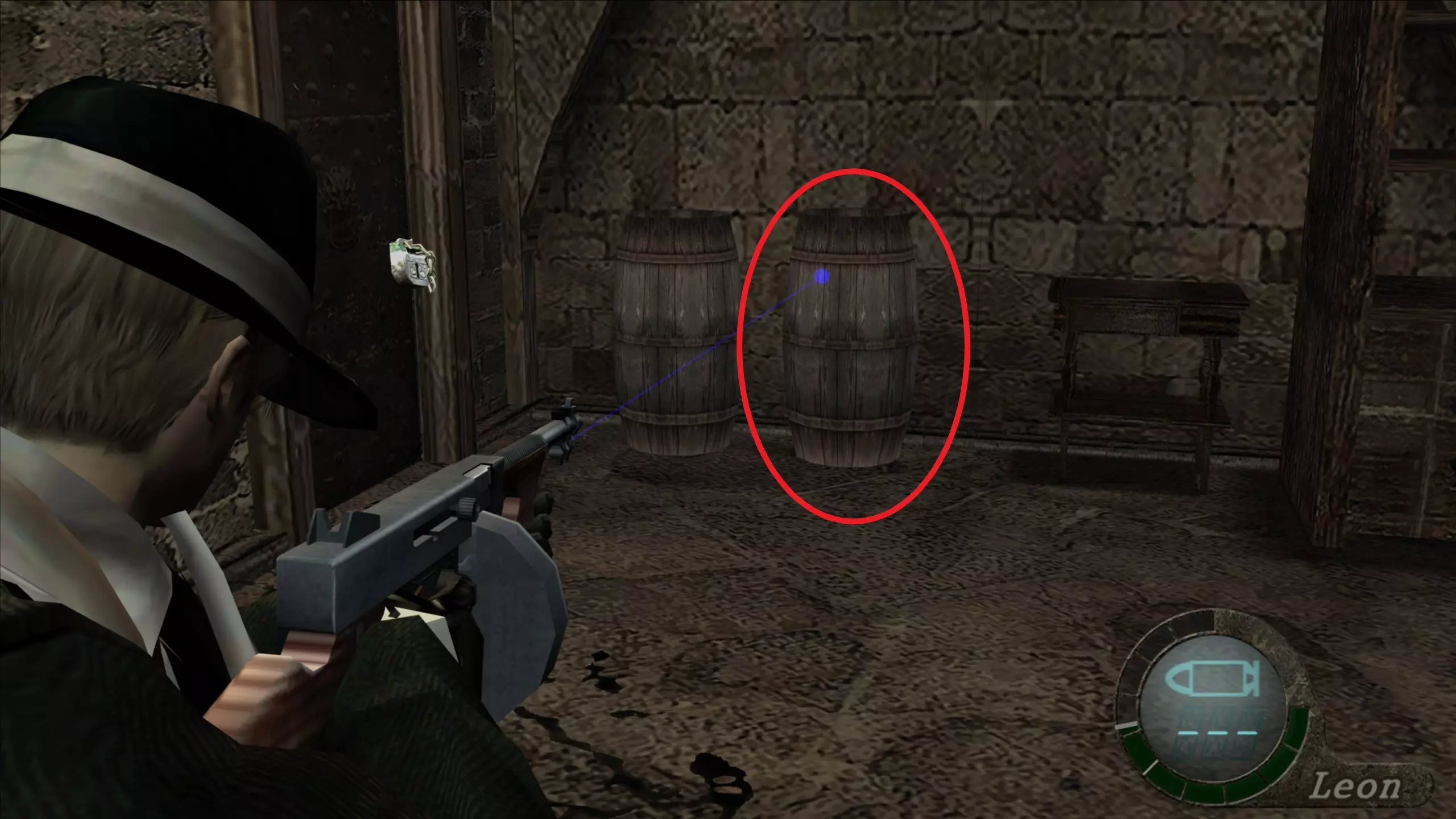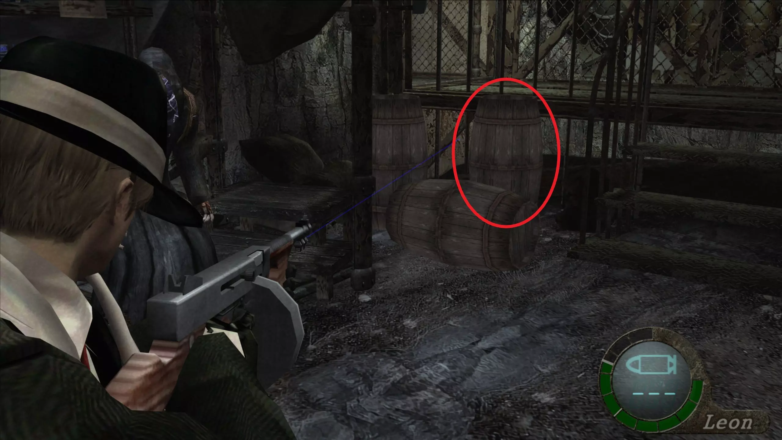 第1-2章 霰弹枪(8发) 这把霰弹枪可以在左侧的烤箱里找到,就在带有TNT的牲畜前面。