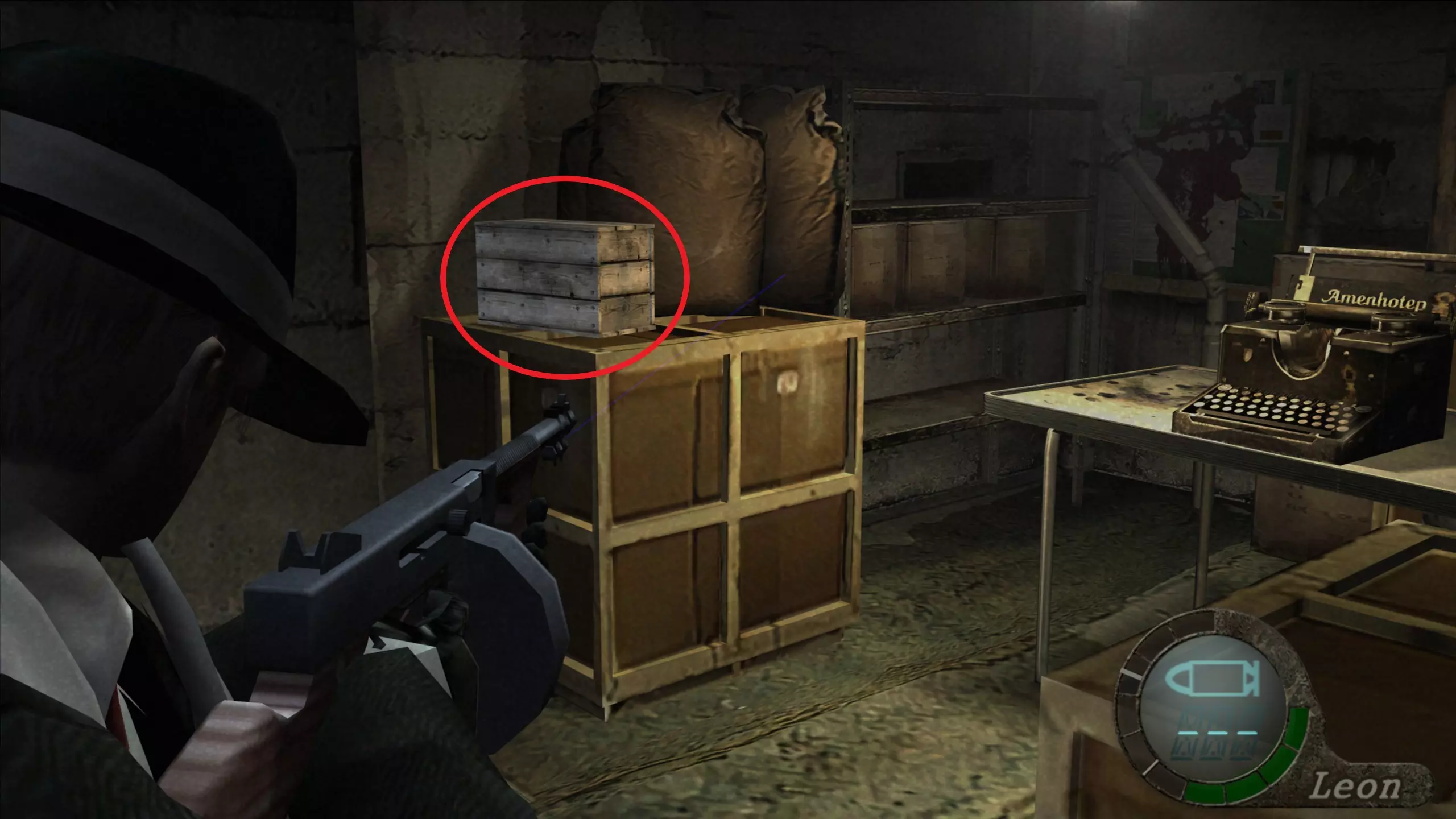 怀表(2)(可出售) 遭遇携带炸药的敌人后,我们需要穿过门,宝藏位于左侧房间内的一个箱子里,旁边还有一台打字机。
