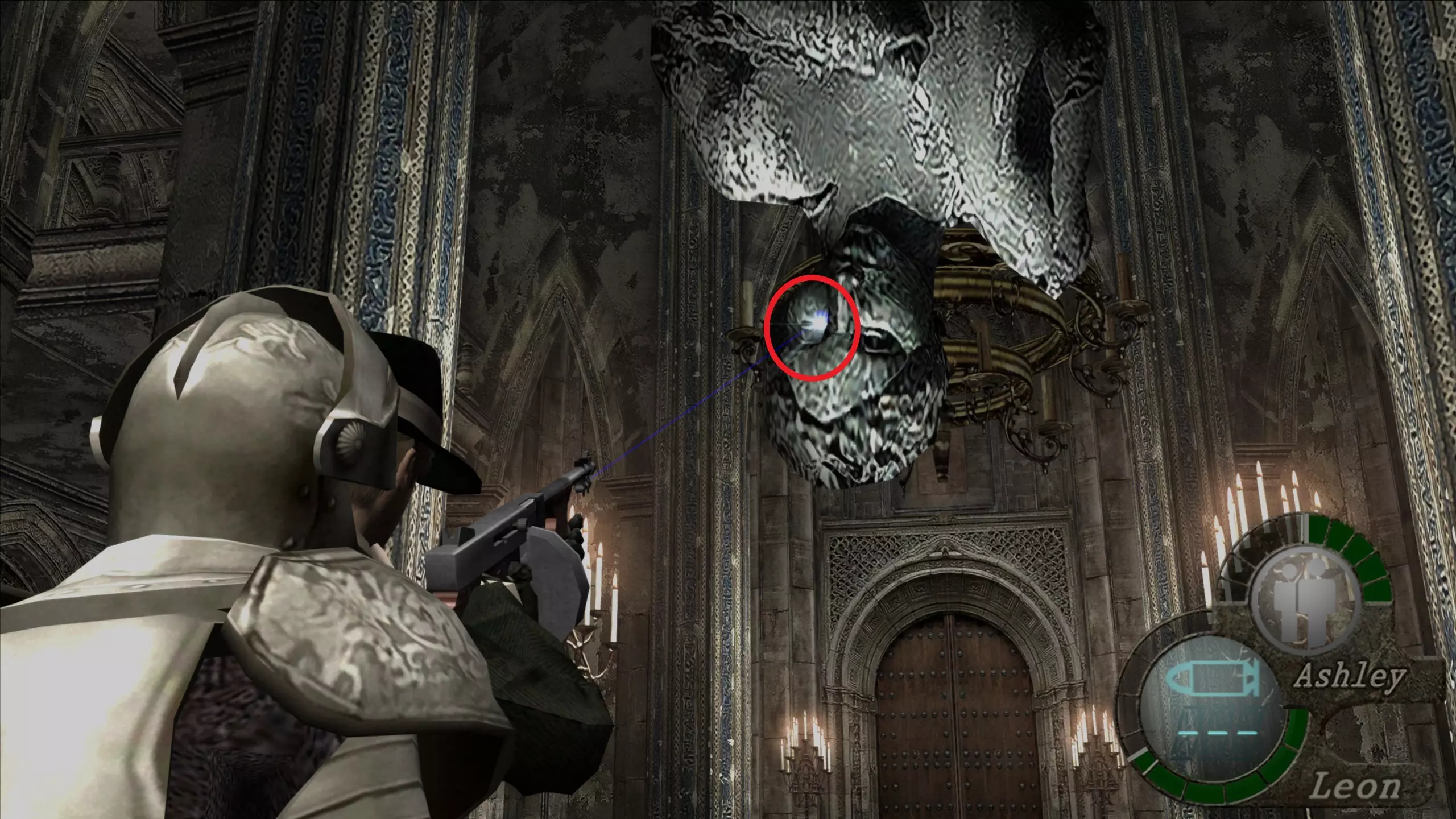 诺维斯特ador的巢穴 在诺维斯特ador抓走阿什莉的过场动画之后,我们会遇到这个巢穴。必须通过射击来摧毁它,以获取可以和蝴蝶烛台组合的眼睛。