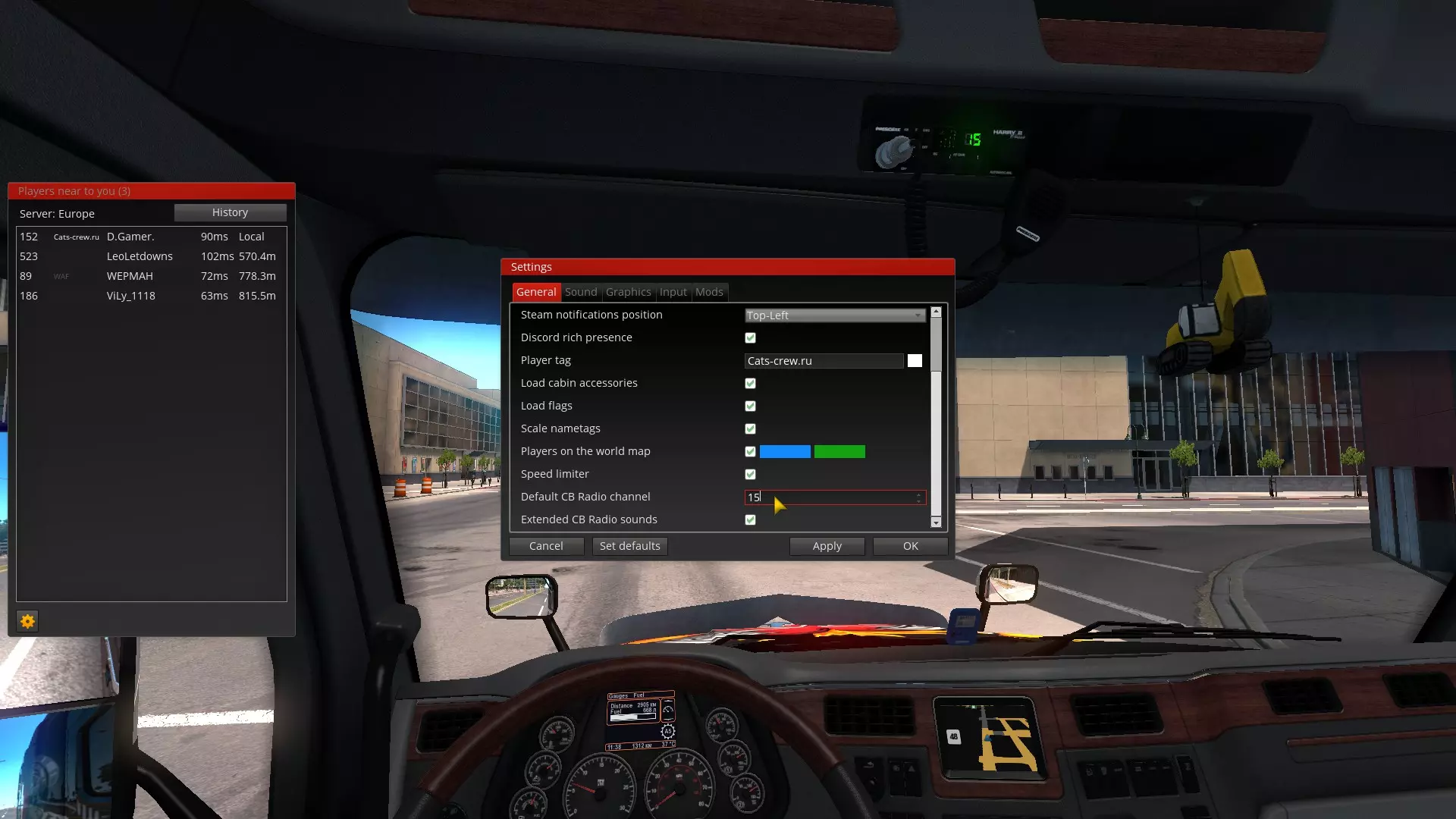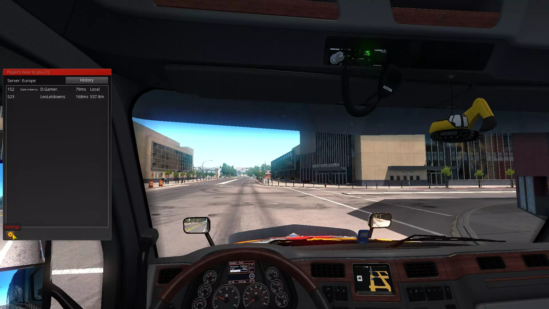 对讲机是用于在公路上与卡车司机和其他交通参与者联系的工具。 在现实生活中,要与长途卡车司机在长途货运频段上工作,需要调至27.135兆赫的频率——这是欧洲C网格的15频道。 并且,为了增加【美国卡车模拟】多人模式的沉浸感,我们想向您介绍游戏中对讲机的设置以及我们的俄语15频道。 【美国卡车模拟】多人模式中15频道的设置 1.首先看一下你的驾驶室,查看当前的频道设置。