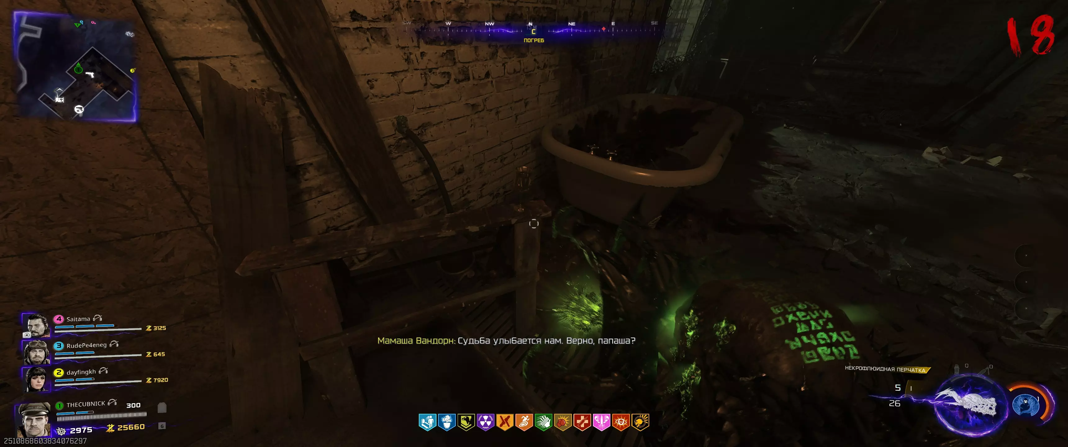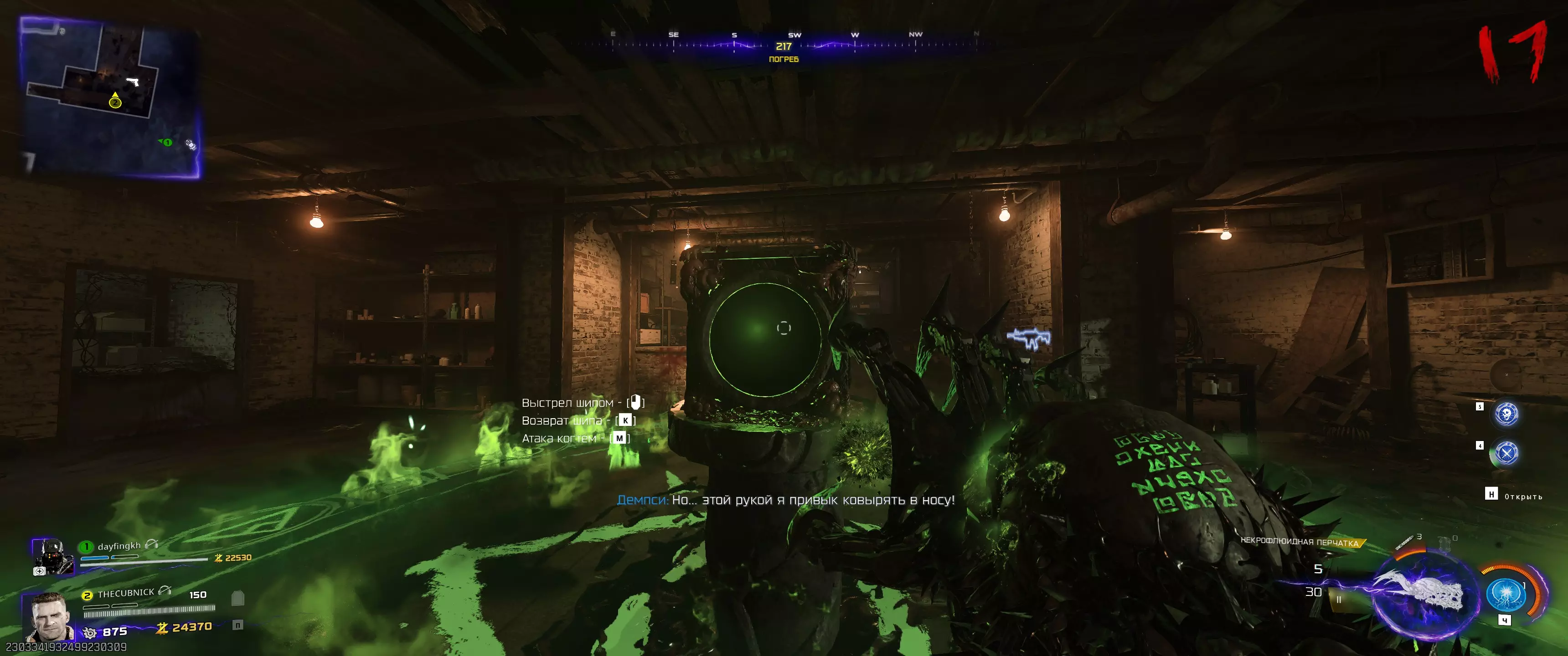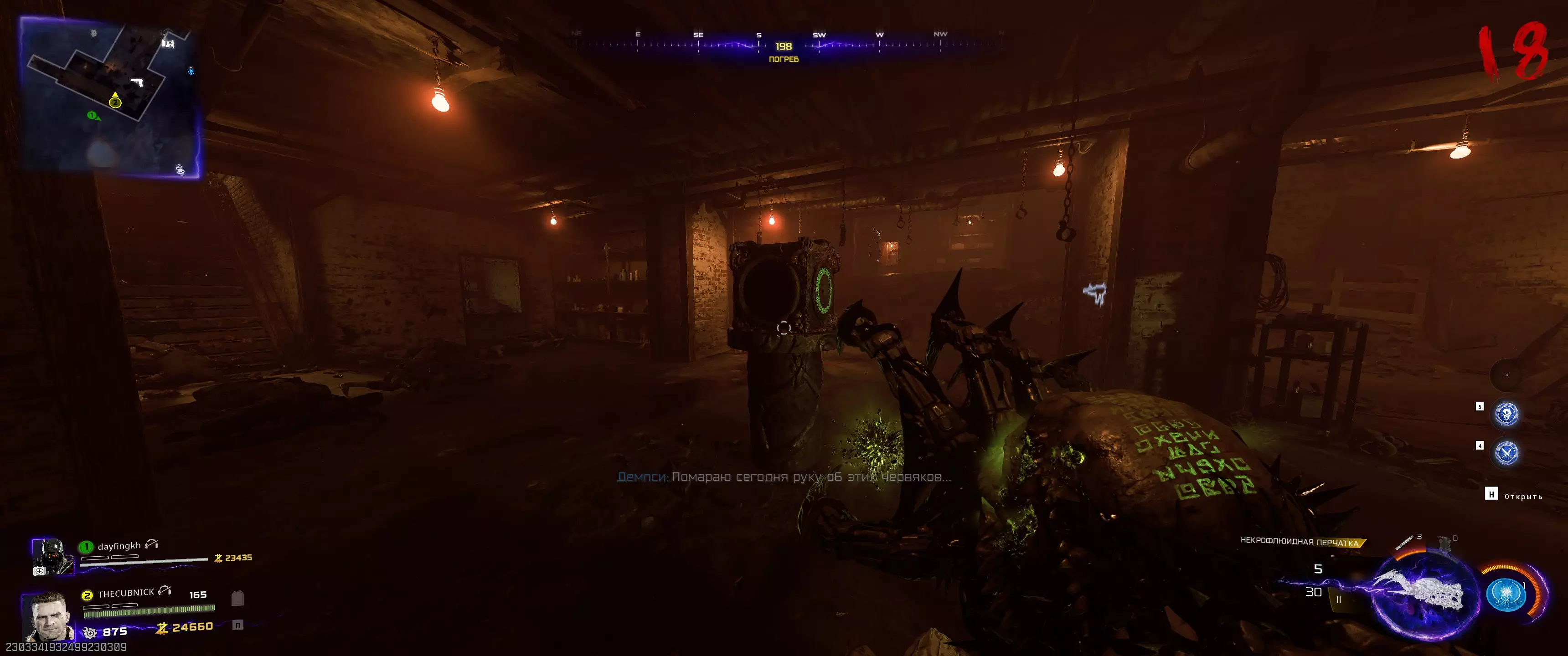 之后需要“唤醒”三个绑定在各自位置的僵尸。 机械师(橙色闪电):召唤克劳斯并派他前往同一房间内的僵尸尸体处。