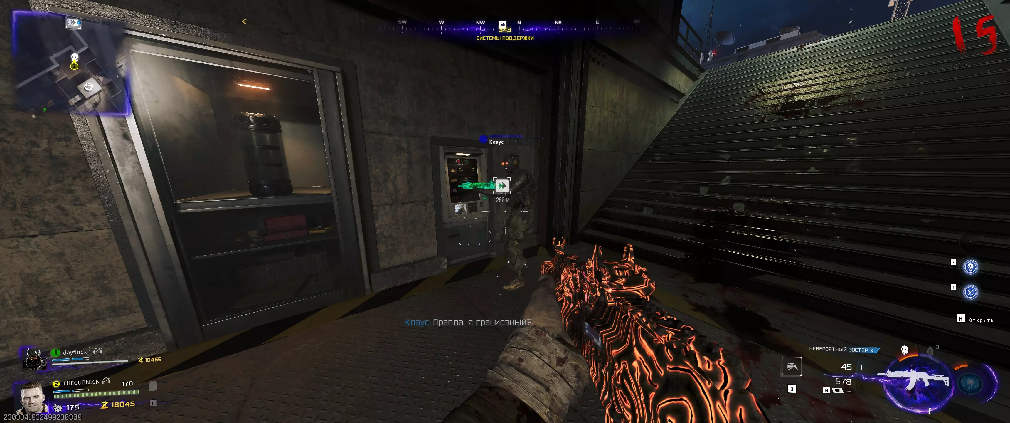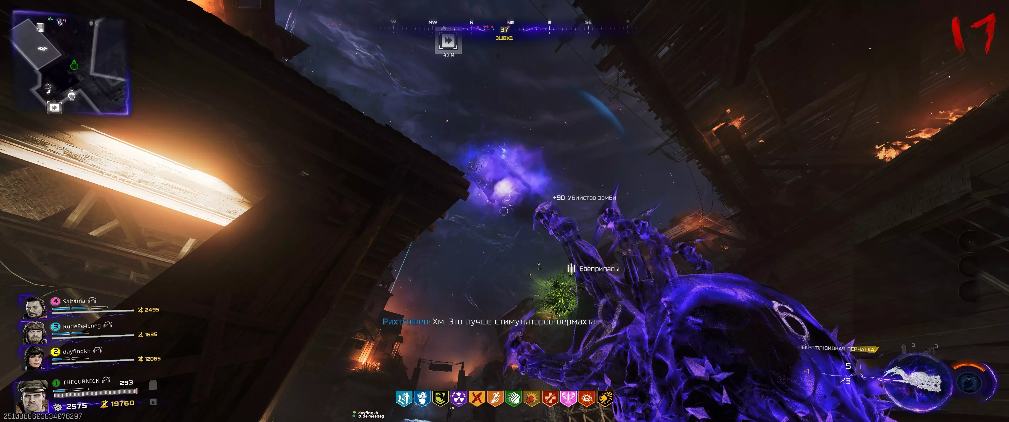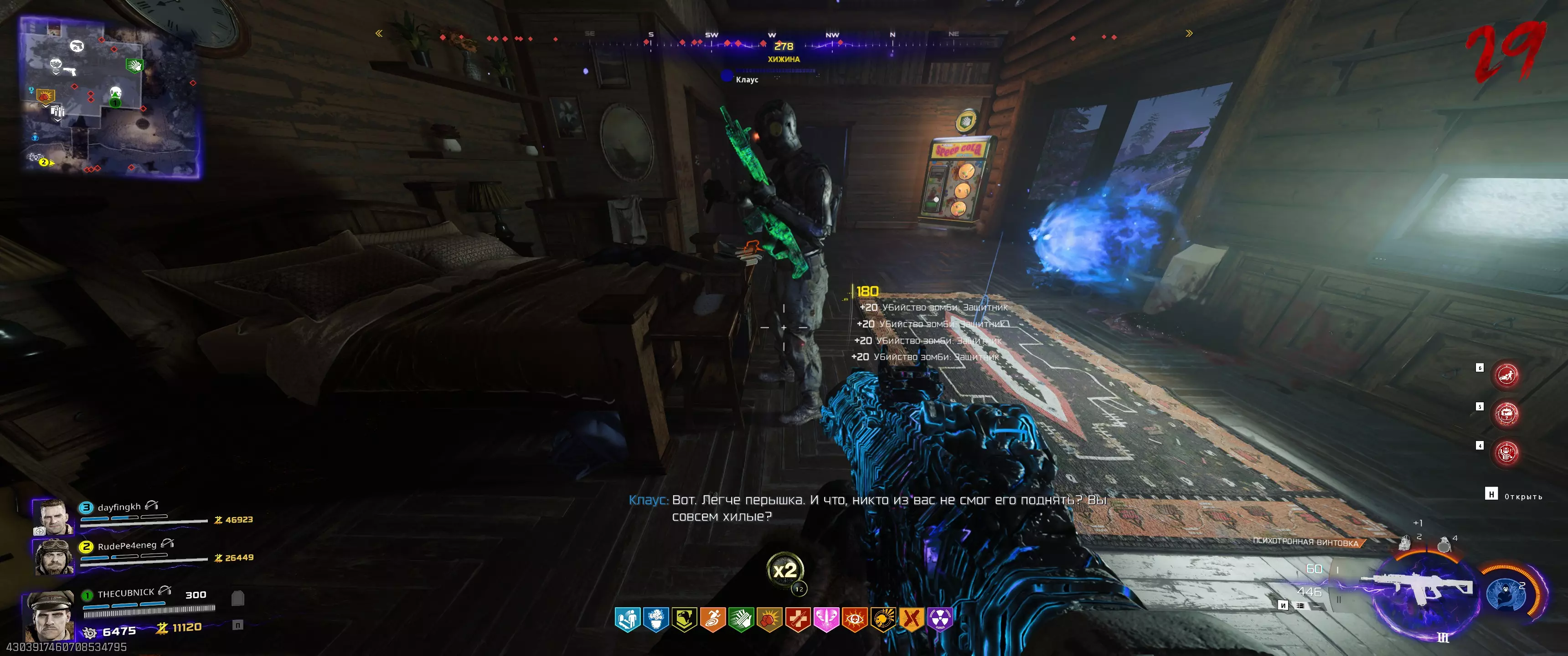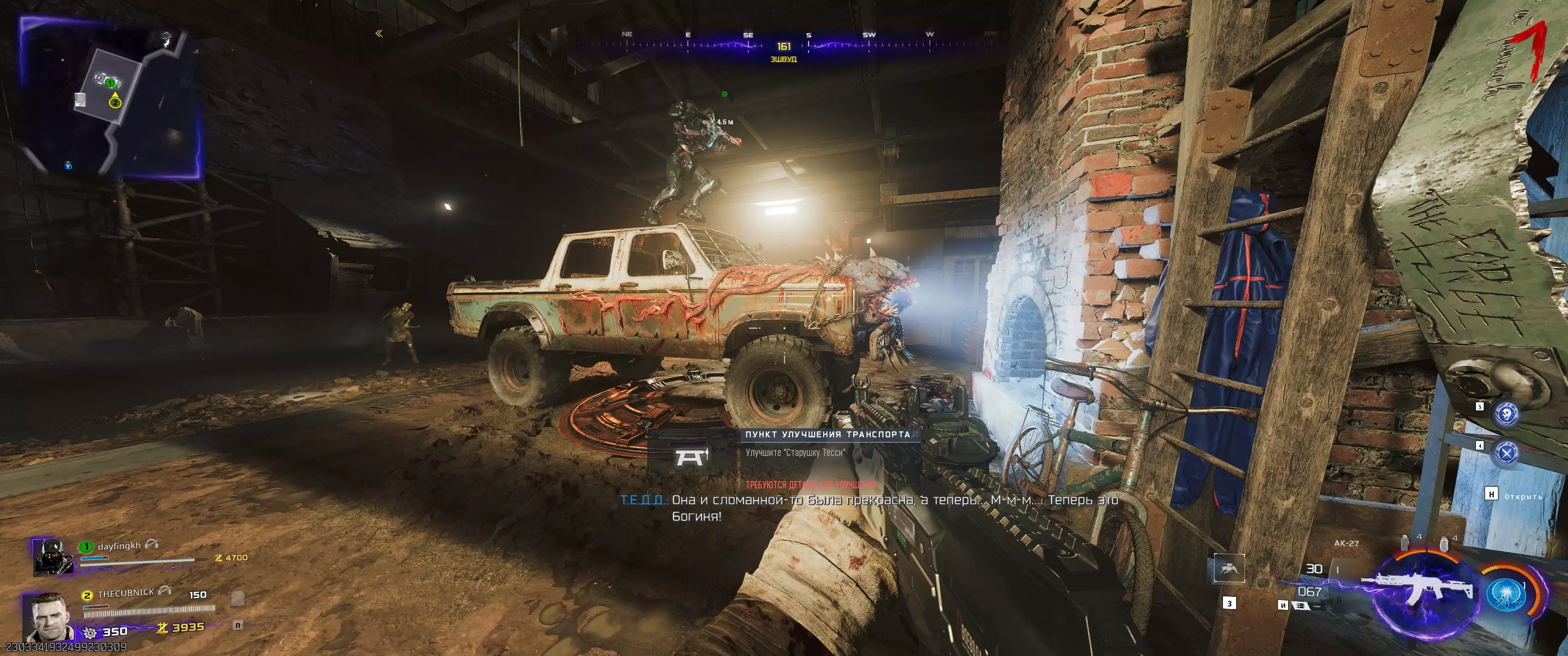 之后需要“唤醒”三个绑定在各自位置的僵尸。 机械师(橙色闪电):召唤克劳斯并派他前往同一房间内的僵尸尸体处。