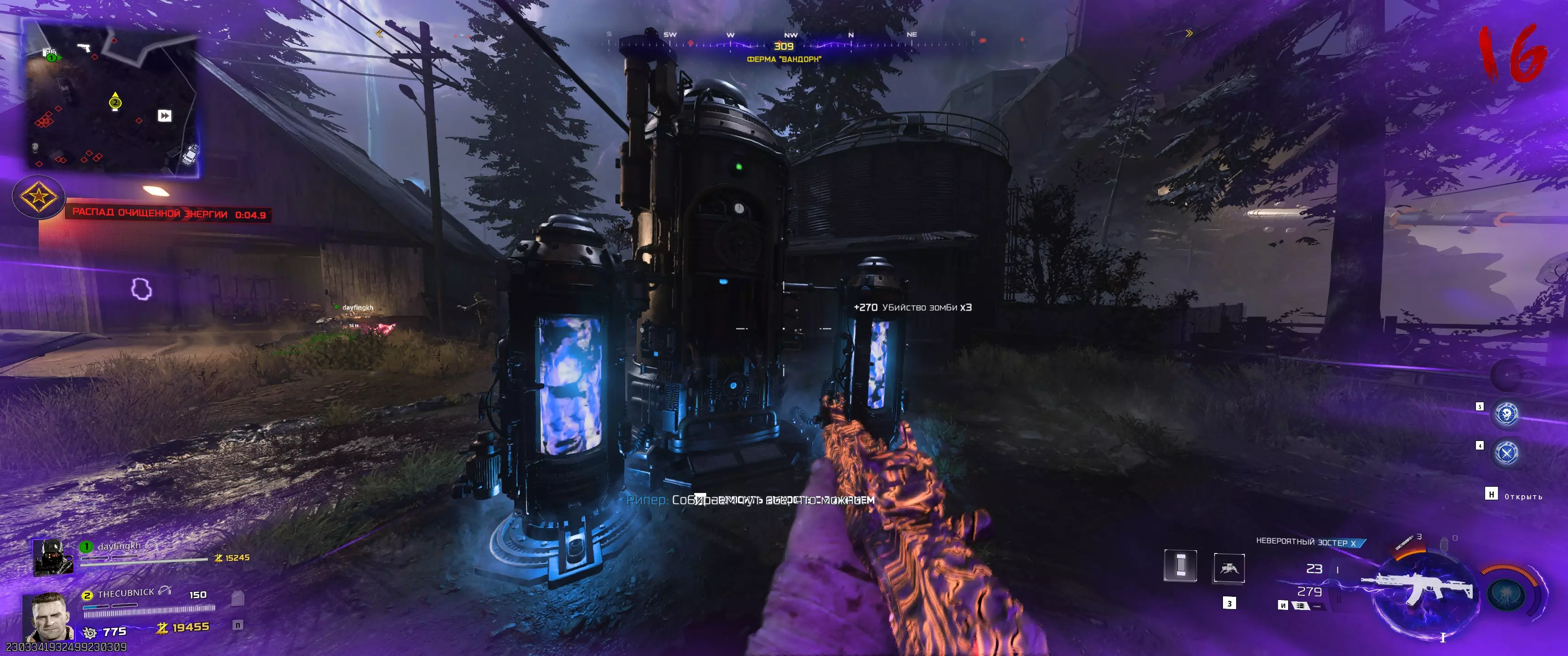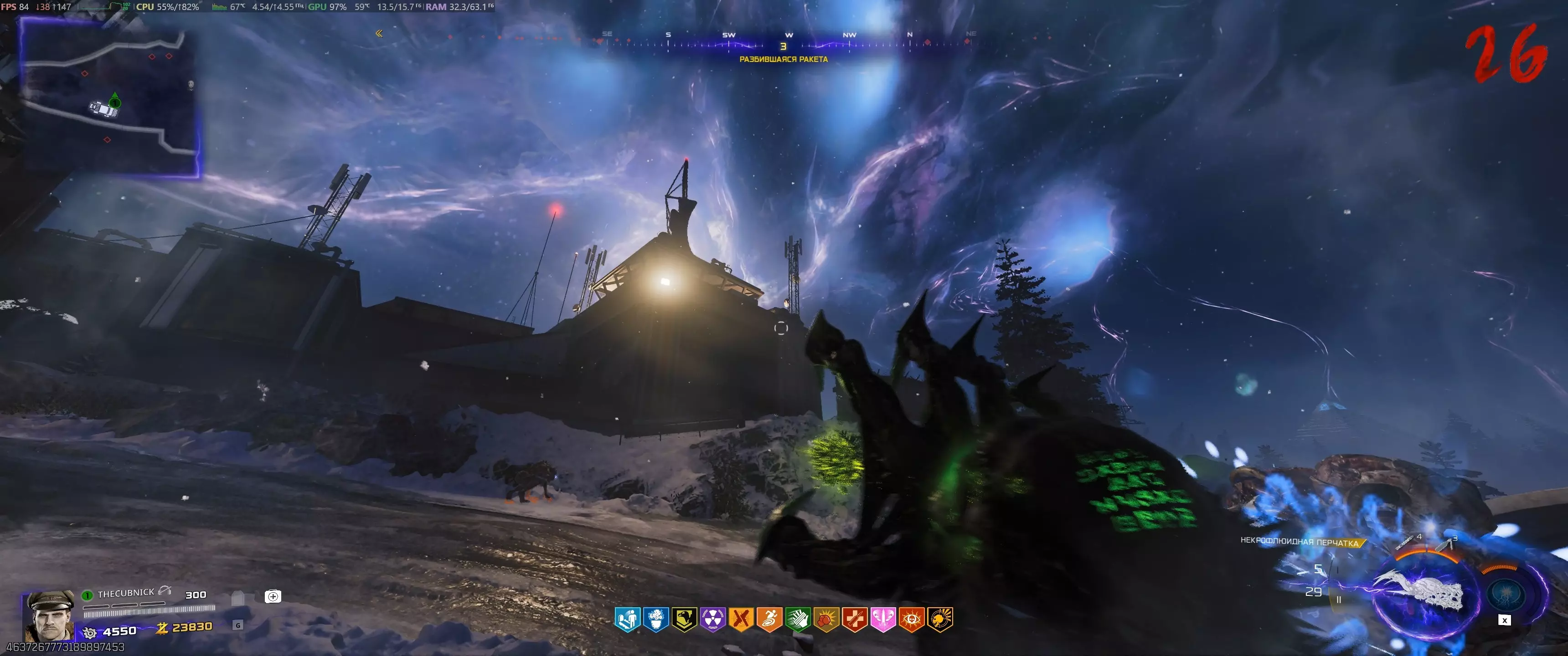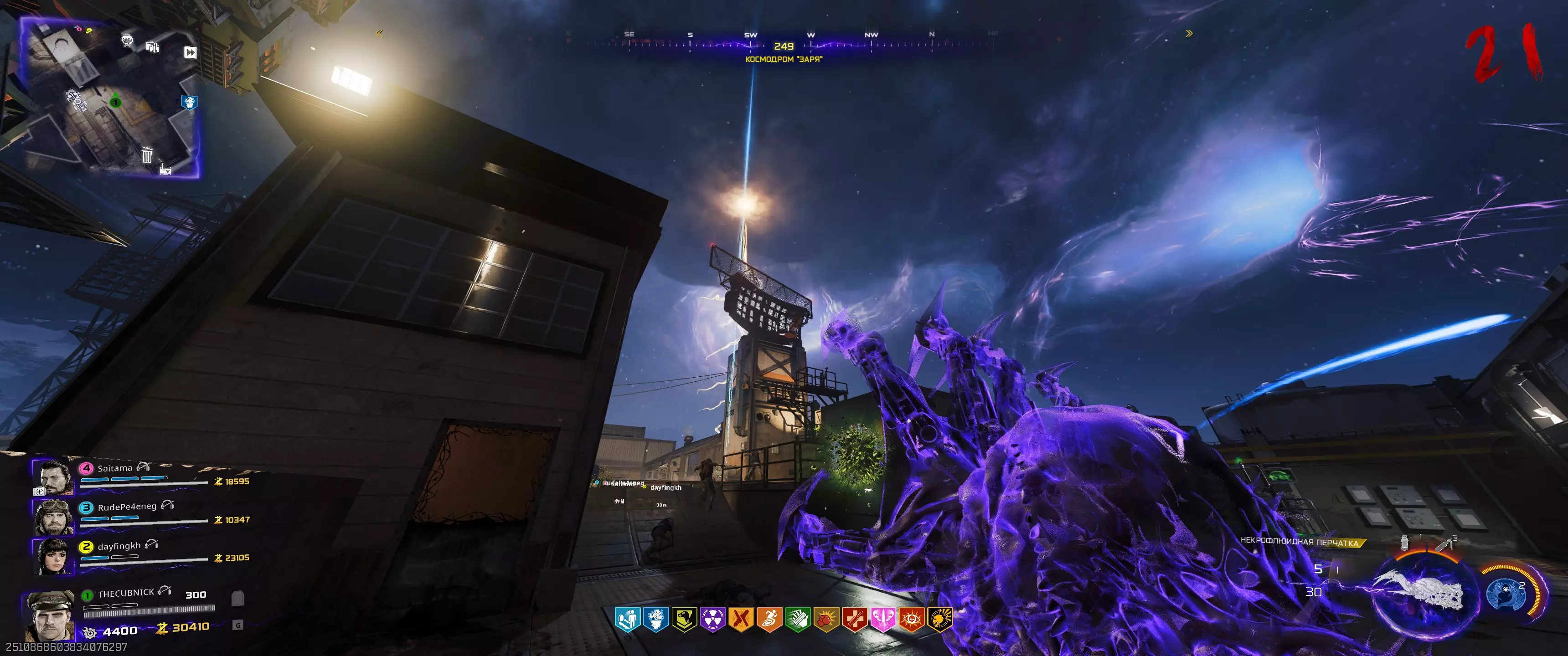 阶段2.3:115号站点 开始此阶段前需了解的事项: - 用手套射击时钟会启动一分钟计时器; - 需已购买【徒手玛奇朵】技能; - 此阶段存在一定随机性,因为并非每轮闪电都会闪烁; - 此阶段在合作模式中比单人模式简单得多。不过,若遇到问题,可分多次尝试,但这会增加回合数量。等待115区上空出现彩色闪电的时刻,然后前往那里。使用充能手套,向汽修厂屋顶上的时钟反方向射击。