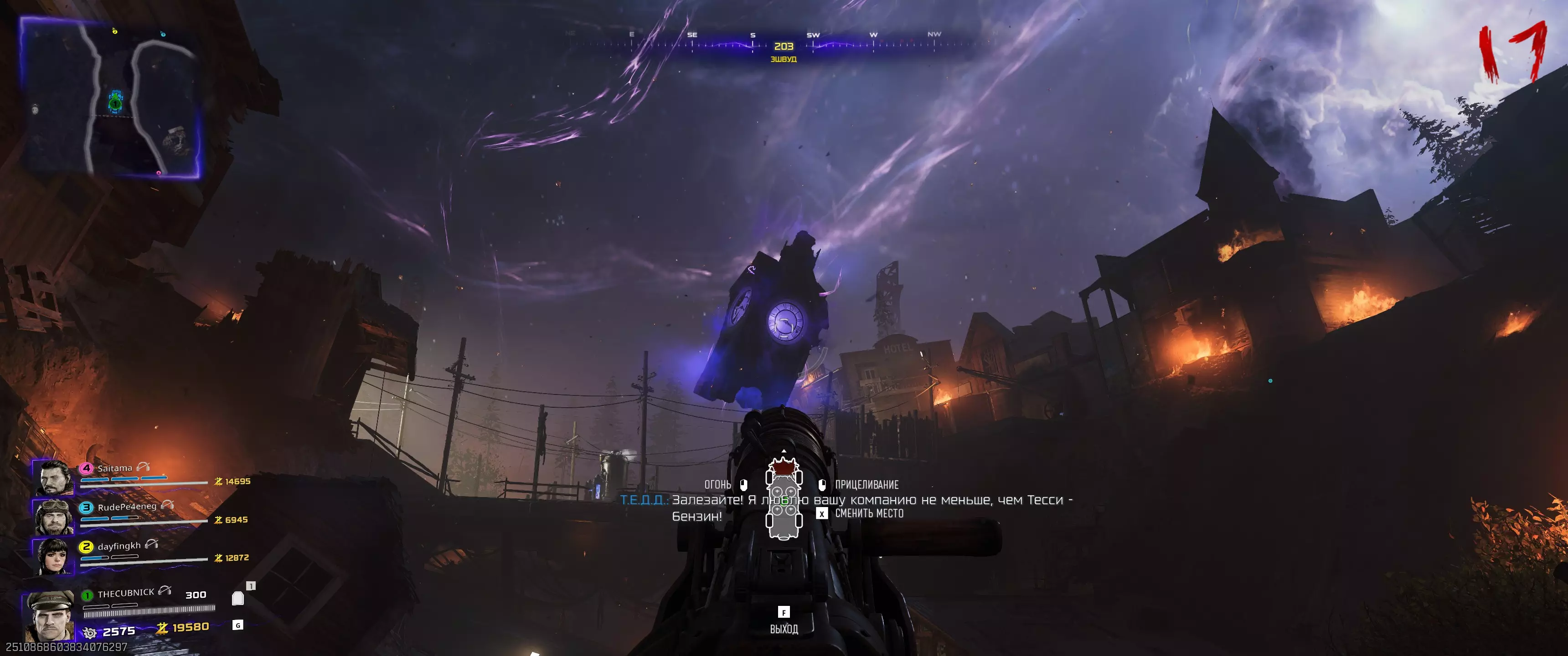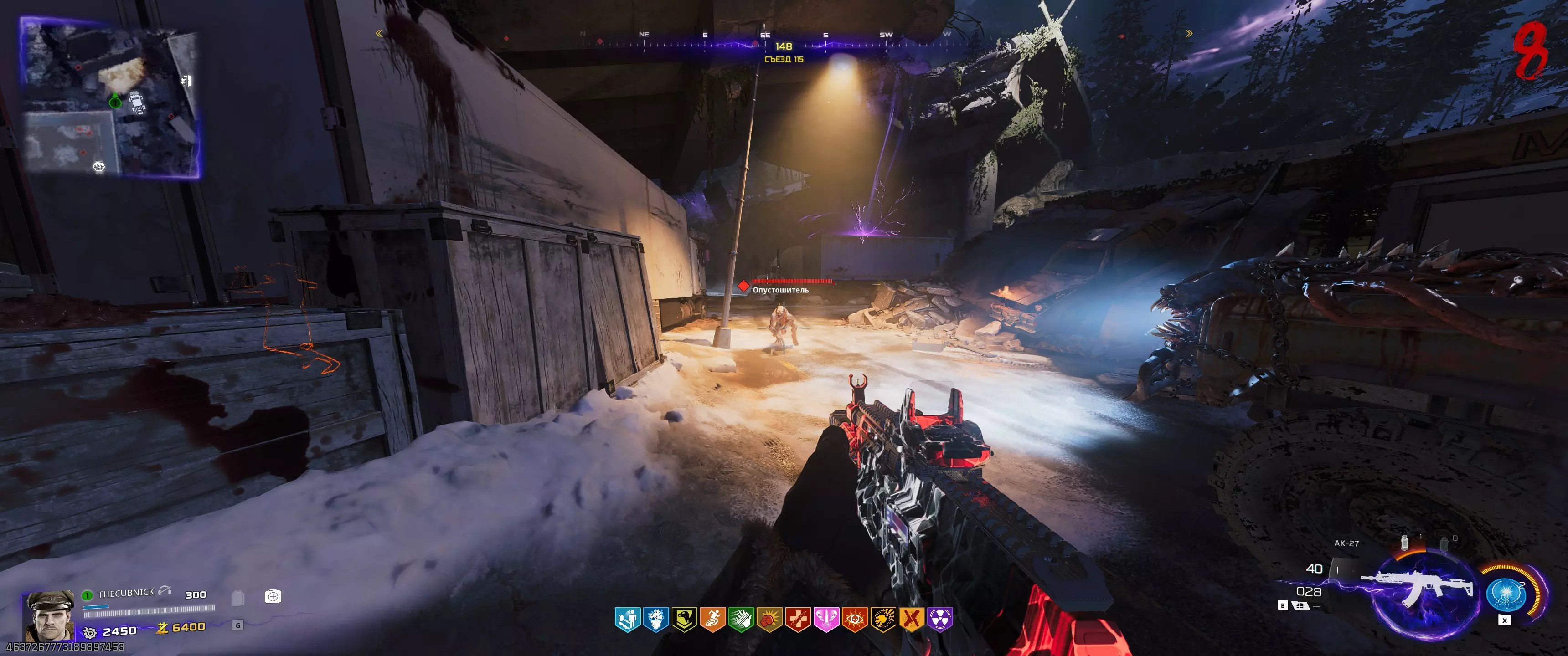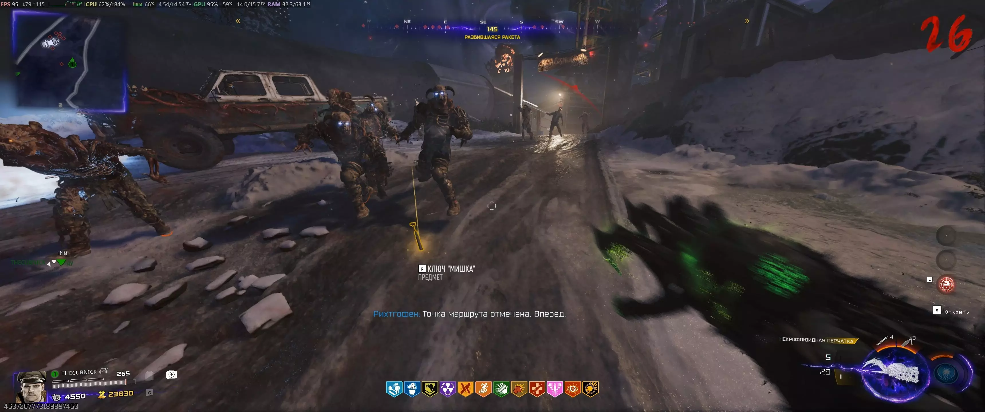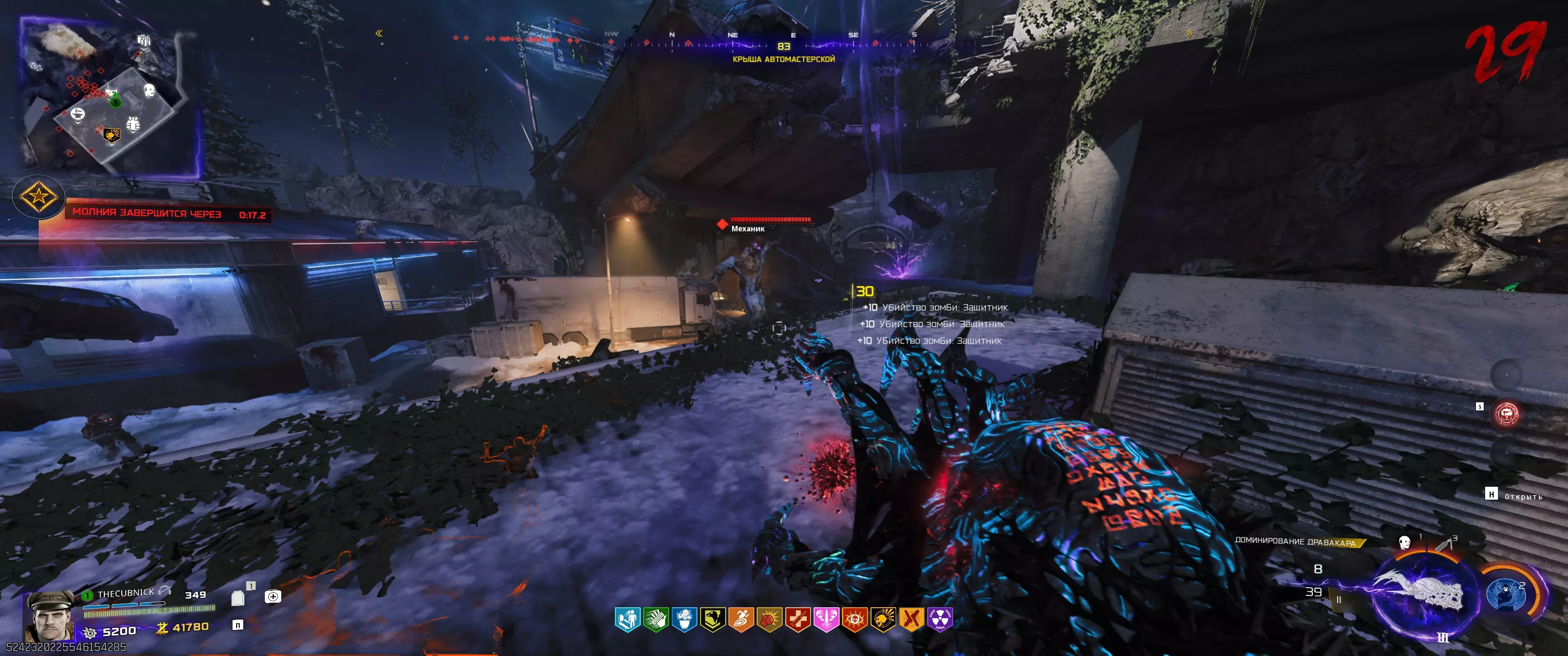 阶段2.3:115号站点 开始此阶段前需了解的事项: - 用手套射击时钟会启动一分钟计时器; - 需已购买【徒手玛奇朵】技能; - 此阶段存在一定随机性,因为并非每轮闪电都会闪烁; - 此阶段在合作模式中比单人模式简单得多。不过,若遇到问题,可分多次尝试,但这会增加回合数量。等待115区上空出现彩色闪电的时刻,然后前往那里。使用充能手套,向汽修厂屋顶上的时钟反方向射击。