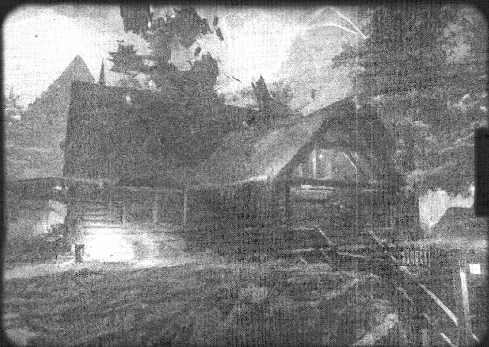 之后我们跑进小木屋,进入有投影仪的房间,用充能手套射击投影仪。此时投影仪会显示4张带有地点的幻灯片——我们需要记住它们的顺序。
