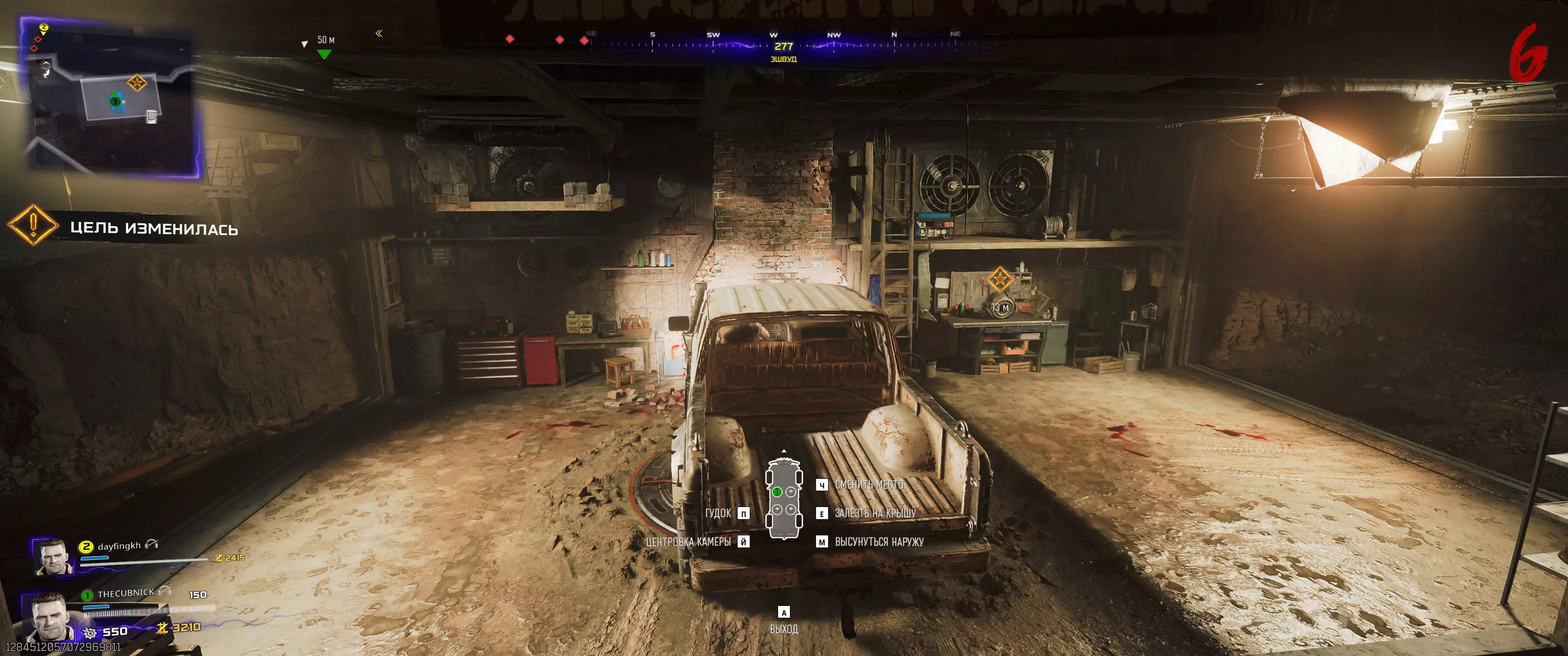 之后再次坐上皮卡车,把它开进车库,然后走到右边的工作台,为我们的皮卡车安装升级器。