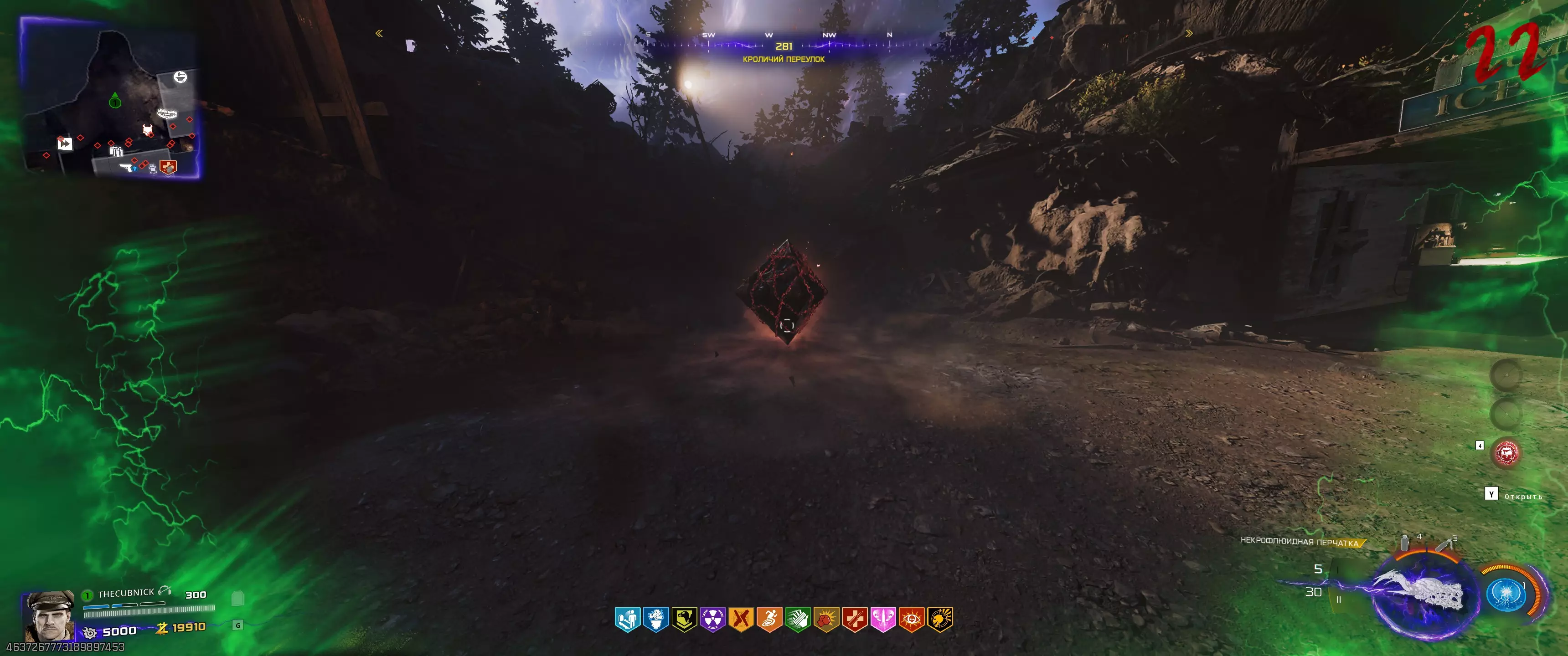 从眼睛所在的位置,会出现【死灵流体手套】——我们拿起它。此时,我们会被包围在立方体周围。