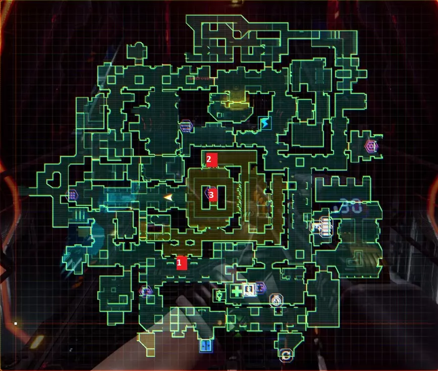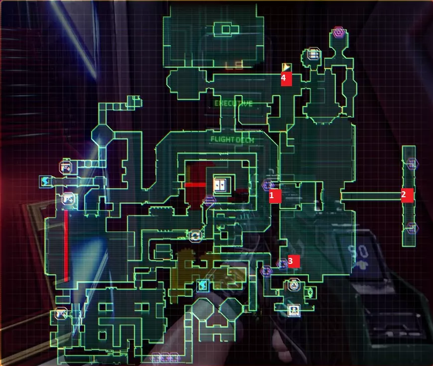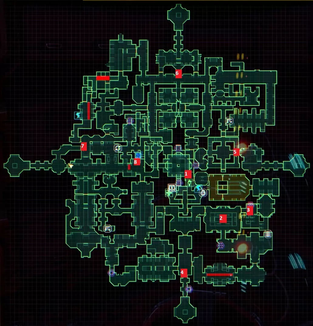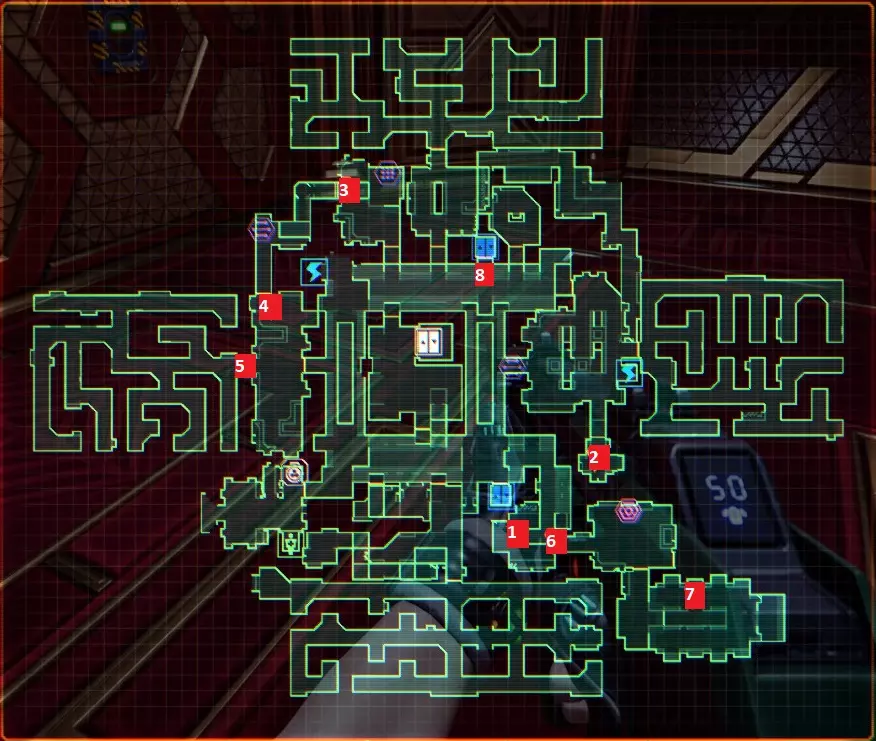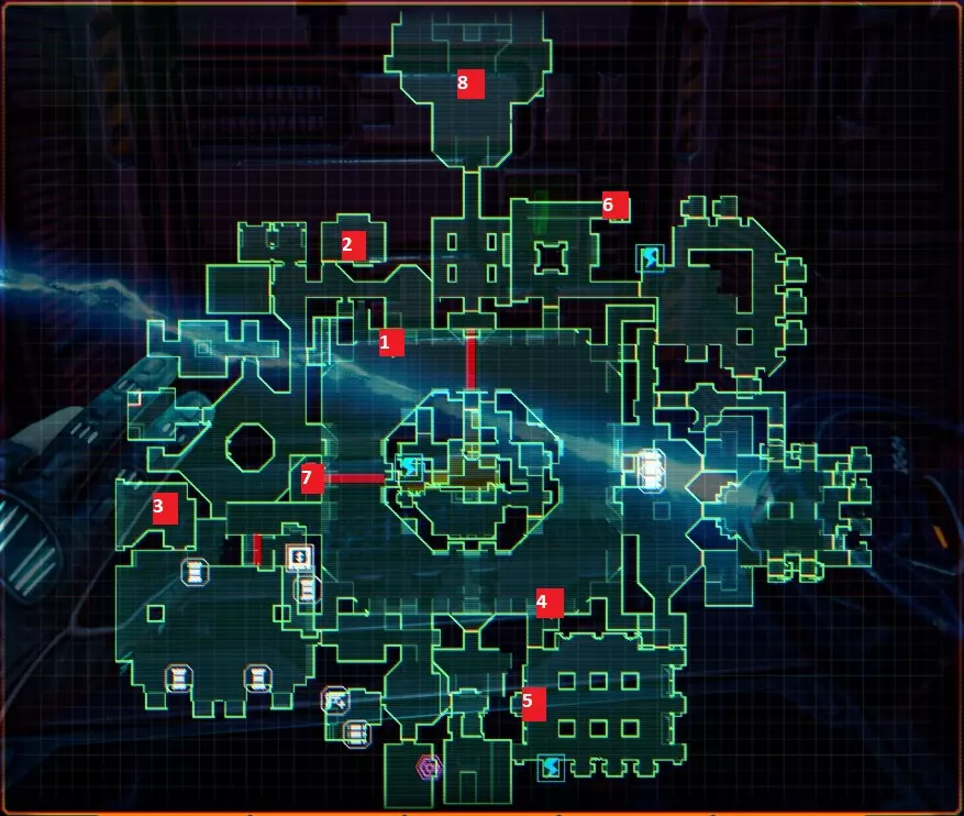 “他们不是在创造程序,他们是在召唤神明”——SHODAN如此说道。 事情不该是这样的,我们会纠正这一切。 医疗甲板 行动顺序已标注在地图上,下方为说明。