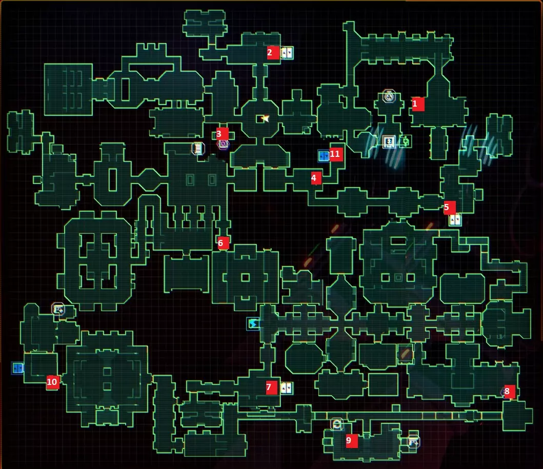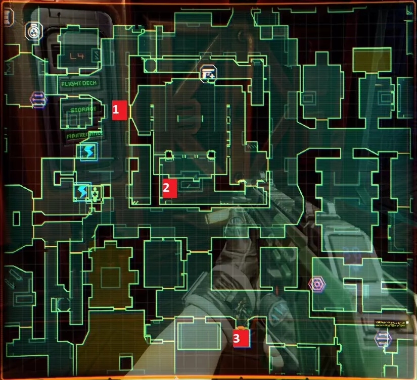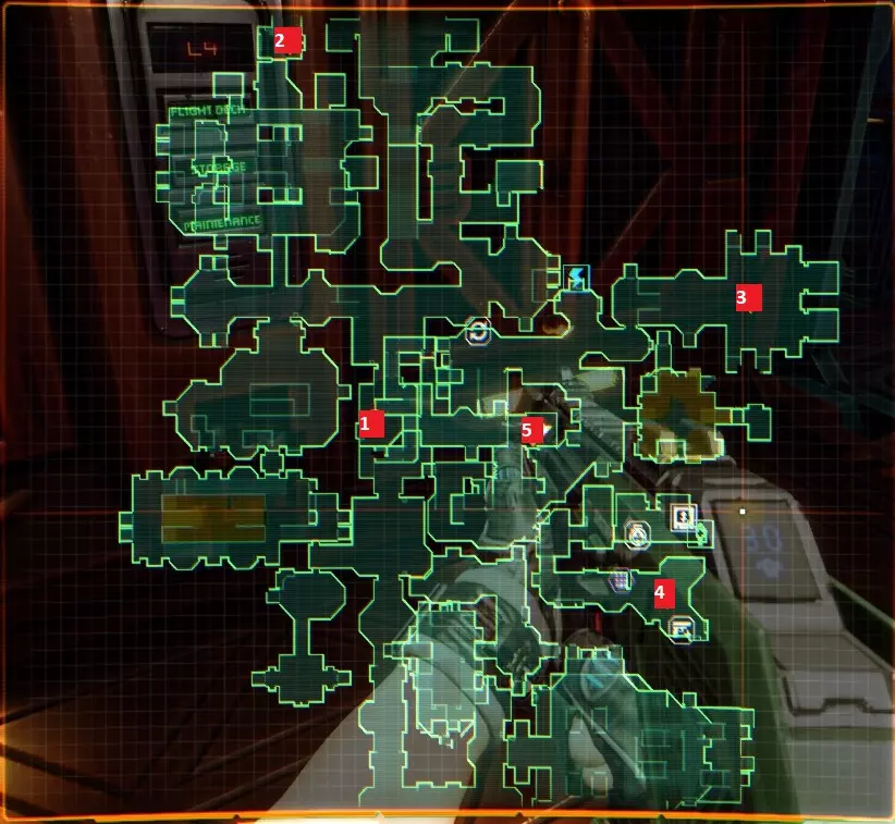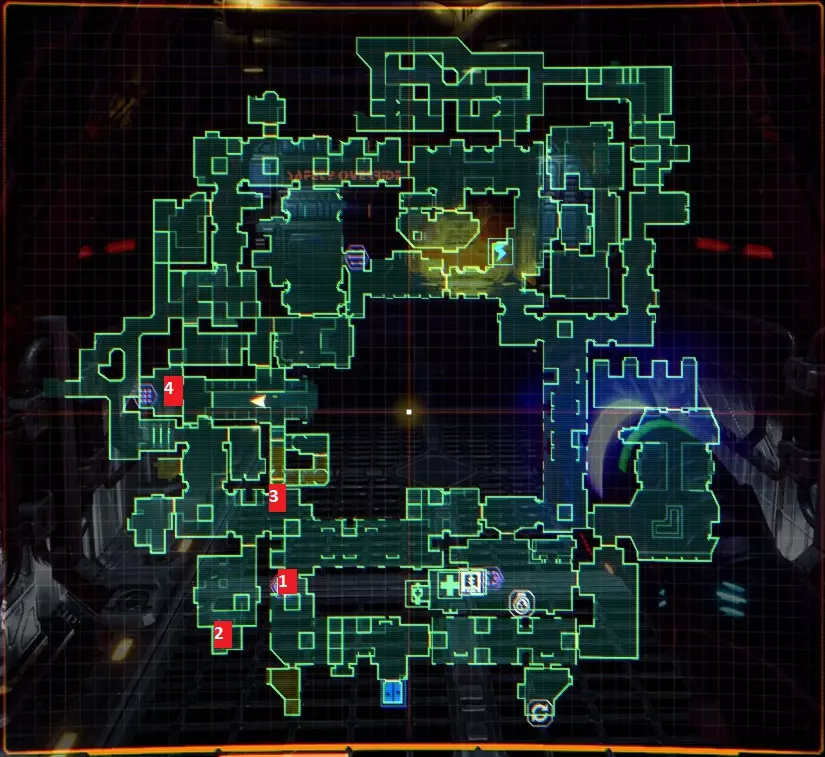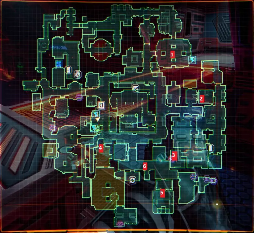 “他们不是在创造程序,他们是在召唤神明”——SHODAN如此说道。 事情不该是这样的,我们会纠正这一切。 医疗甲板 行动顺序已标注在地图上,下方为说明。