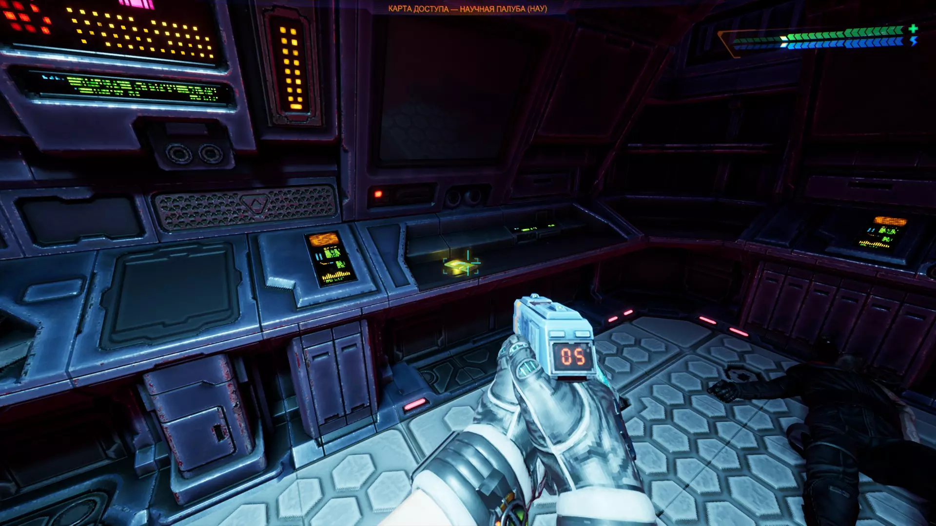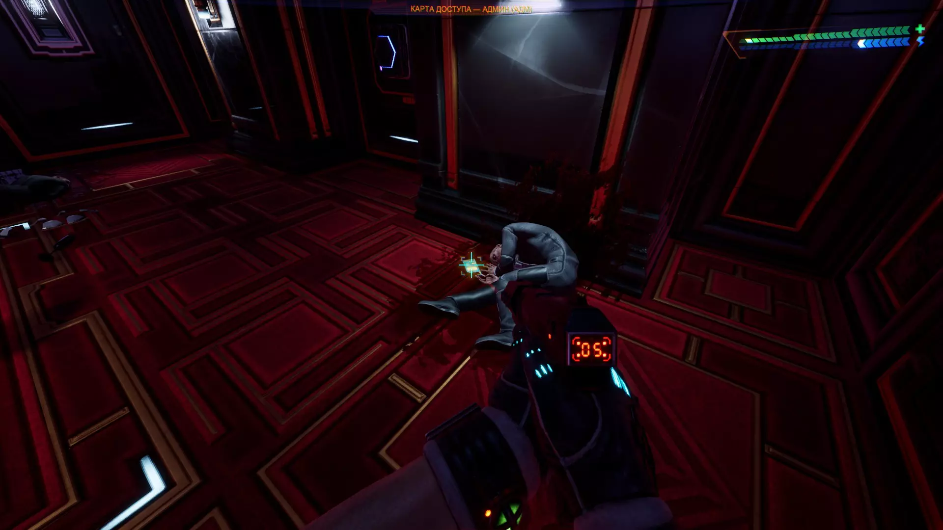 3 - 在赛博空间解锁通往天线的门,从尸体旁捡起卡片,然后继续前进。