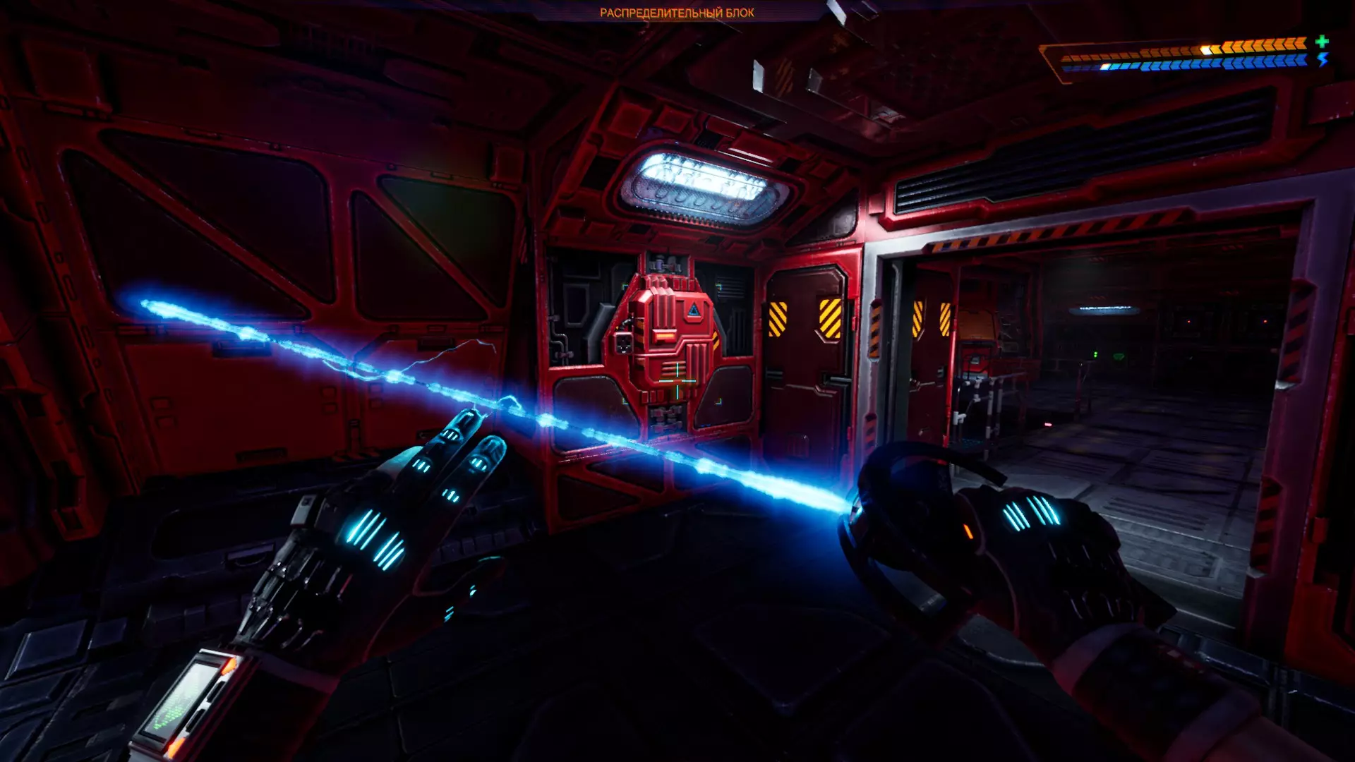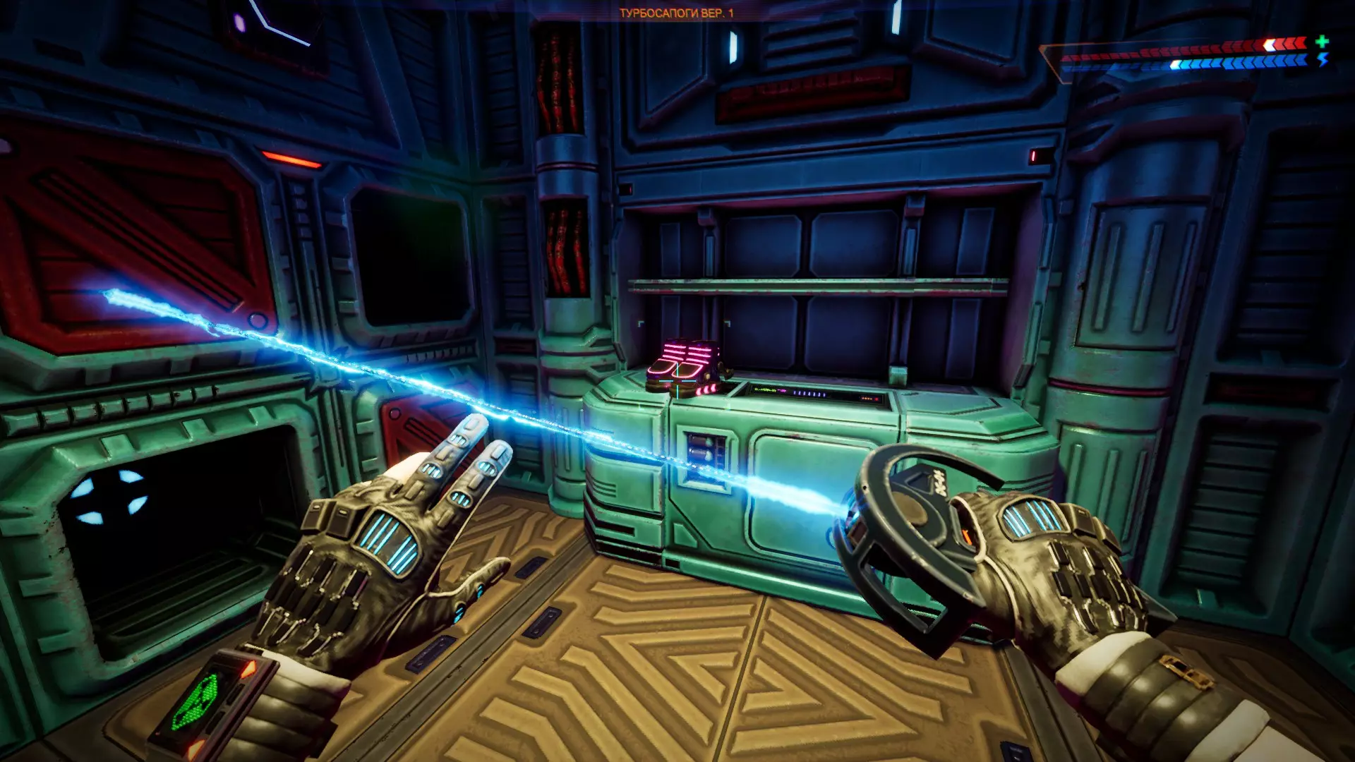1 - 下方桥梁启动。在柱子上关闭左侧力场,下一个房间……