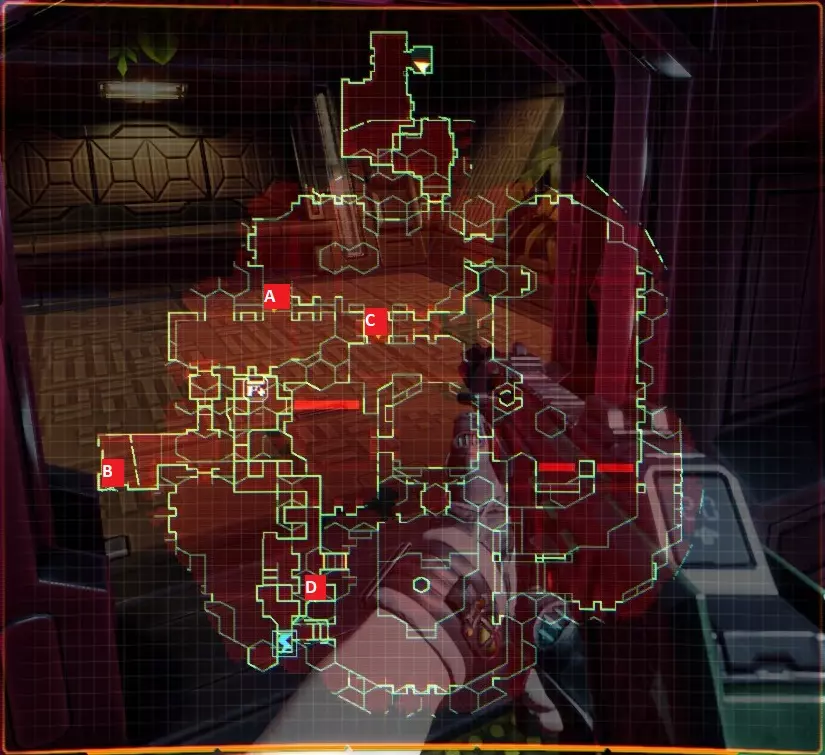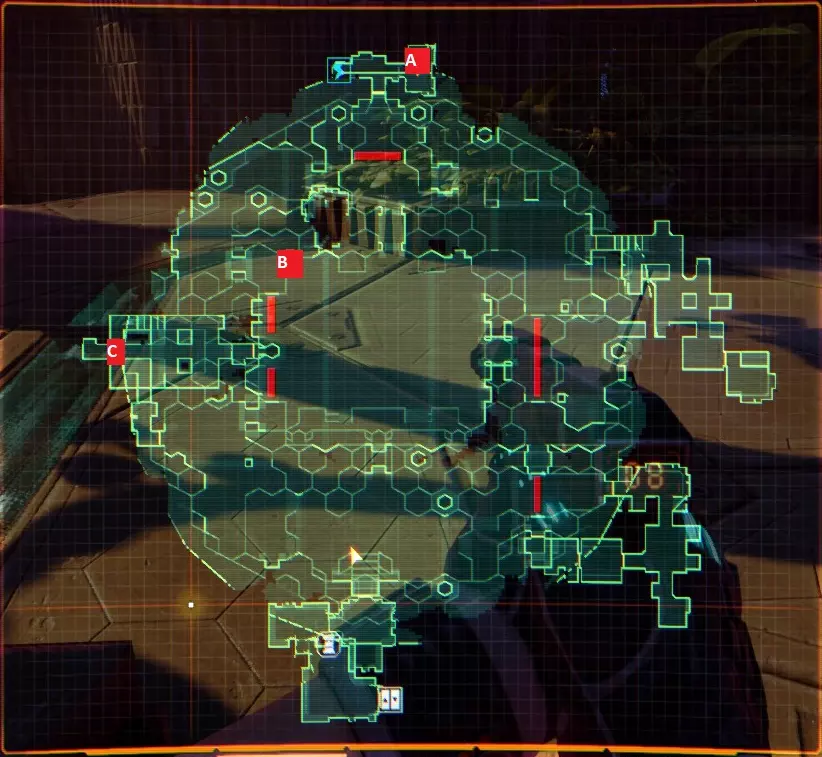 2 - 前往德尔塔树林 а - 启动升降机 в - 前往安全室 с - 解除封锁