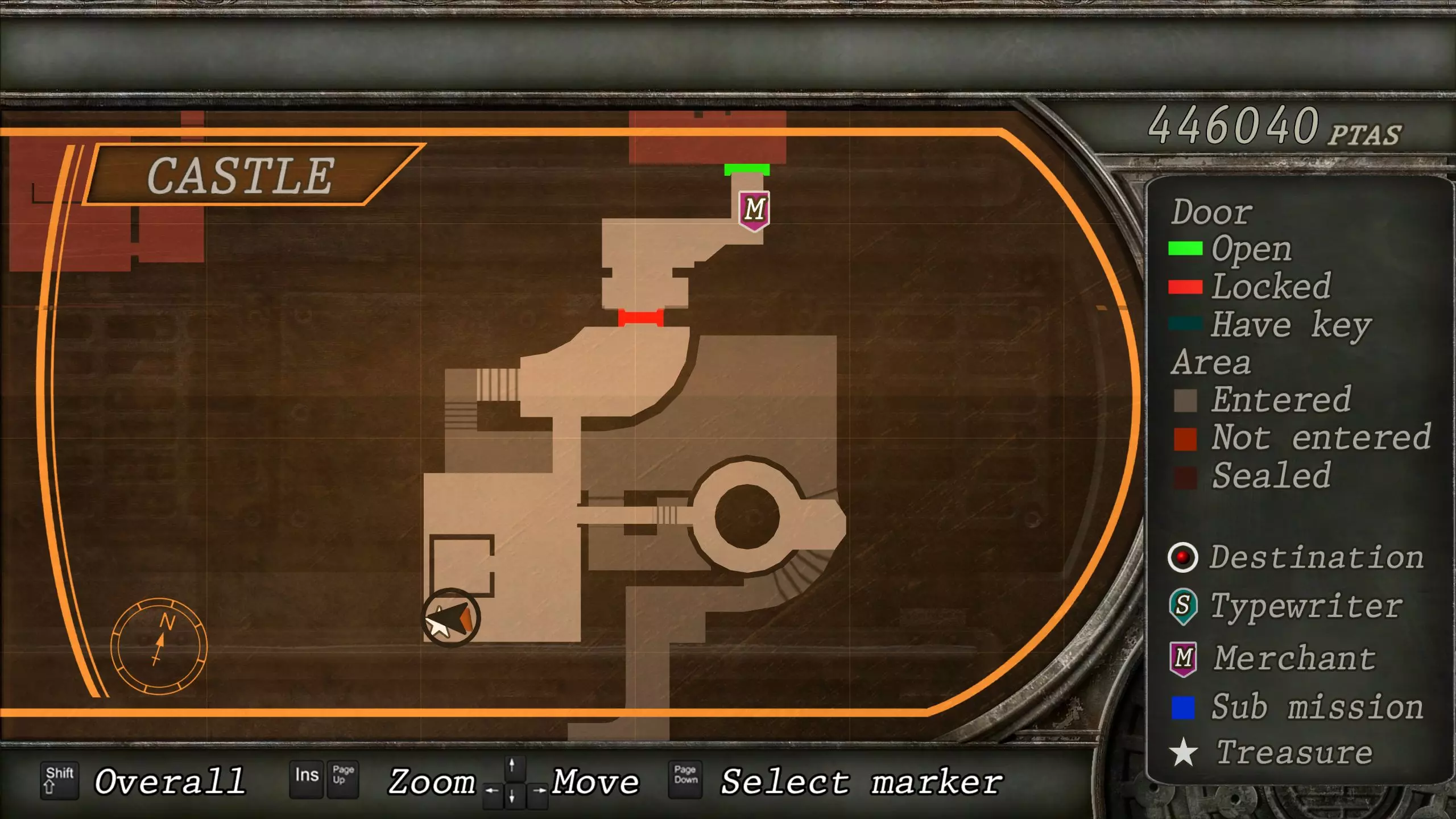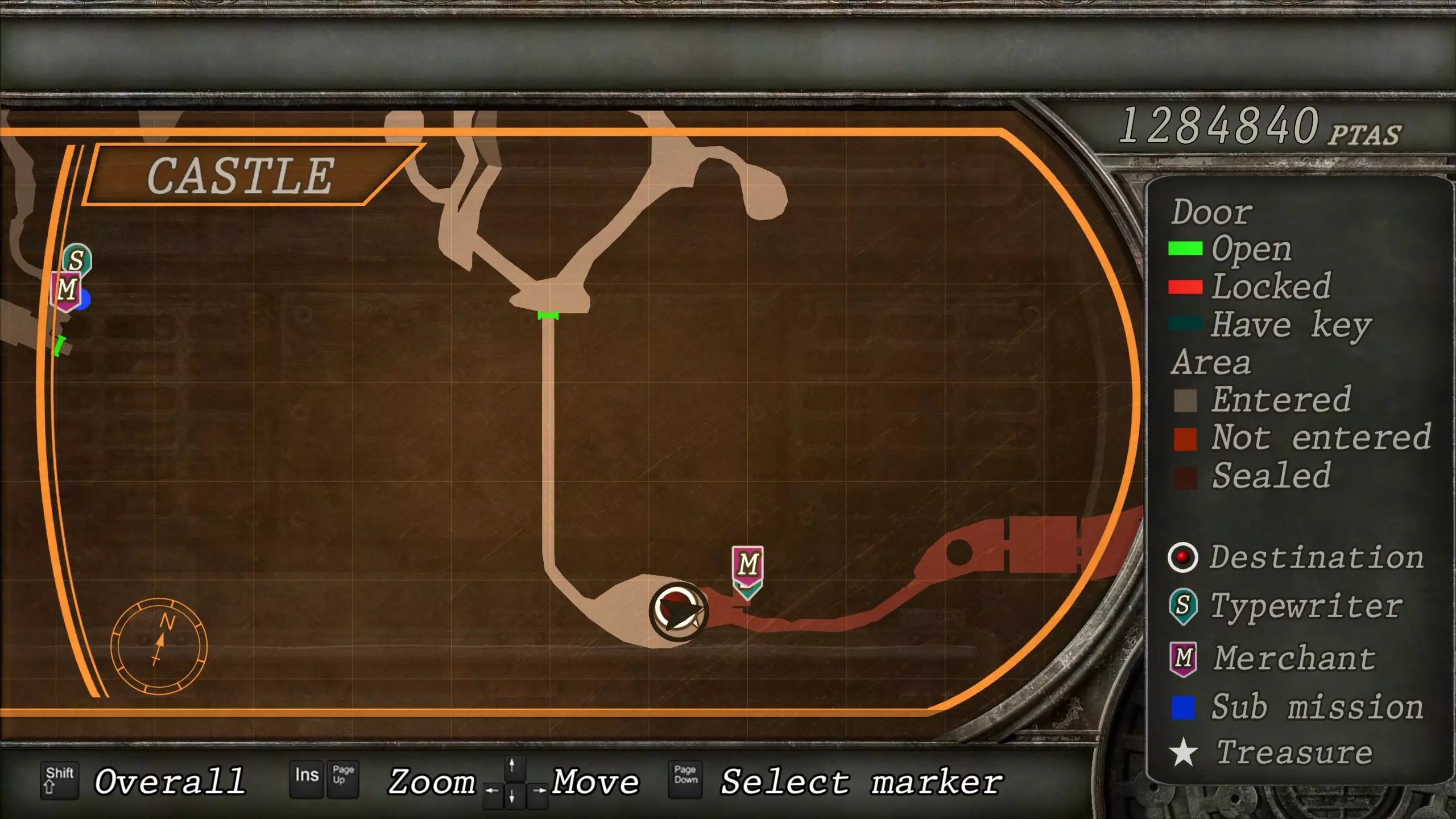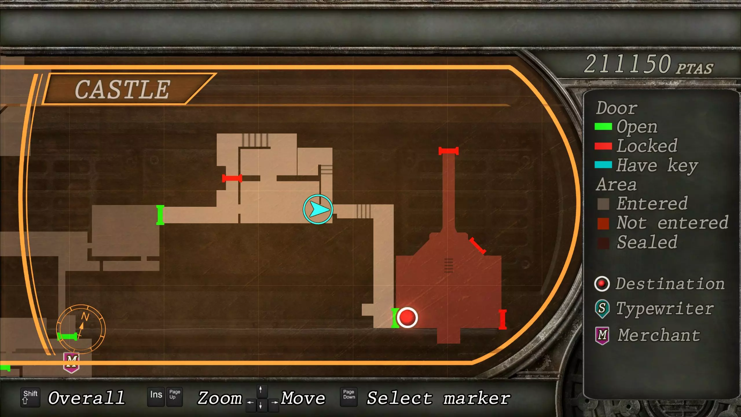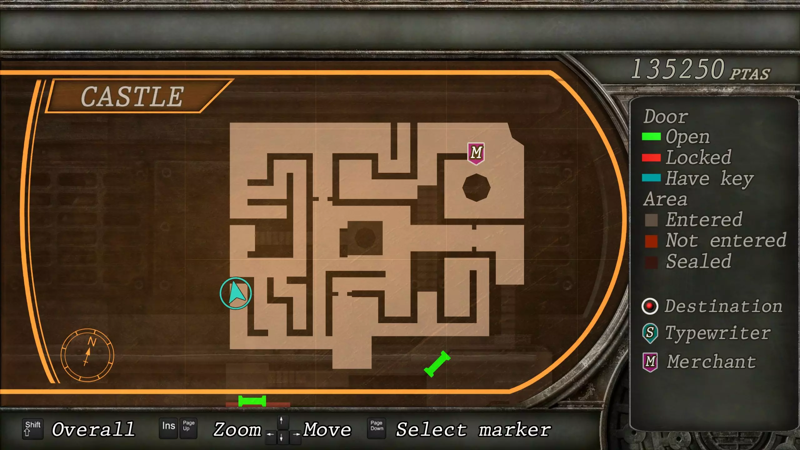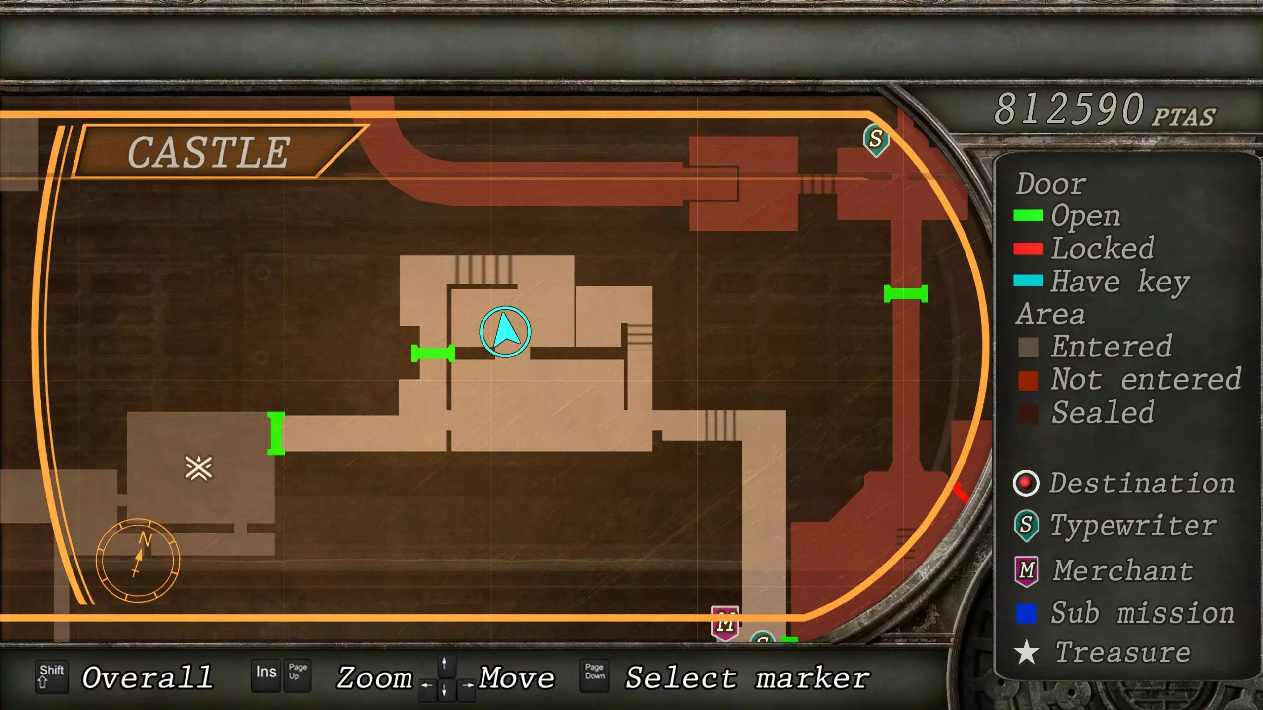 觐见大厅(重返) 在龙房间获得狮子纹章后,你将乘车返回觐见大厅,把三个纹章放入各自的插槽中。如果你在第三章第一节错过了紫宝石,这将是你获取它的另一个机会。 大厅 从大厅有许多不同的路线可走,包括商人开店的房间,以及通往他射击场的门。进入这个射击场将解锁【Game B】,这意味着你可以额外获得6个瓶盖和一些奖金! 注意,在简单难度下,东侧房间将无法进入,这意味着那里的黄草也无法获取。黄色药草 #13 进入大厅后立即看向你的右侧,你会看到下一株黄色药草放在桌子上。此药草在简单难度下无法获取。