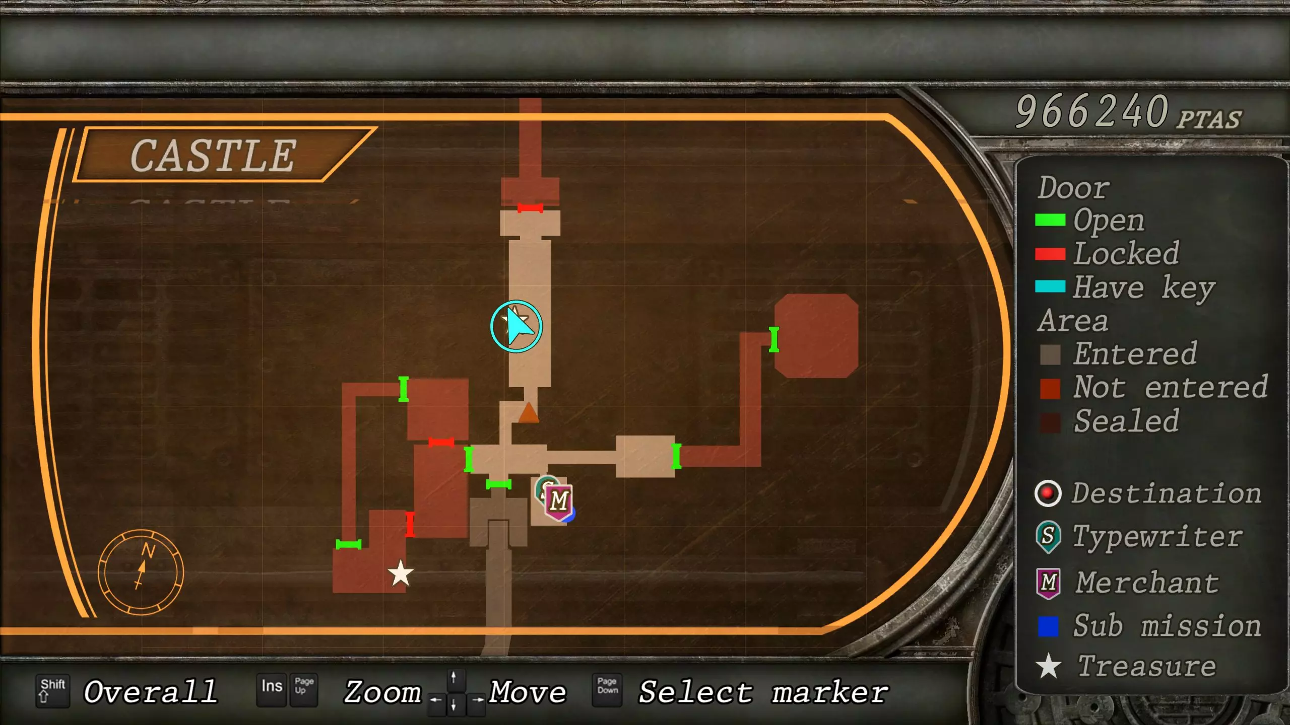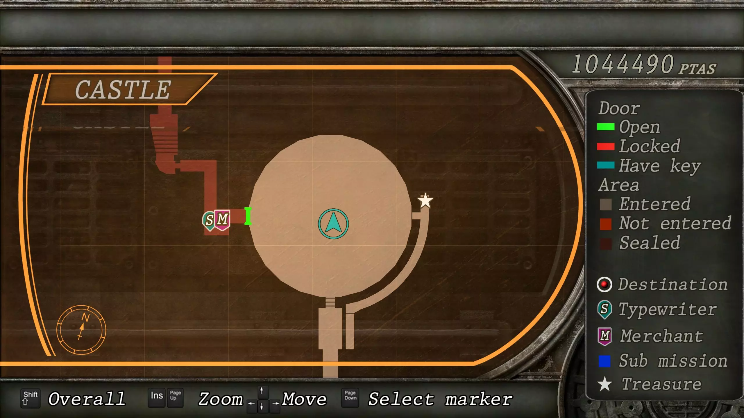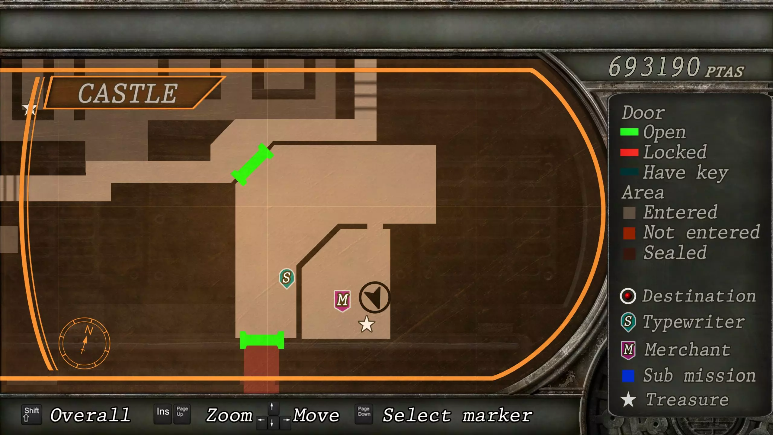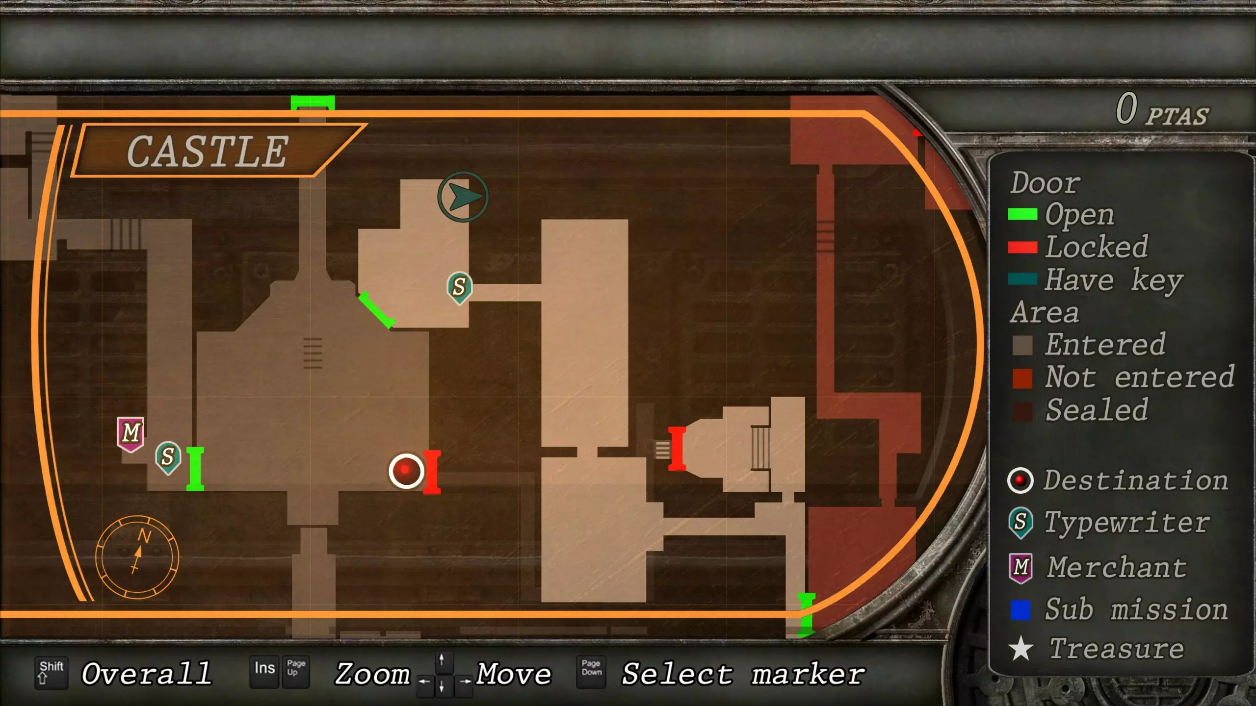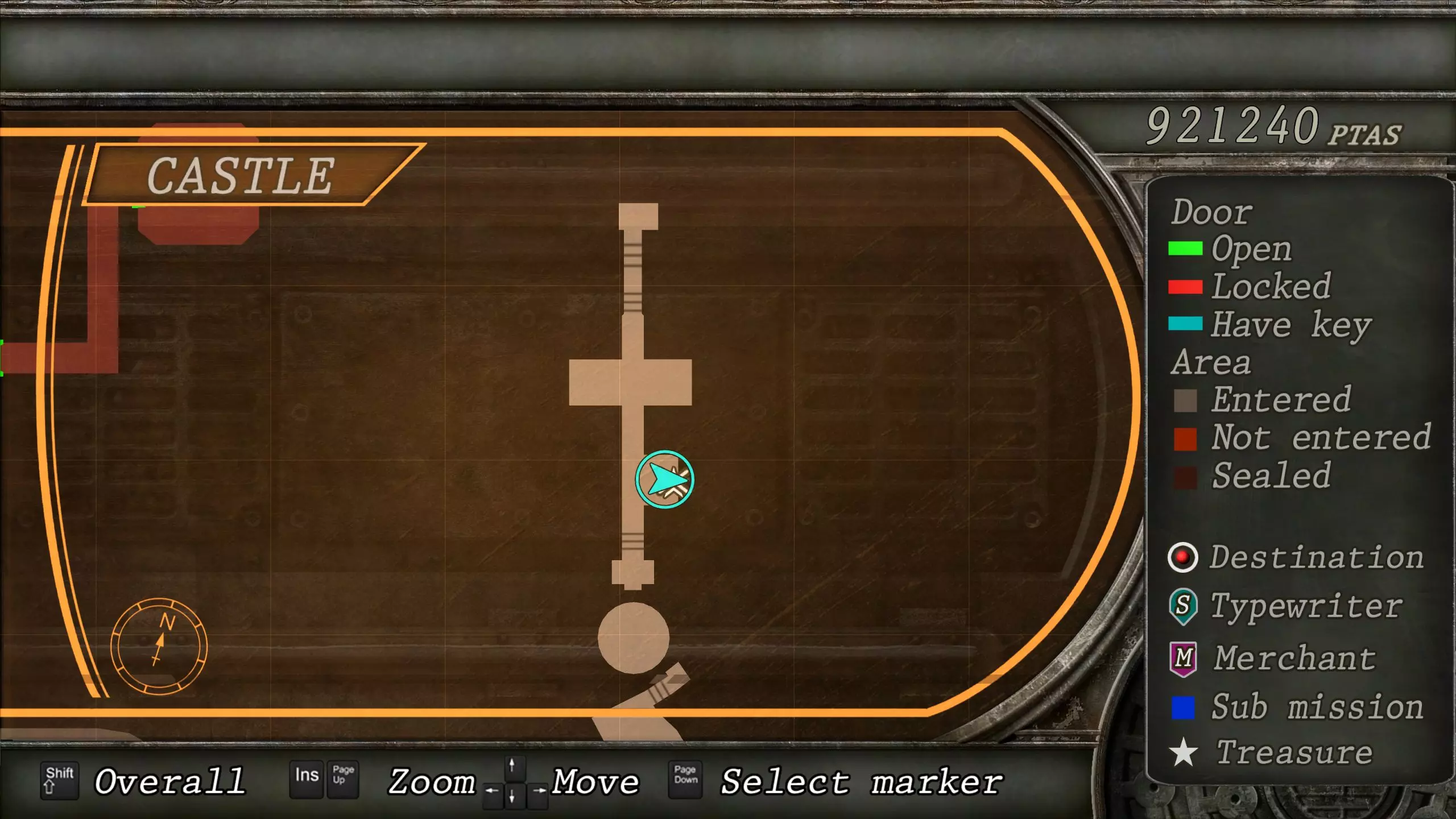 觐见大厅(重返) 在龙房间获得狮子纹章后,你将乘车返回觐见大厅,把三个纹章放入各自的插槽中。如果你在第三章第一节错过了紫宝石,这将是你获取它的另一个机会。 大厅 从大厅有许多不同的路线可走,包括商人开店的房间,以及通往他射击场的门。进入这个射击场将解锁【Game B】,这意味着你可以额外获得6个瓶盖和一些奖金! 注意,在简单难度下,东侧房间将无法进入,这意味着那里的黄草也无法获取。黄色药草 #13 进入大厅后立即看向你的右侧,你会看到下一株黄色药草放在桌子上。此药草在简单难度下无法获取。