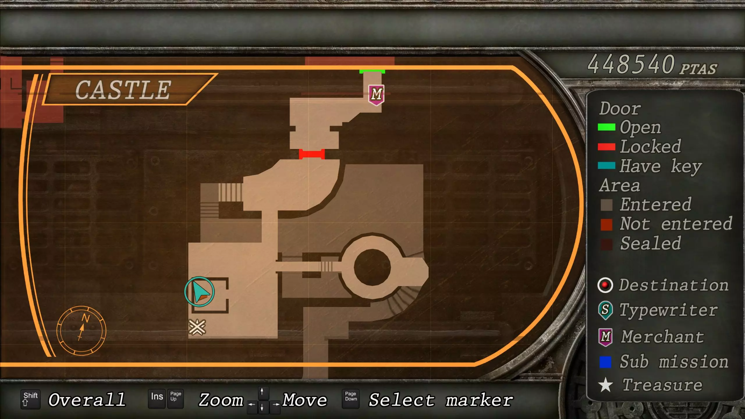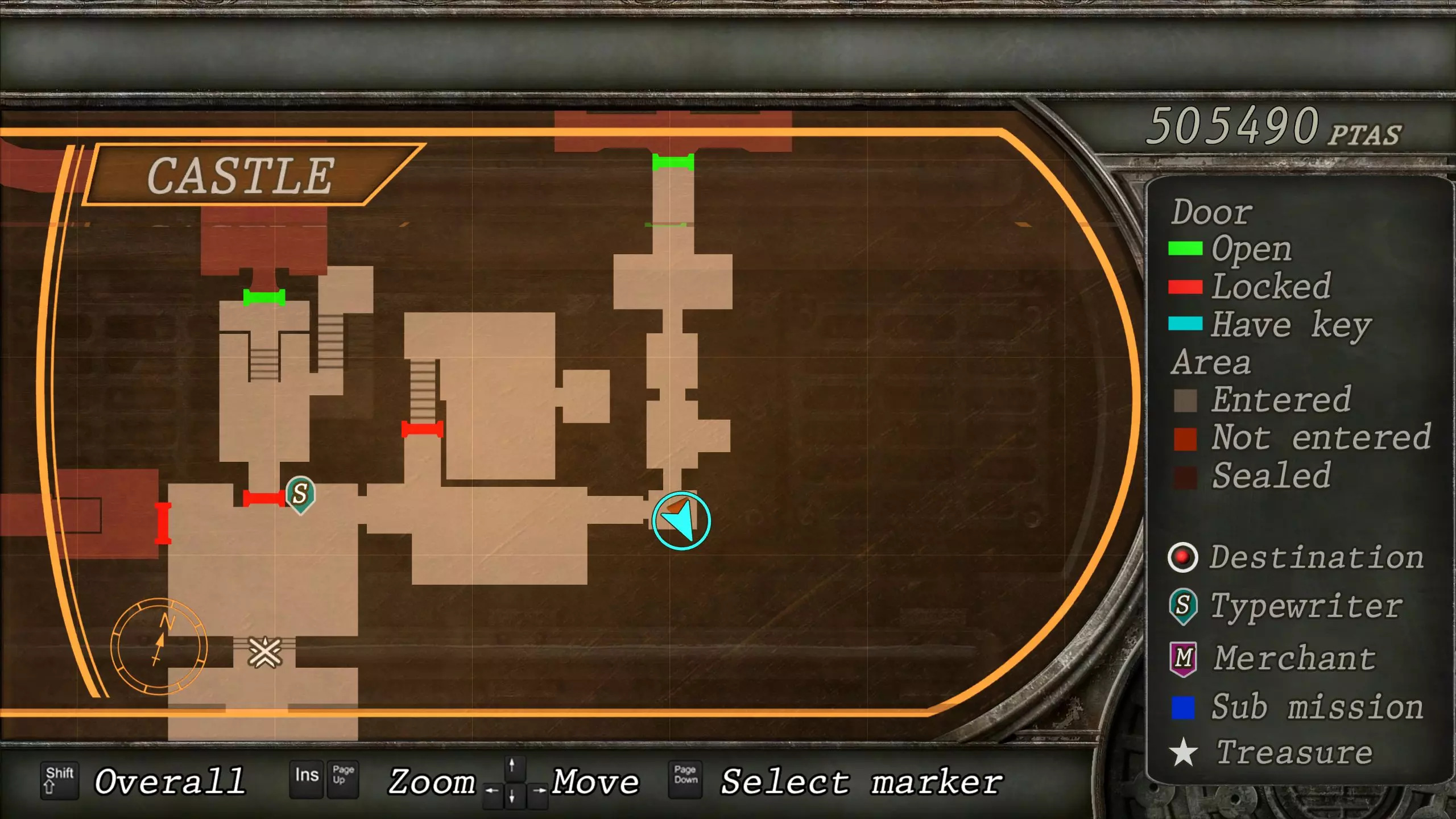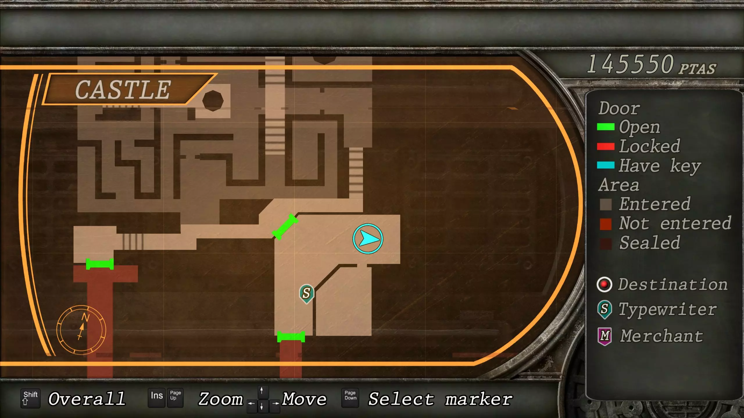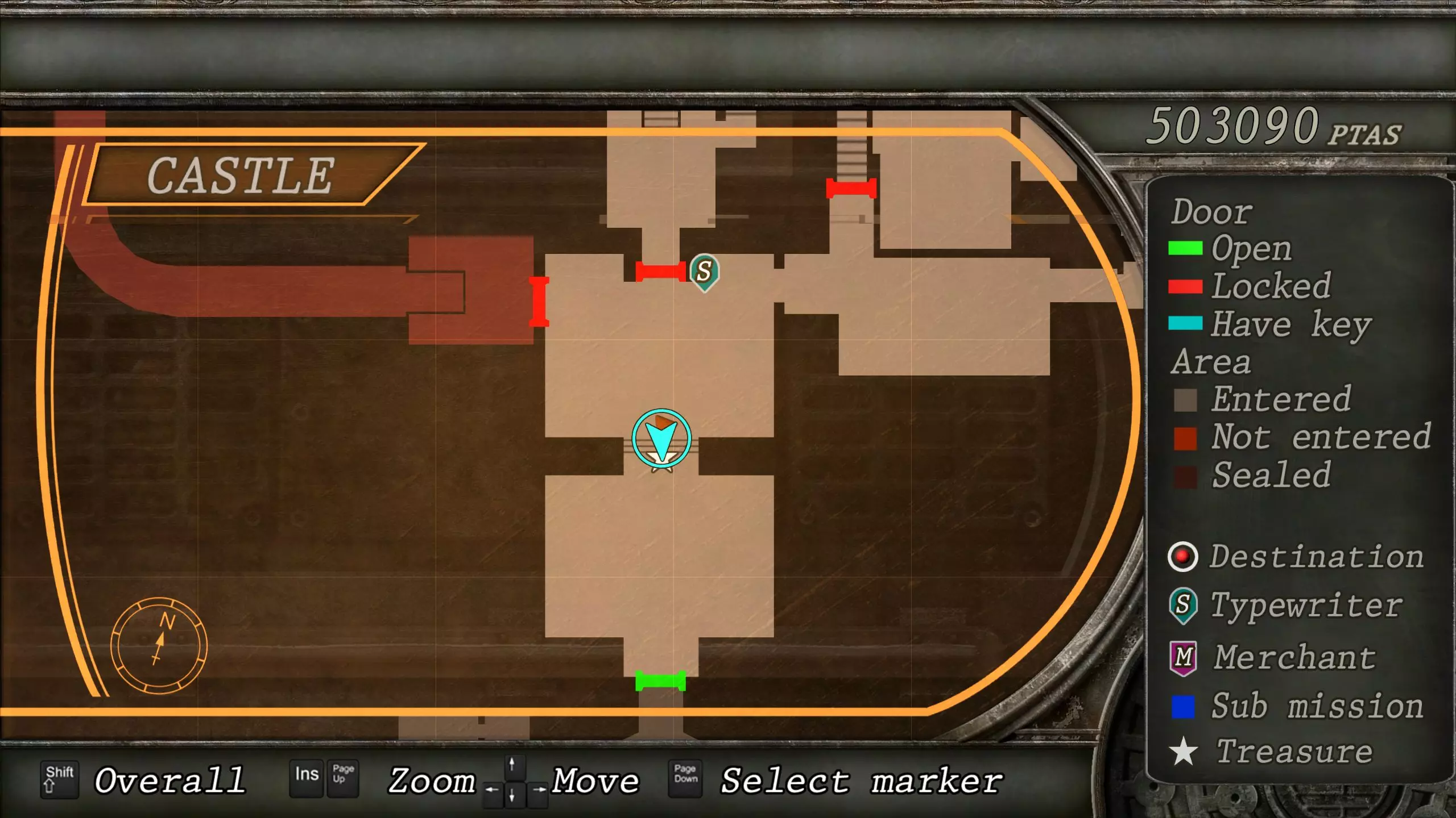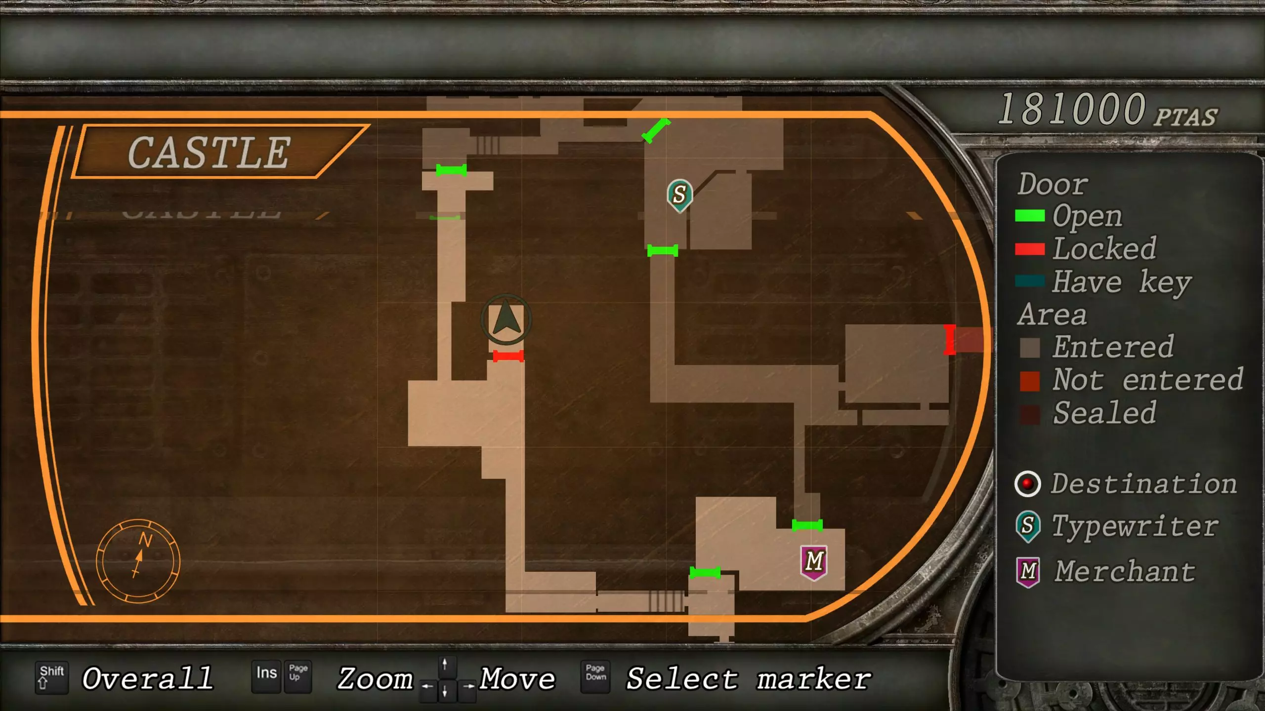 觐见大厅(重返) 在龙房间获得狮子纹章后,你将乘车返回觐见大厅,把三个纹章放入各自的插槽中。如果你在第三章第一节错过了紫宝石,这将是你获取它的另一个机会。 大厅 从大厅有许多不同的路线可走,包括商人开店的房间,以及通往他射击场的门。进入这个射击场将解锁【Game B】,这意味着你可以额外获得6个瓶盖和一些奖金! 注意,在简单难度下,东侧房间将无法进入,这意味着那里的黄草也无法获取。黄色药草 #13 进入大厅后立即看向你的右侧,你会看到下一株黄色药草放在桌子上。此药草在简单难度下无法获取。
