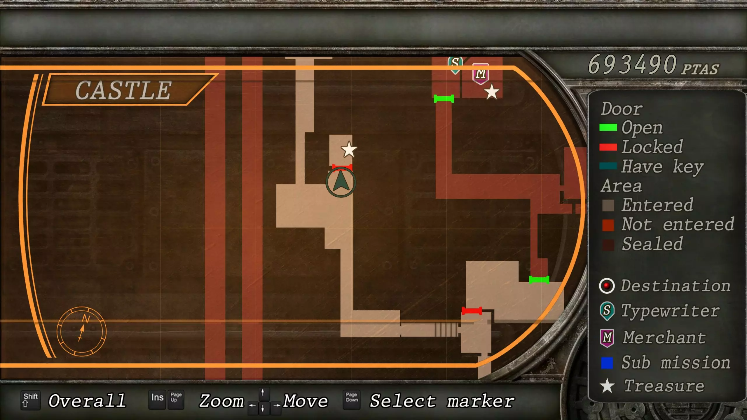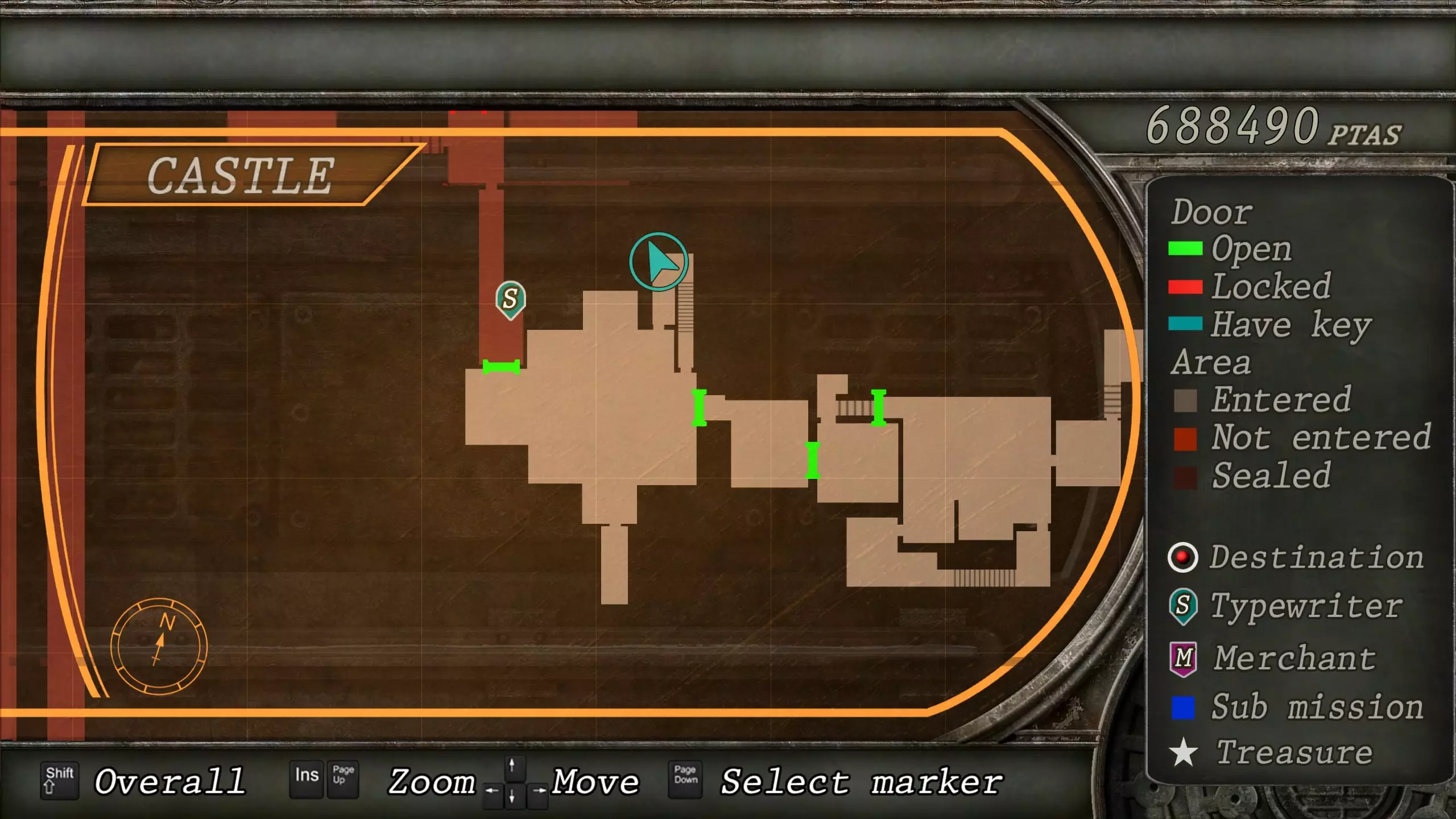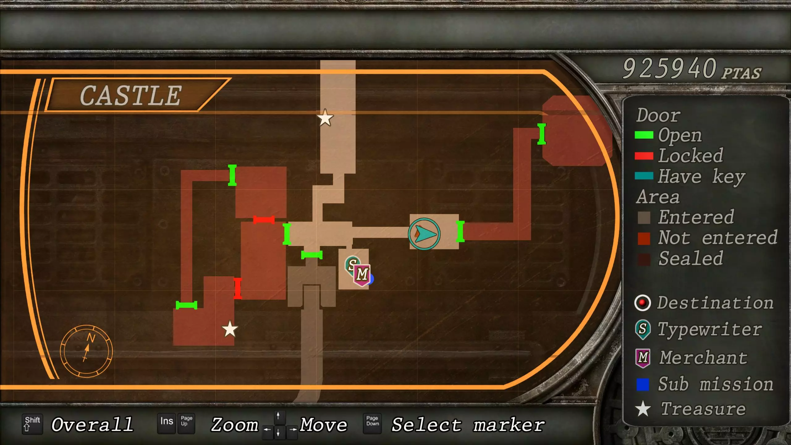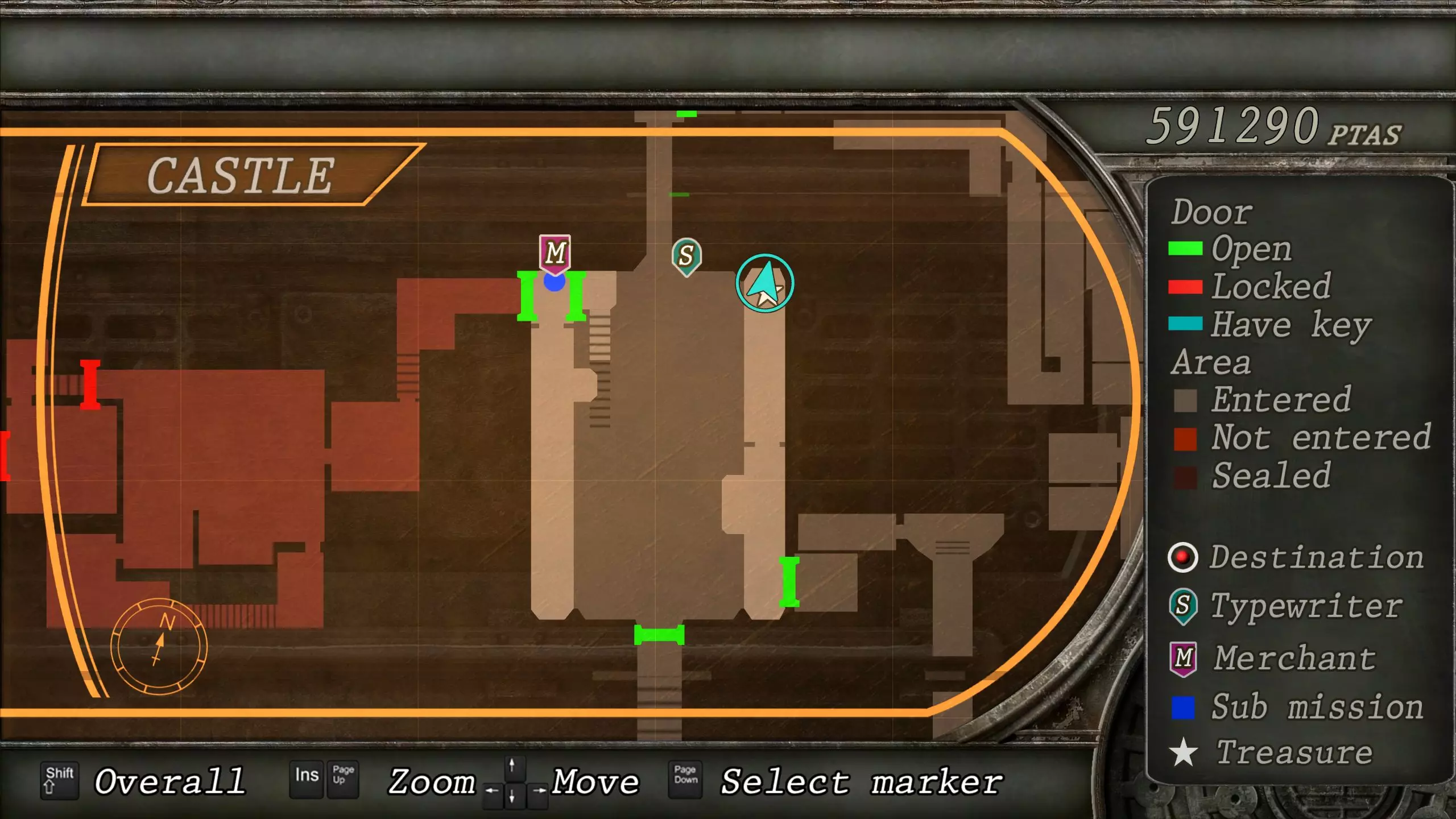 觐见大厅(重返) 在龙房间获得狮子纹章后,你将乘车返回觐见大厅,把三个纹章放入各自的插槽中。如果你在第三章第一节错过了紫宝石,这将是你获取它的另一个机会。 大厅 从大厅有许多不同的路线可走,包括商人开店的房间,以及通往他射击场的门。进入这个射击场将解锁【Game B】,这意味着你可以额外获得6个瓶盖和一些奖金! 注意,在简单难度下,东侧房间将无法进入,这意味着那里的黄草也无法获取。黄色药草 #13 进入大厅后立即看向你的右侧,你会看到下一株黄色药草放在桌子上。此药草在简单难度下无法获取。