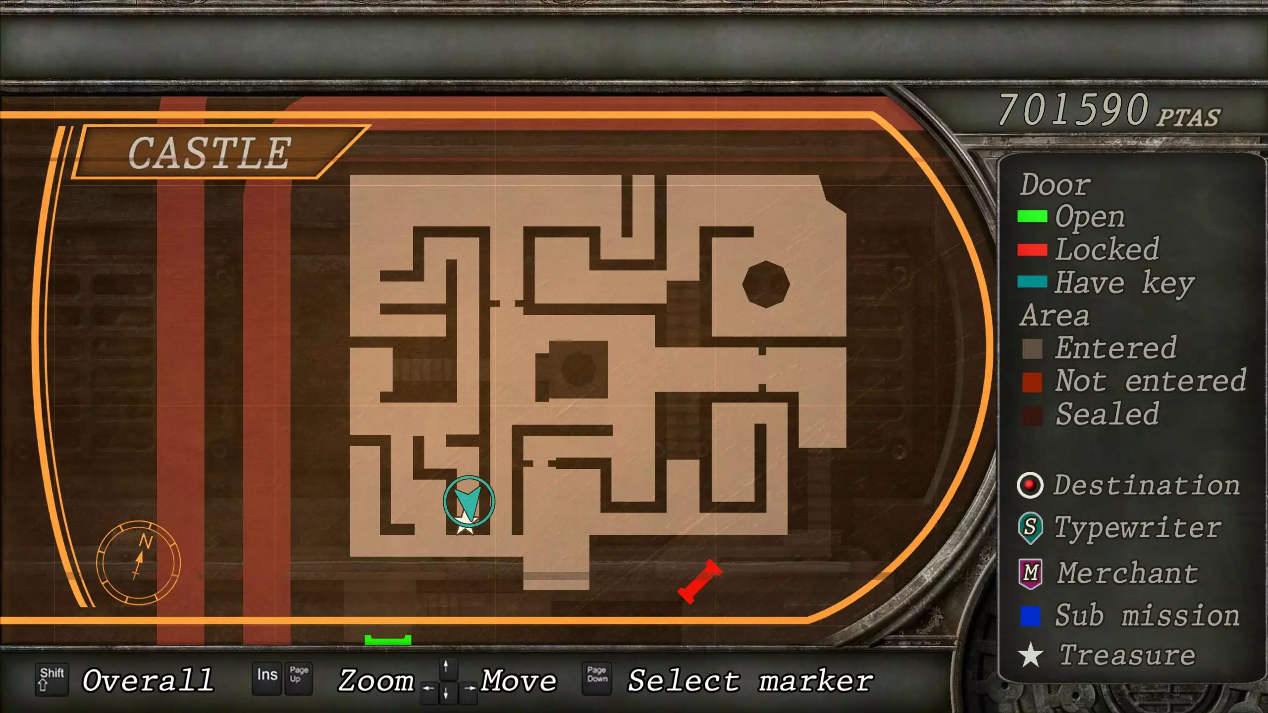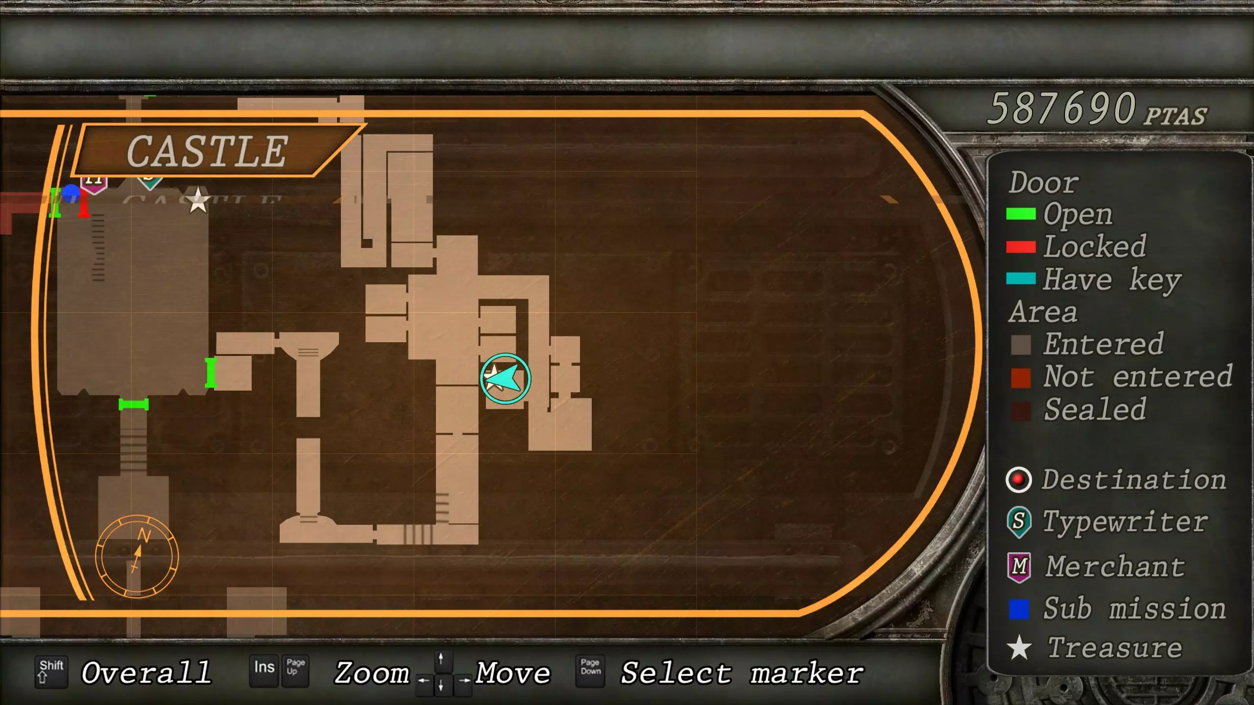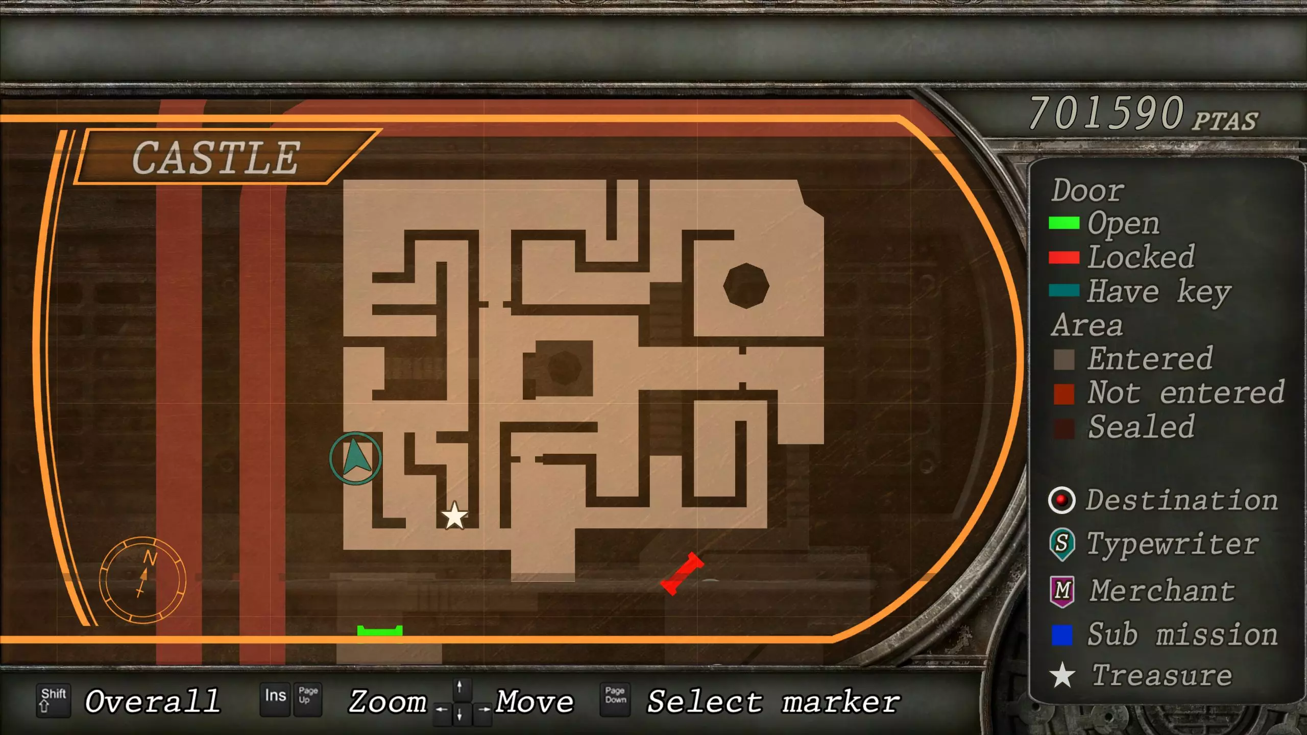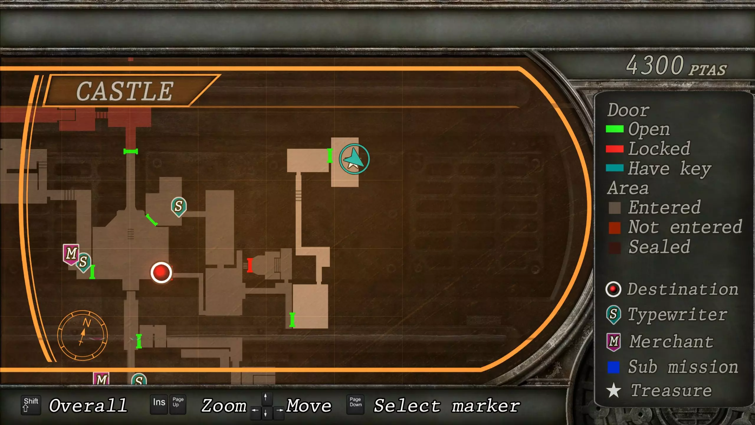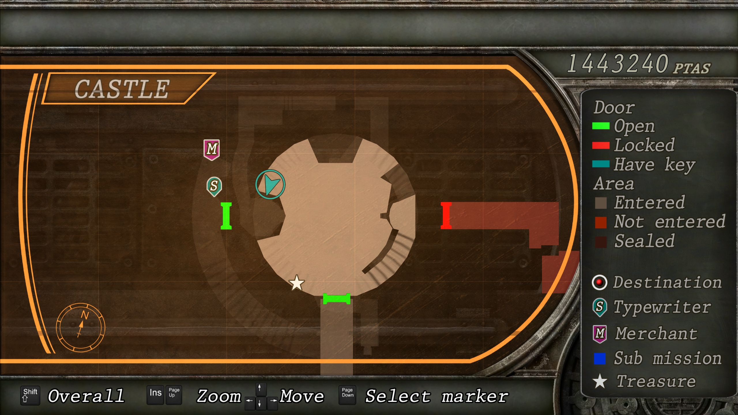 觐见大厅(重返) 在龙房间获得狮子纹章后,你将乘车返回觐见大厅,把三个纹章放入各自的插槽中。如果你在第三章第一节错过了紫宝石,这将是你获取它的另一个机会。 大厅 从大厅有许多不同的路线可走,包括商人开店的房间,以及通往他射击场的门。进入这个射击场将解锁【Game B】,这意味着你可以额外获得6个瓶盖和一些奖金! 注意,在简单难度下,东侧房间将无法进入,这意味着那里的黄草也无法获取。黄色药草 #13 进入大厅后立即看向你的右侧,你会看到下一株黄色药草放在桌子上。此药草在简单难度下无法获取。