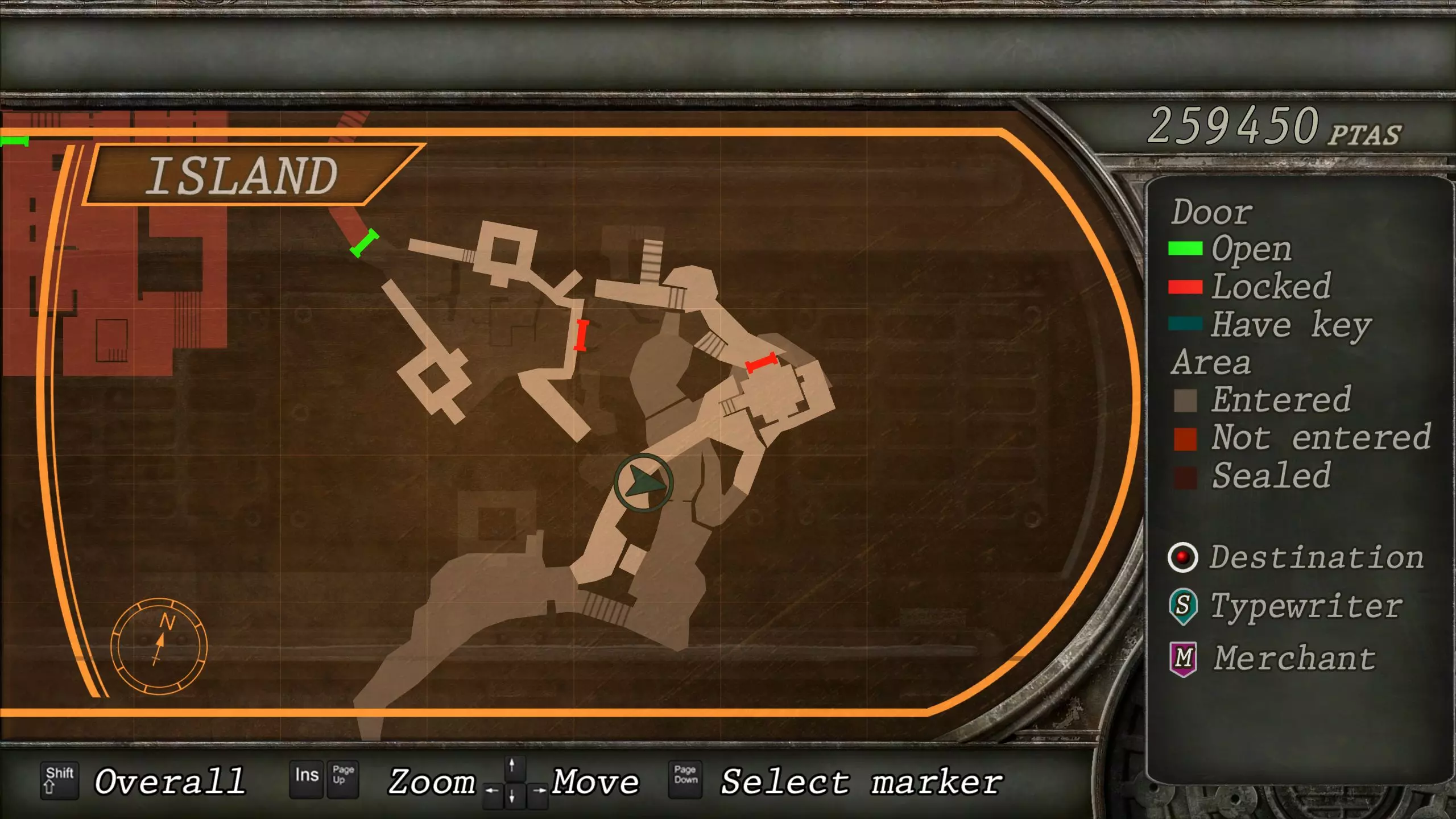 下一个房间里有商人的最后一家商店,你应该卖掉身上剩余的所有宝藏。如果你正在游玩普通或专家难度,并且收集了所有黄草,那么你应该会剩下两个(或者更多,如果你决定不使用其中一些的话)。如果你想卖掉这些黄草,试着将它们与绿草和红草混合,这样能卖出最高的价钱。 你可能还需要尝试在物品栏中留出一些空间,为即将到来的区域做准备。在最终战斗中你会获得一把特殊武器,它能让战斗变得更轻松,但如果你决定不使用它,可以在新游戏+中以15000比塞塔的价格卖掉它。 说到新游戏+,一旦你完成游戏,一定要将你的数据上传到排行榜,因为如果你不这样做,“保存已通关游戏”的提示可能不会出现。恭喜你走到这一步,祝你在最终 boss 战中好运! 艾达的任务 艾达的任务是一个简短的非正统游戏模式,其中不包含商人,因此也没有可出售的宝物。地图上会有白色星星,但这些只是你的任务目标,而非宝物。不过,这个游戏模式中有 7 个黄色药草可供寻找。 与主线游戏不同,每个新章节通常都标志着一个无法返回的节点,所以在完成一个章节前,确保收集到所有你想要的物品。 需要注意的是,尽管在额外内容菜单中,艾达的任务位于“别传”之后,但建议先游玩艾达的任务,因为它是随最初的 GameCube 版本一同推出的,而“别传”则是在后续版本中才加入的。完成艾达的任务后,商人会在“另一项指令”中以300,000比塞塔的价格出售强力武器【芝加哥打字机】;完成“另一项指令”后,商人会在主线游戏中以1,000,000比塞塔的价格出售该武器。 此外,“艾达的任务”和“另一项指令”均未包含在Quest VR版本中。如果游玩该版本,通常通过完成这两个模式获得的奖励可改为通过“佣兵模式”解锁。 码头A 黄色药草 #1 开始后不久会遇到一个岔路口。选择左侧路径并攀爬岩石,可在一个可破坏的箱子中找到第一个黄色药草。