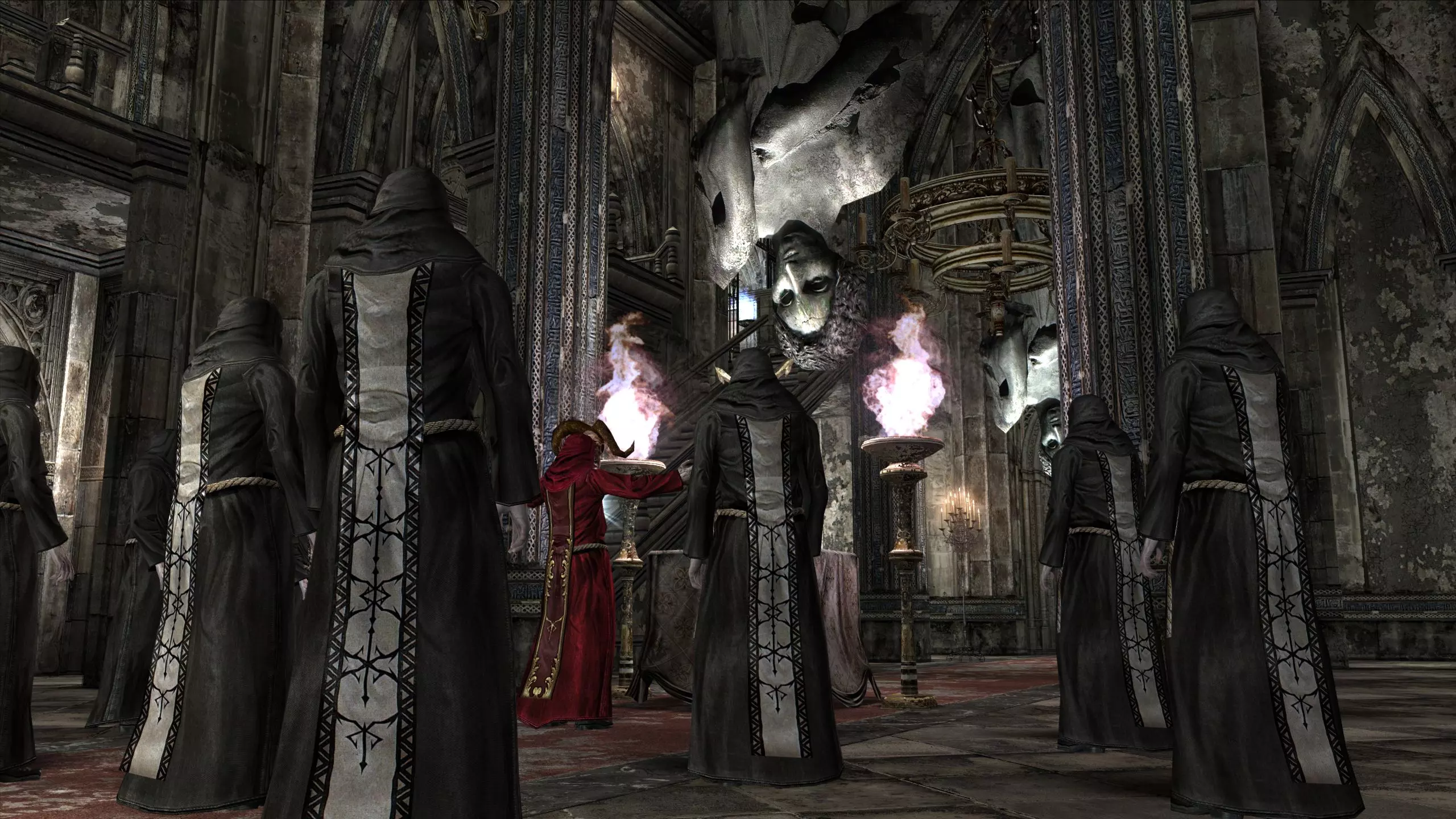 神殿(重访)宝藏:光明教吊坠(12000比塞塔) 不久后你将回到神殿主大厅,届时会触发一段邪教徒吟唱的过场动画。击杀穿红袍的邪教徒会使其掉落光明教吊坠。黑袍邪教徒会掉落尖晶石。