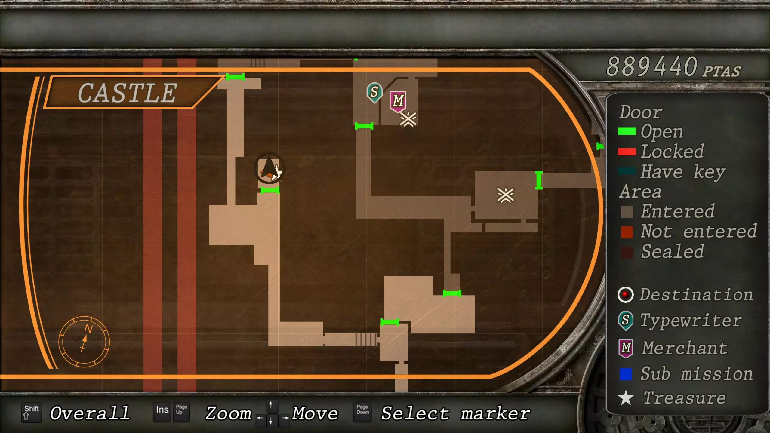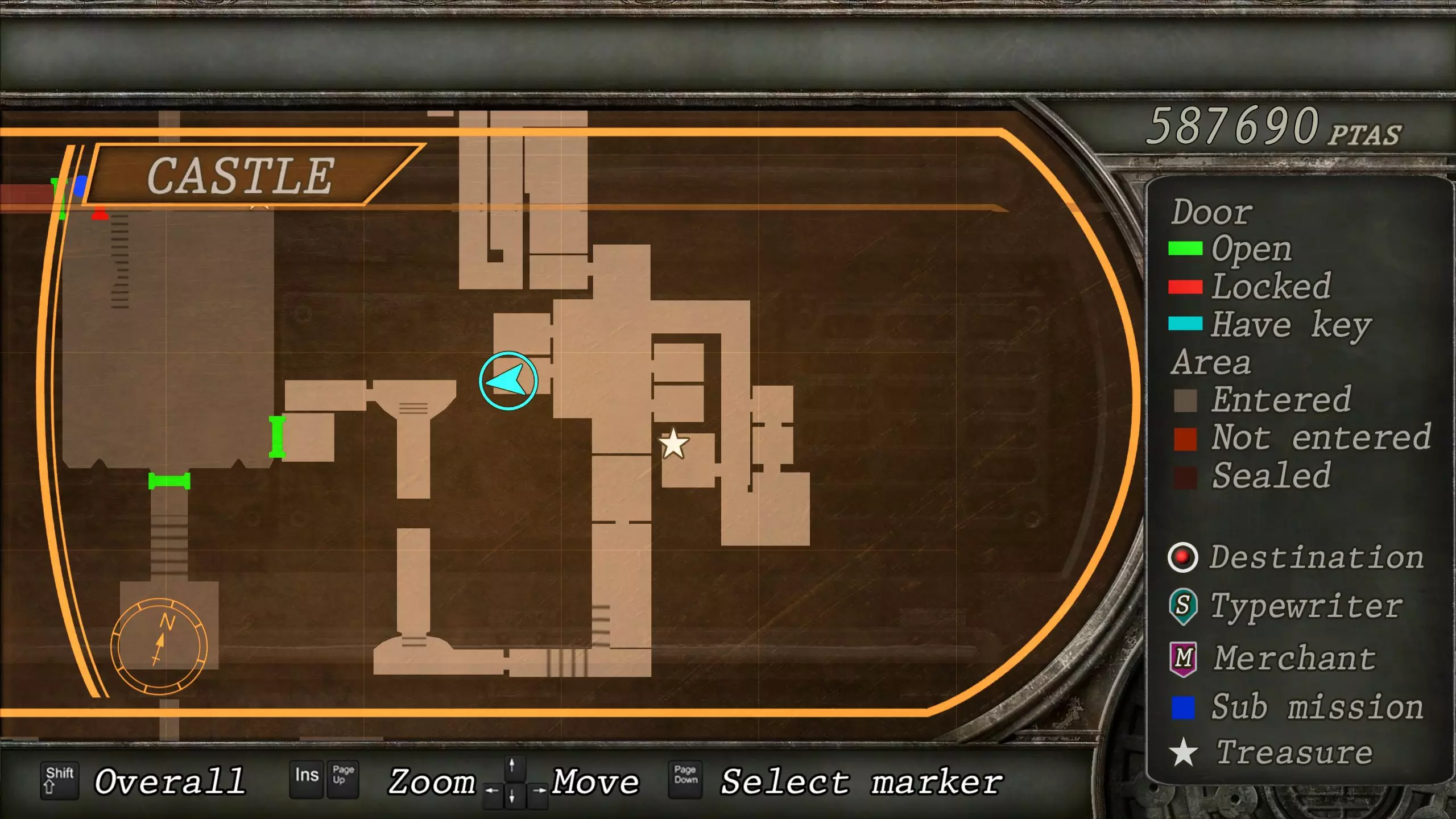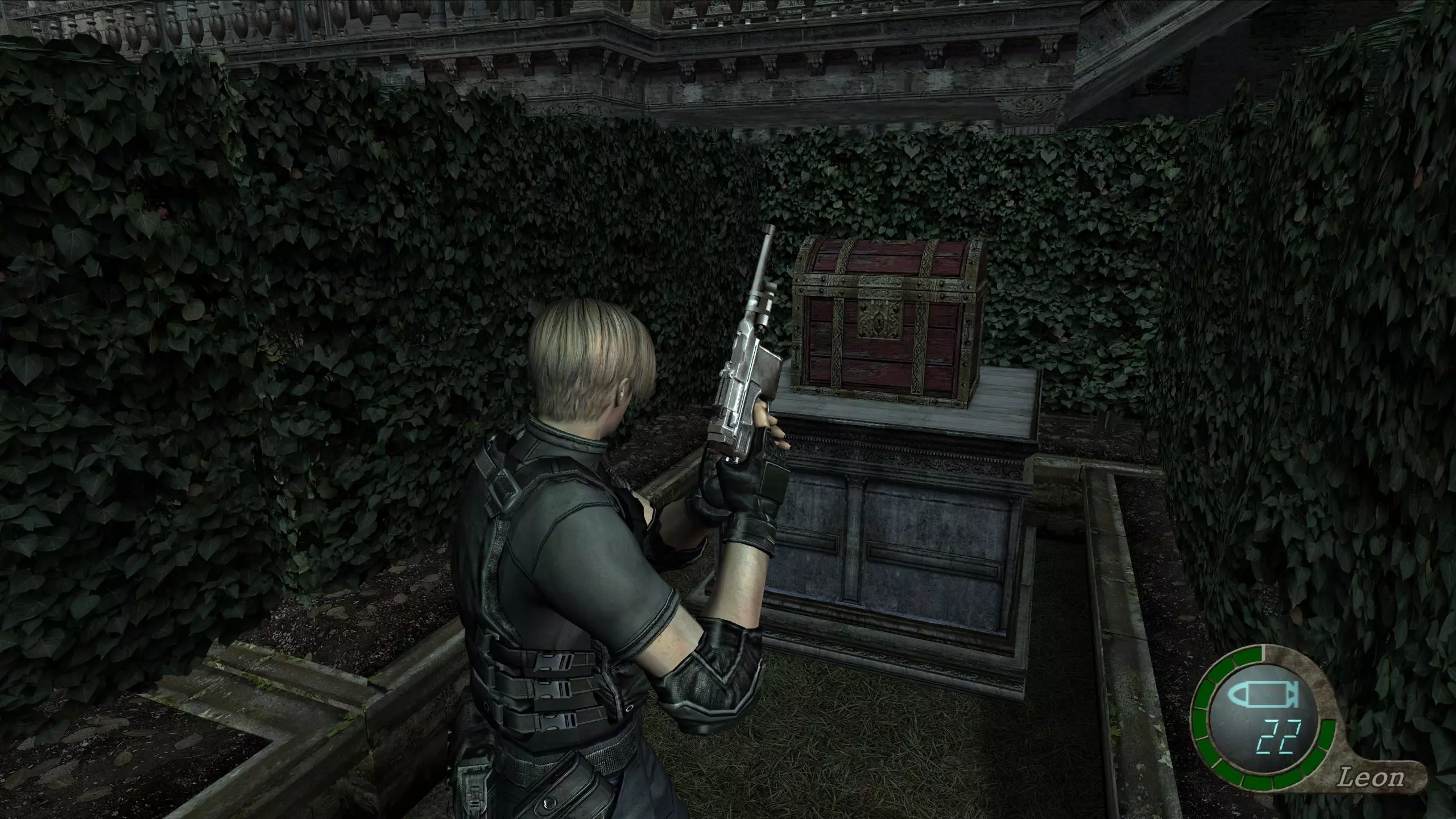 如果你需要滑动拼图的帮助,解决方法是从中间偏左的板块开始按逆时针方向移动。将拼图想象成手机的数字键盘,顺序为4、7、8、9、6、3、2、1、4、7、8、9。 若要重置拼图,穿过加载界面回到前一个区域,然后再返回即可。 第四章-1 免费武器 在本章中你将重新操控里昂。有机会时,将阿什莉找到的所有物品转移到里昂的物品栏中。 在进行其他任何操作之前,建议你先回溯一段路,以获取一把强力的免费武器和另一件宝藏。建议在物品栏中留出8个(2x4)空位。你需要一路返回到西城堡墙,即花园迷宫前的那个区域。你可以通过餐厅打开通往那里的捷径。在你射击画作上的葡萄酒处的南侧通道,会通向城堡西墙。 城堡西墙(重访) 宝藏:精致香水瓶(10000比塞塔) 免费武器:蝴蝶(8格,2×4) 回到喷泉旁,与门互动会发现它是锁着的。与旁边的窗户互动,将阿什莉托进房间,她会为你打开门。 房间内有多个宝箱。其中一个装有精致香水瓶,另一个则放着“蝴蝶”左轮手枪,这是一种使用麦林子弹的强力武器。