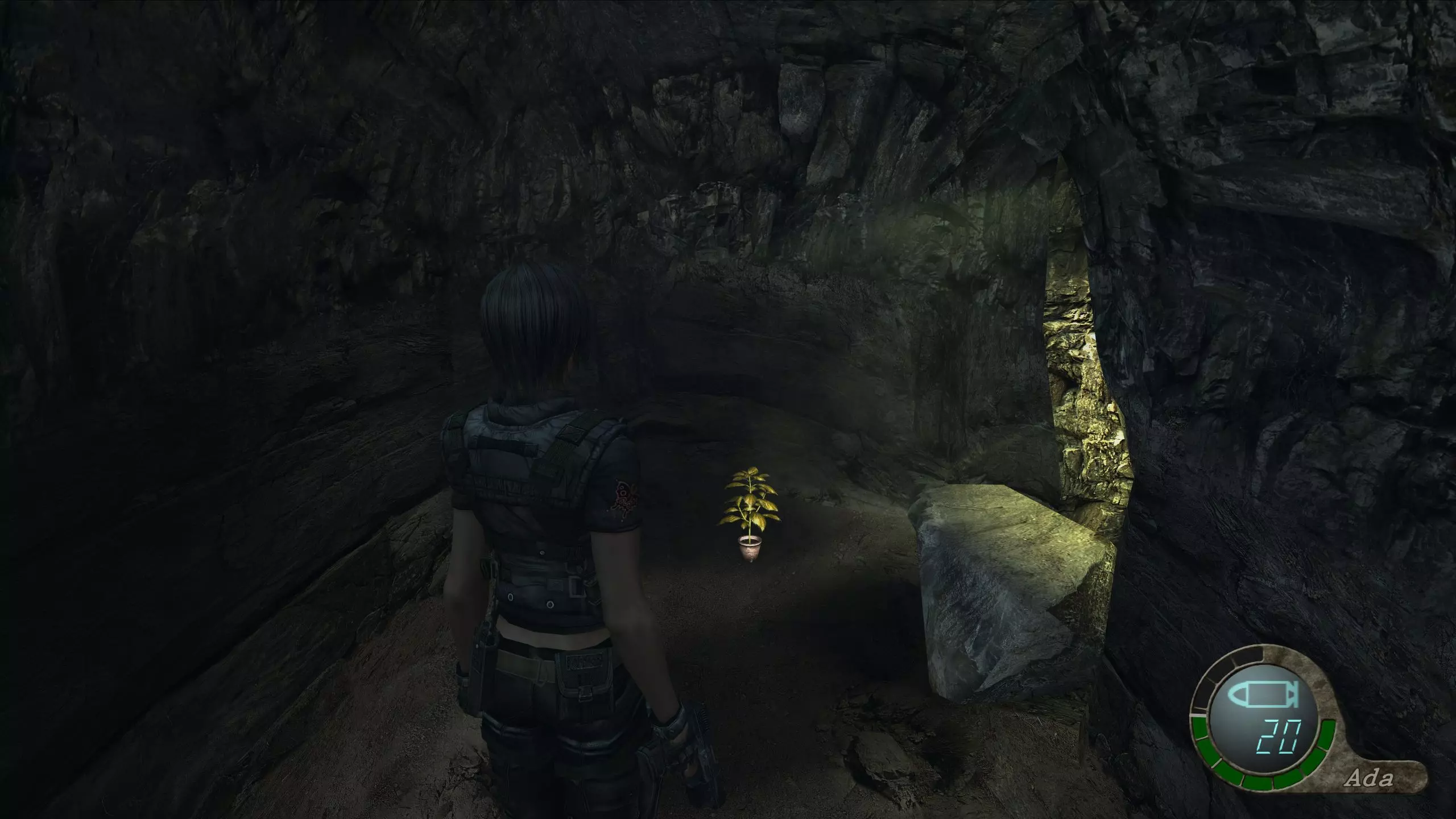 你可以乘坐电梯上去,找到一株绿色药草和一些霰弹枪子弹,还能看到一段简短的过场动画。不过除此之外,这个区域完全是可选的。 第五章-第二节 地下通道 黄色药草 #20 当阿什莉爬过卷帘门并为你打开大门后,你会在正前方看到这株黄色药草。如果你需要腾出空间来存放它,商人就在右边的房间里。