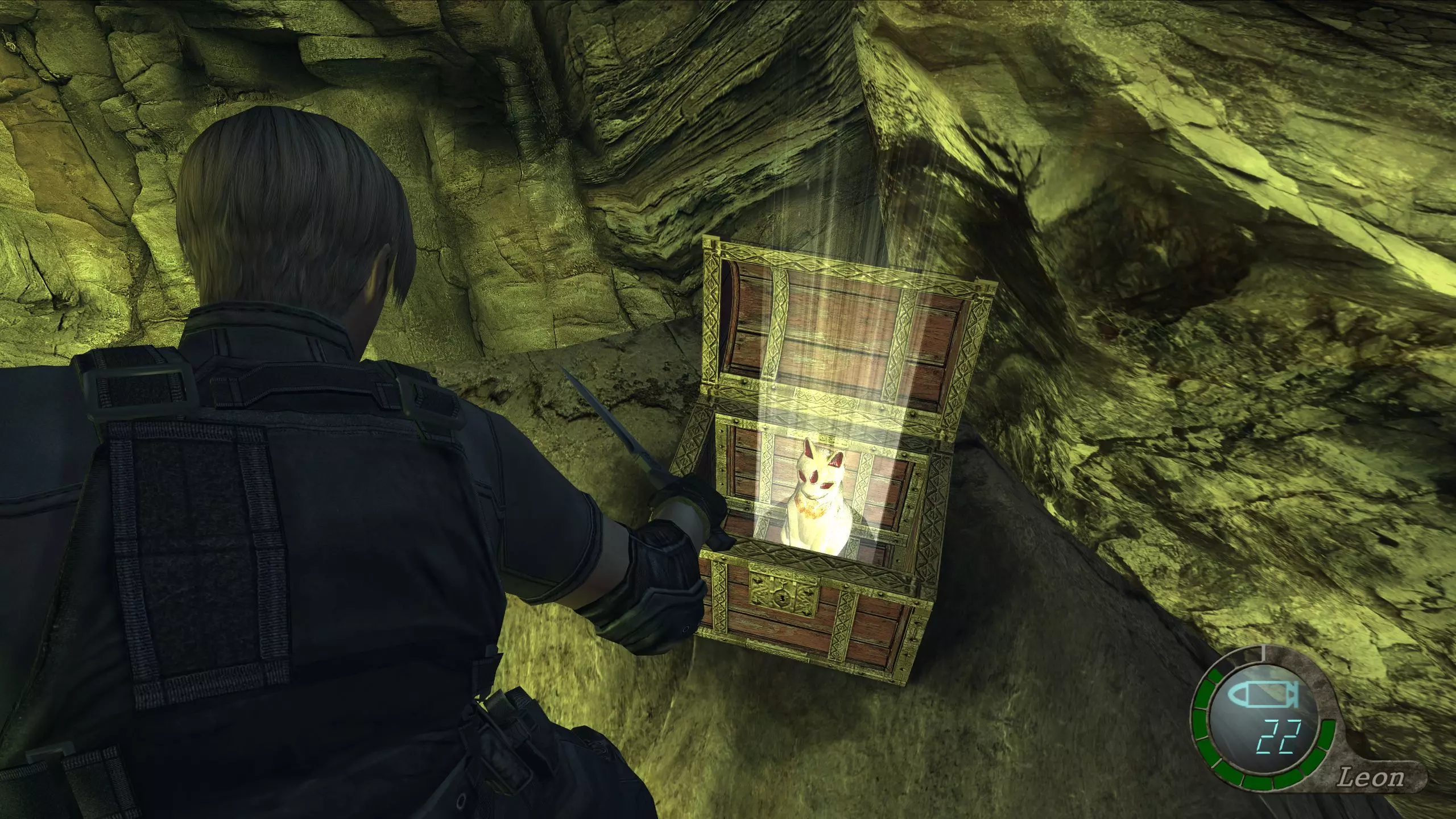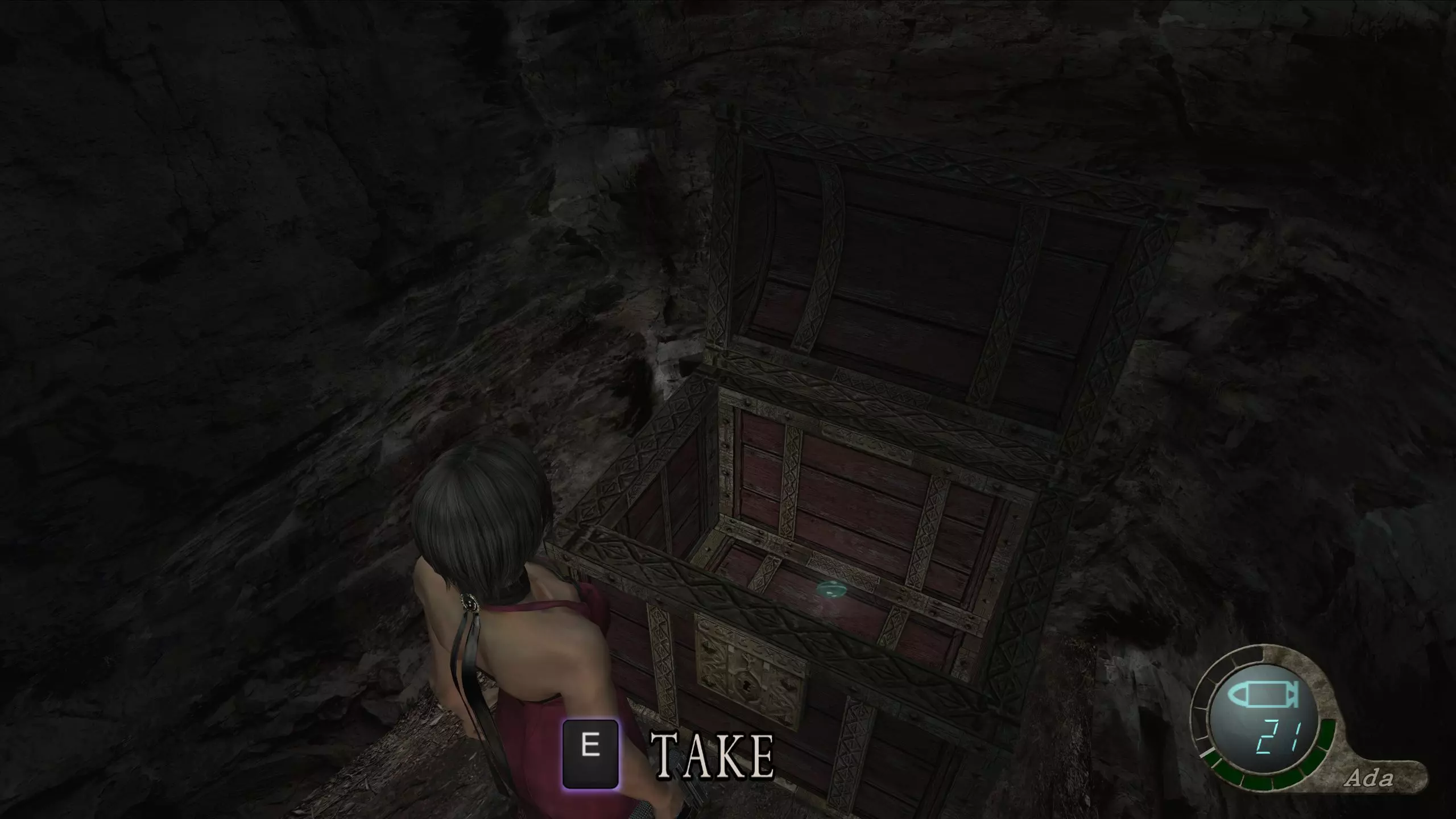 可拾取宝藏:绿色猫眼石(可组合) 经过一段回溯和一系列过场动画后,艾达会到达一个全新的地点。解决掉周围的敌人后,转身就能看到一个宝箱,里面有一颗绿色猫眼石。这颗猫眼石可以和之前找到的啤酒杯组合。