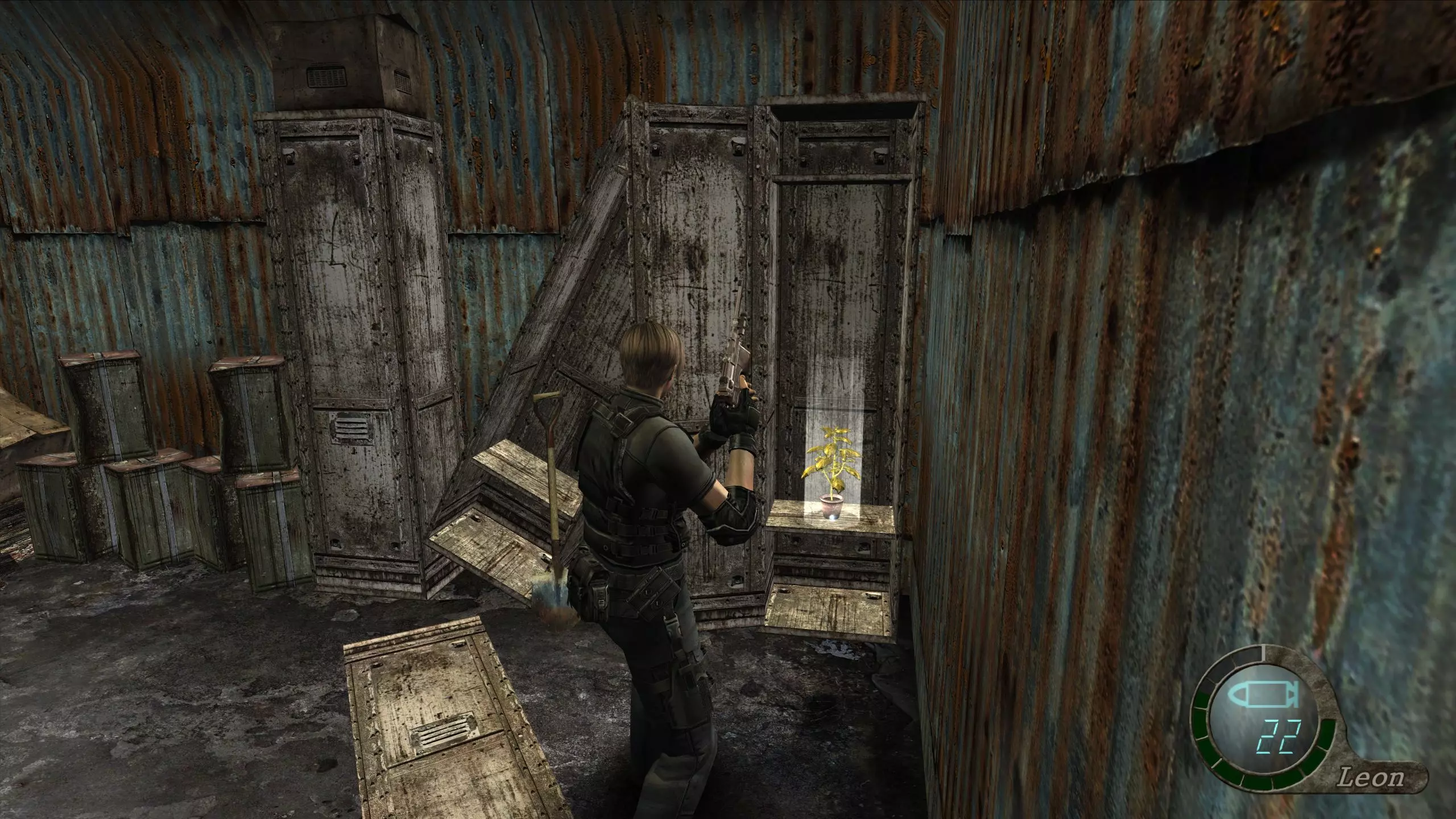 黄色药草 #9 从那里继续进入东侧房间,你会发现被里昂和艾什莉破坏的推土机。在角落的架子上可以找到黄色药草。