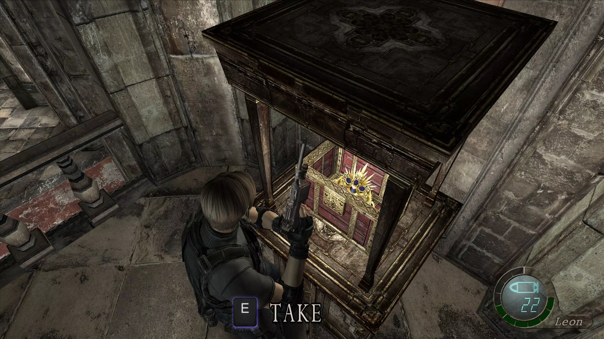 旧水道宝藏:皇冠宝石(可组合) 你需要做出选择。该区域的 Boss 会掉落皇冠宝石,它可以与皇冠组合。 不过,这个 Boss 是可选的,如果你拖延四分钟,就可以不击败它直接离开该区域。 如果你错过了这个宝藏,仍然可以将皇冠与另一件物品组合,售价为 27000 比塞塔,但如果皇冠与这两件物品都组合的话,售价将达到 48000 比塞塔。 你的手提箱里不会还放着那把占地方的火箭筒吧?