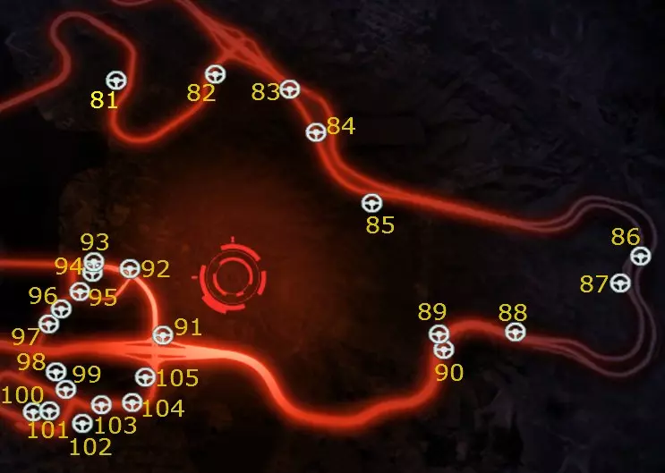 区域3 区域3中的车辆: 81. 保时捷911 Carrera S 82. SRT蝰蛇GTS 83. 兰博基尼Aventador LP 700-4 84. 路虎揽胜极光 85. 科尼赛克Agera R敞篷版 86. 阿尔法·罗密欧4C概念车 87. 梅赛德斯-奔驰SLS AMG 88. 卡特汉姆Superlight R500 89. 福特野马Boss 302 90. BAC Mono 91. 蓝旗亚Delta HF Integrale 92. 布加迪威龙Super Sport 93. 梅赛德斯-奔驰SLS AMG 94. 保时捷918 Spyder 95. 阿斯顿·马丁V12 Vantage 96. 路虎揽胜极光 97. BAC Mono 98. 道奇挑战者SRT-8 99. 保时捷911 Carrera S 100. 马鲁西亚B2 101. 保时捷Panamera Turbo S 102. 雪佛兰科迈罗ZL1 103. 梅赛德斯-奔驰SL 65 AMG 104. 兰博基尼盖拉多 105. 雷克萨斯LF-A 它们在地图上的位置与连续编号对应