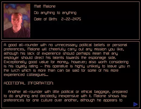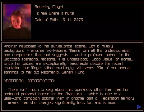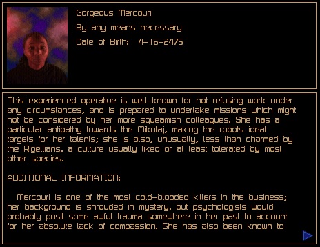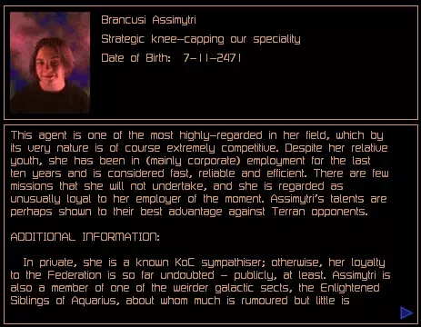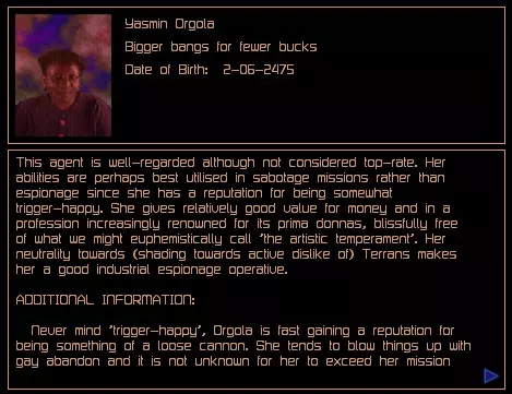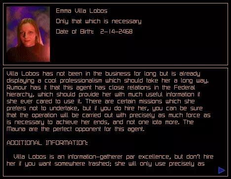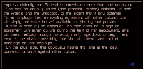 关于可从商人处购买的主管和特工的补充信息。 安德雷亚娜·佩雷尔斯 薪资:25,000 信用点