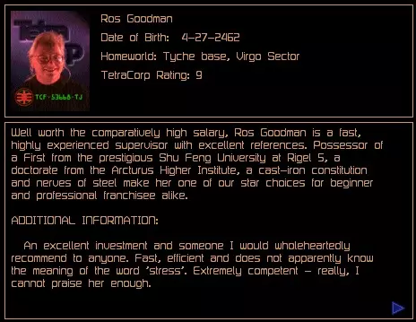 罗斯·古德曼 薪水:25,000 信用点