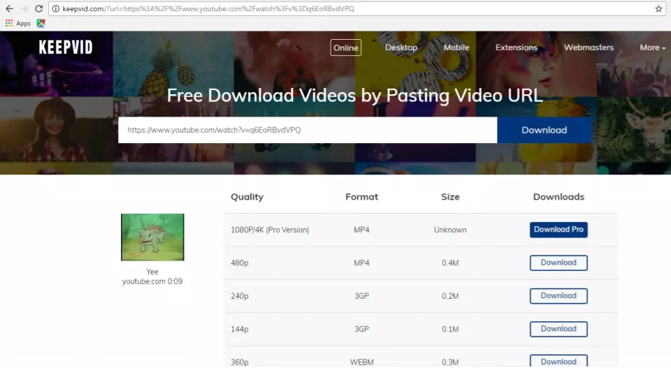 第二部分。 将视频的URL粘贴(Ctrl+V)到要求输入的栏中。 按回车键,然后选择下方的视频画质。 (为展示效果,请选择最高画质。如果只是播放音乐,保持144p即可。)