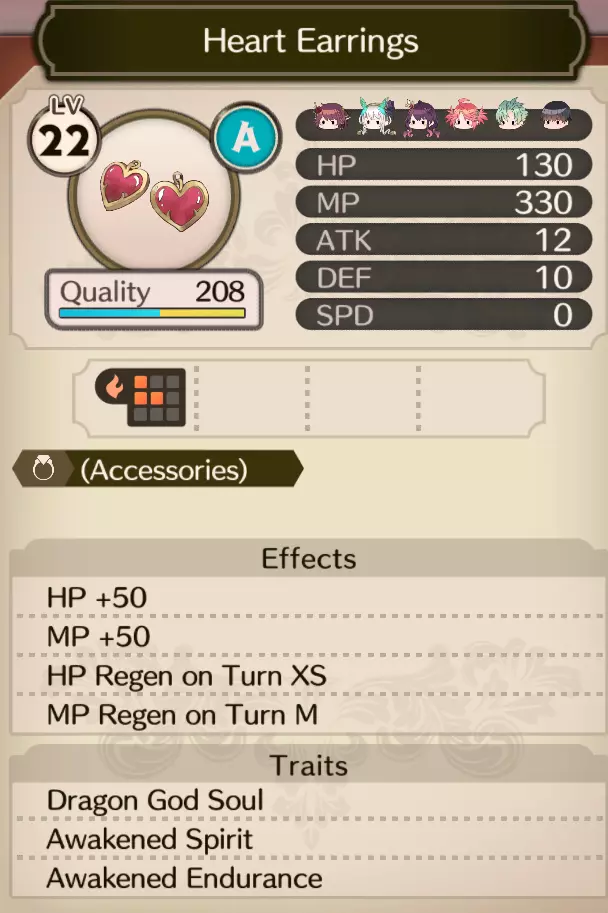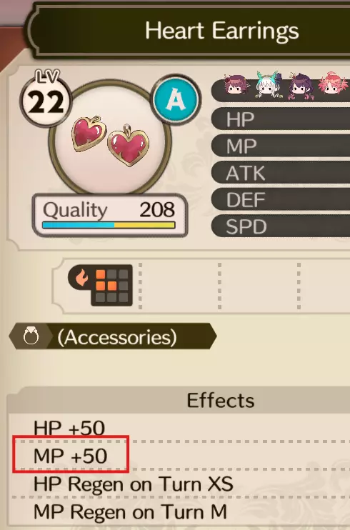 饰品部分将有2件增加MP的装备:紫丁香宝石项链(Lilac Jewel Necklace)和心形耳环(Heart Earrings)