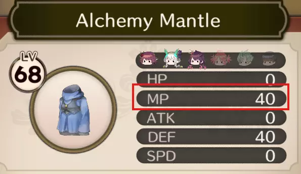 普拉芙妲的装备以增加MP的特性为主,次要附加效果为提升道具伤害。