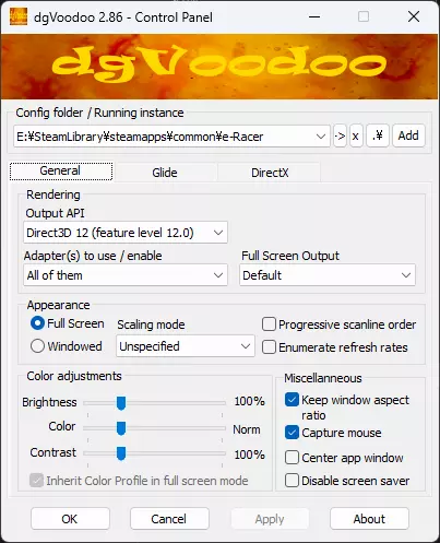 双击dgVoodooCpl.exe 按以下步骤设置: 常规选项卡: