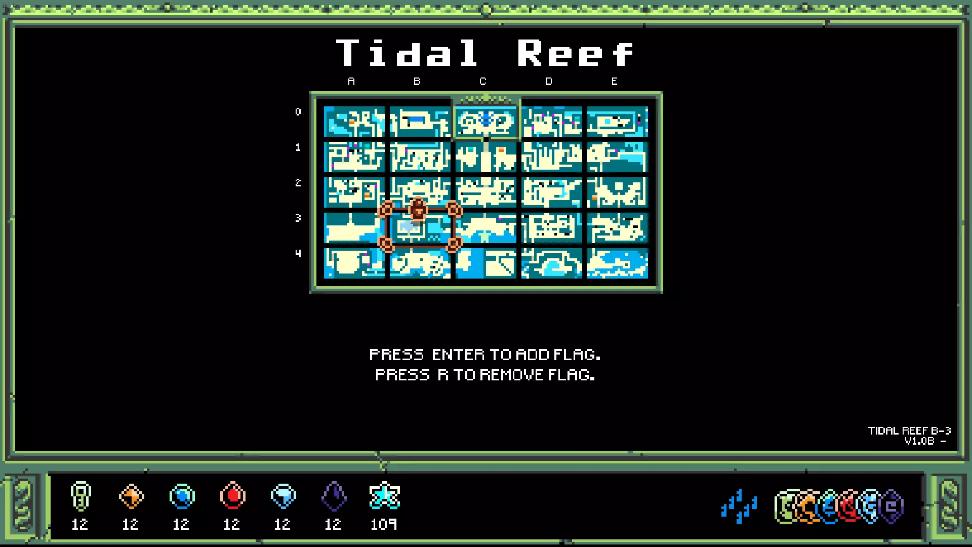 A2区域有海豹谜题 D1区域有乐器谜题 大地宝石:10个 黑色宝石:2个(1个在A2区域的海豹后面,1个在隐藏通道后面) 额外提示:地下一星区域需要脚蹼 额外提示:地下部分墙壁可以破坏 潮汐礁
