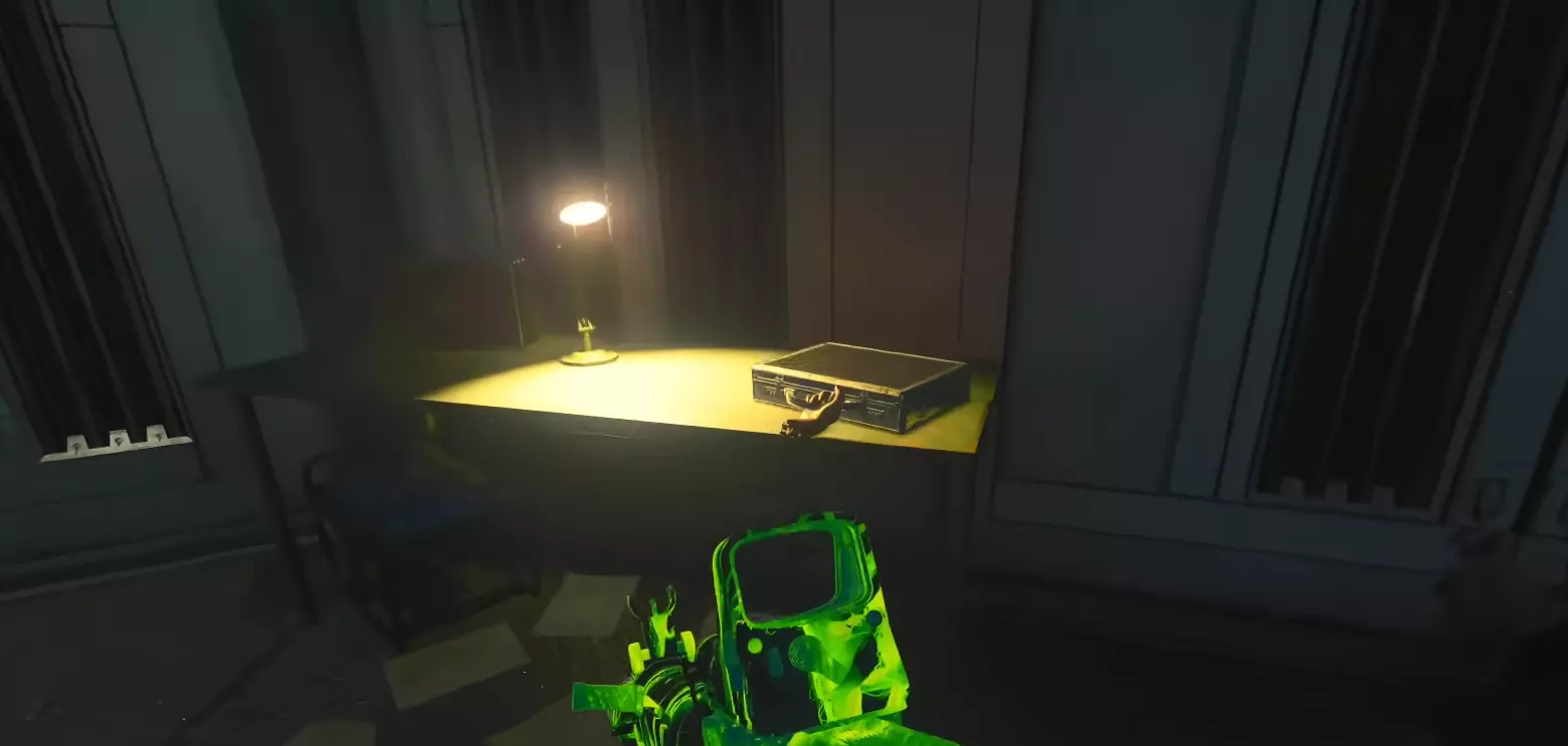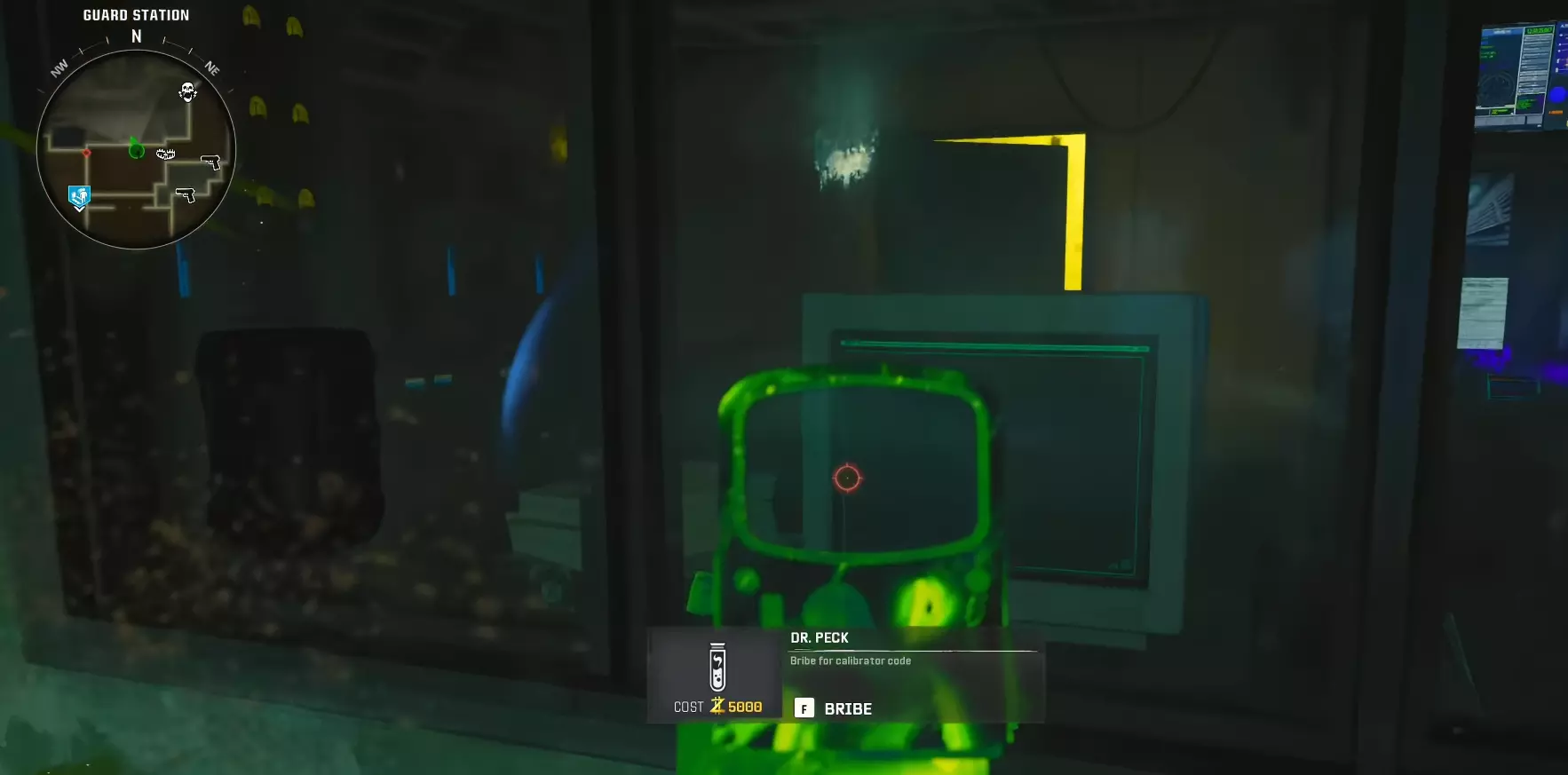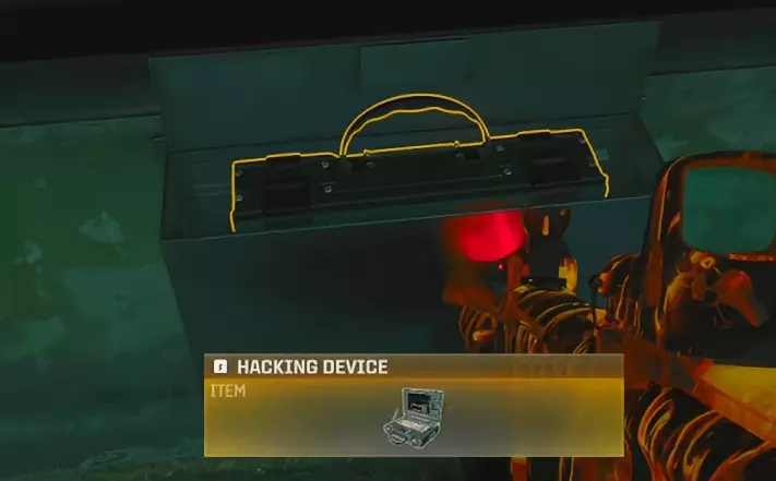 步骤3 - 收集黑客装置 返回警卫站,与玻璃互动。一段对话后,黑客装置会被交给你,拿起它。