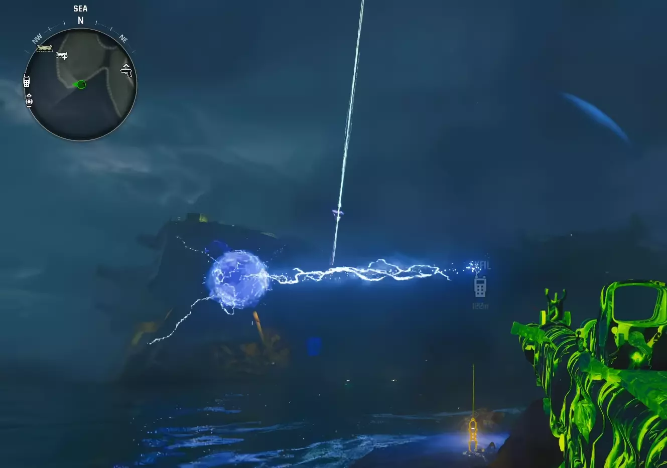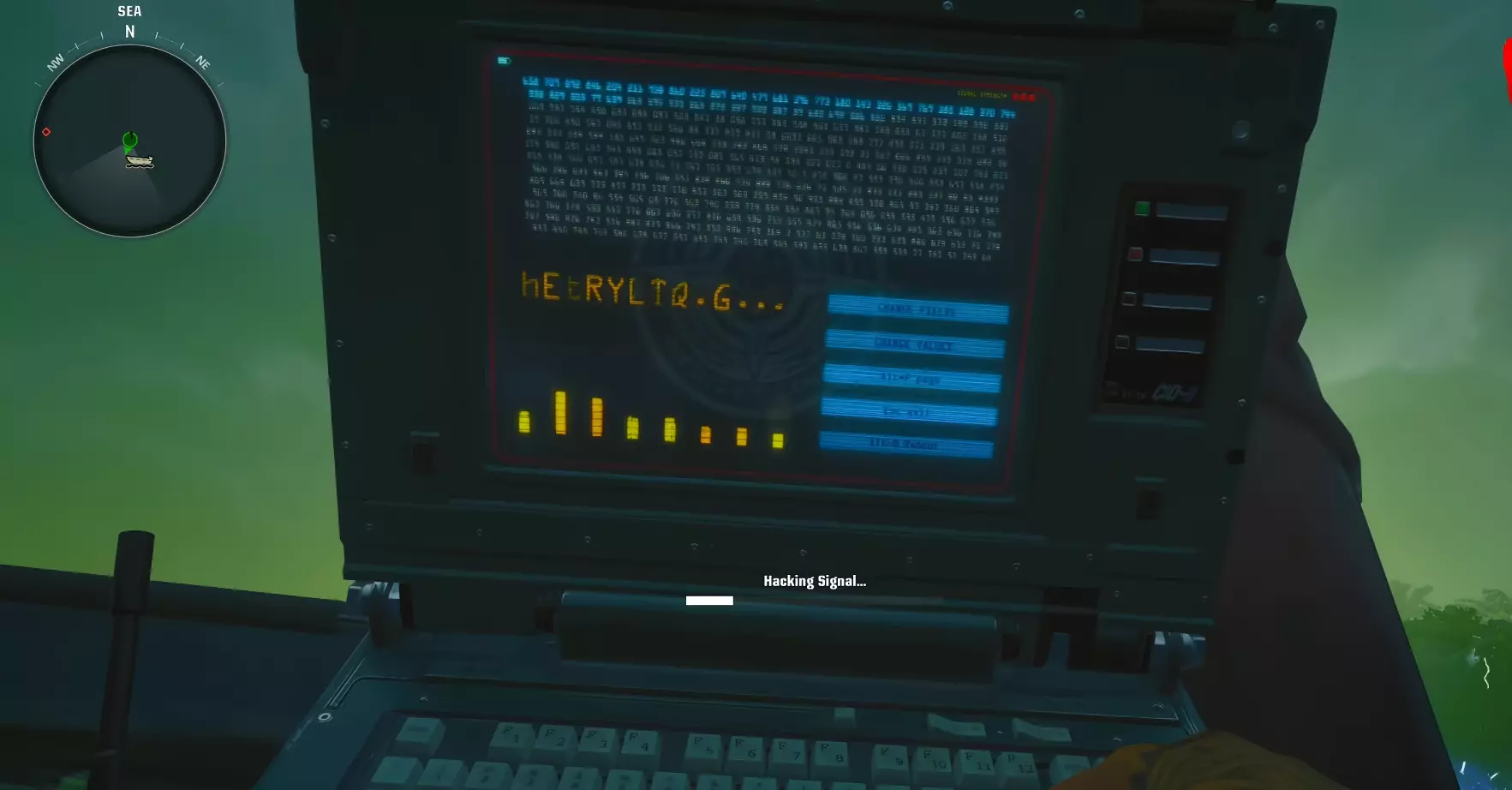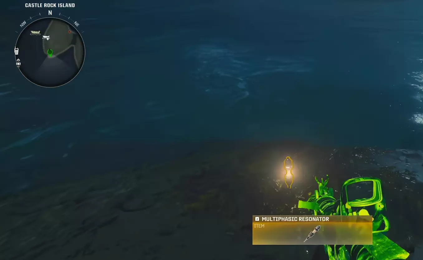 在第一个岛屿处乘船绕岛一圈,然后跳入水中。与信标互动以取出黑客设备,并开始入侵信标。