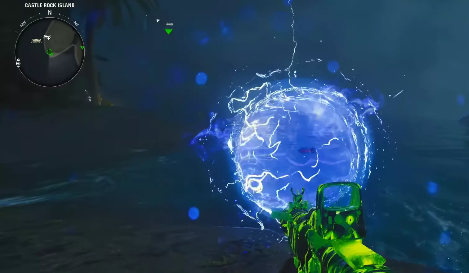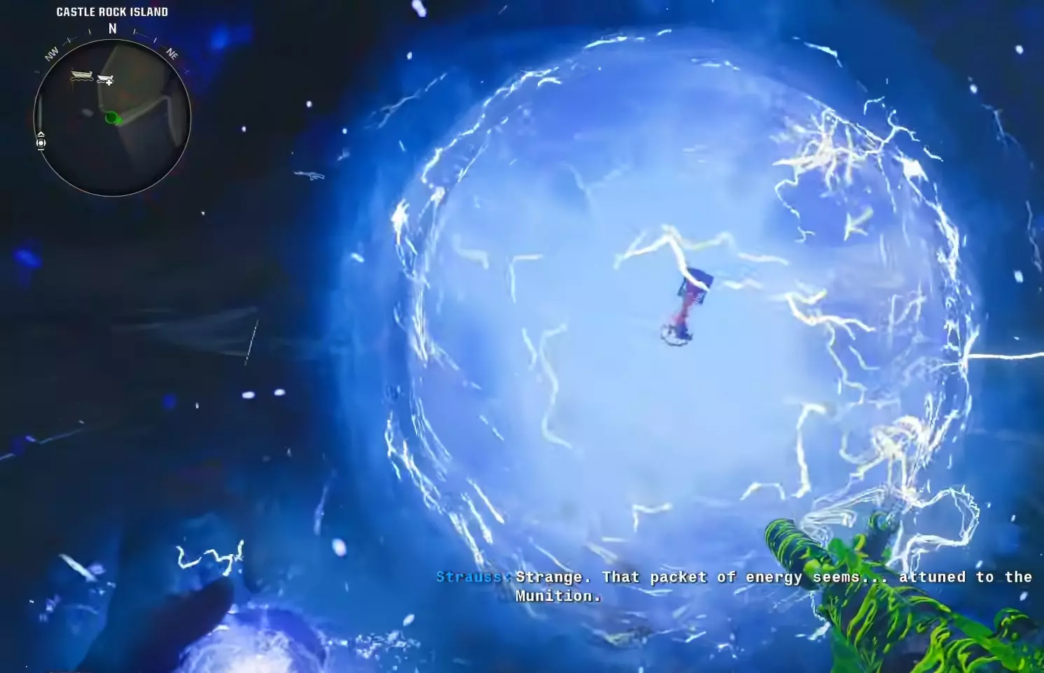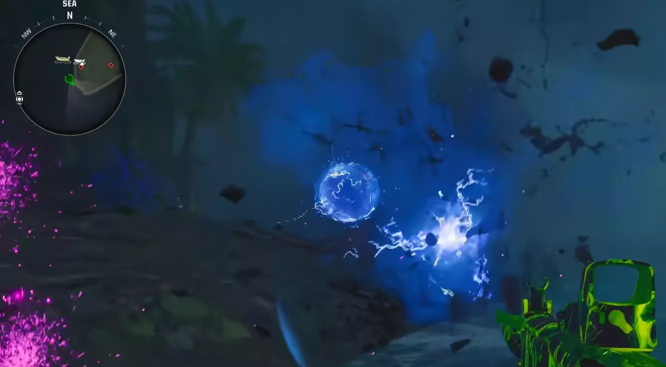 在第一个岛屿处乘船绕岛一圈,然后跳入水中。与信标互动以取出黑客设备,并开始入侵信标。