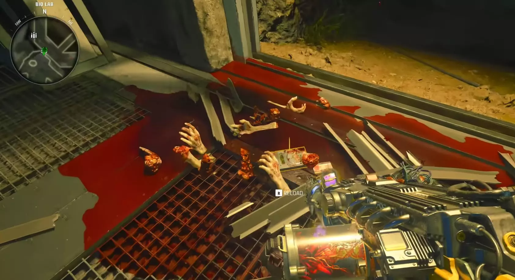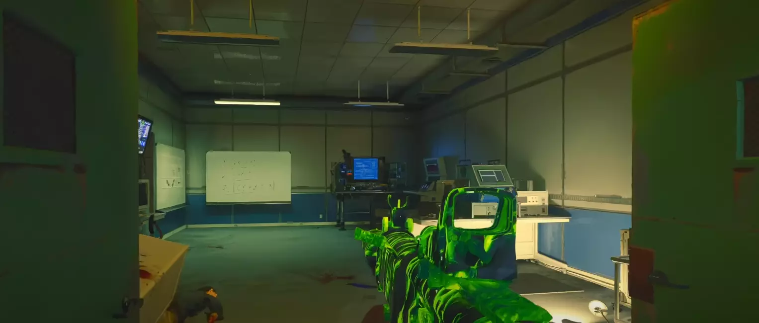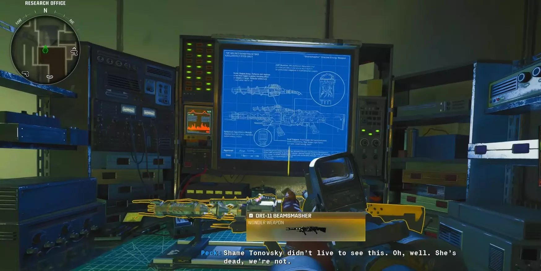 第一步 - 打开研究室 使用位于 Pack-A-Punch 机器对面的控制台,乘坐带有 Pack-A-Punch 的电梯上楼。