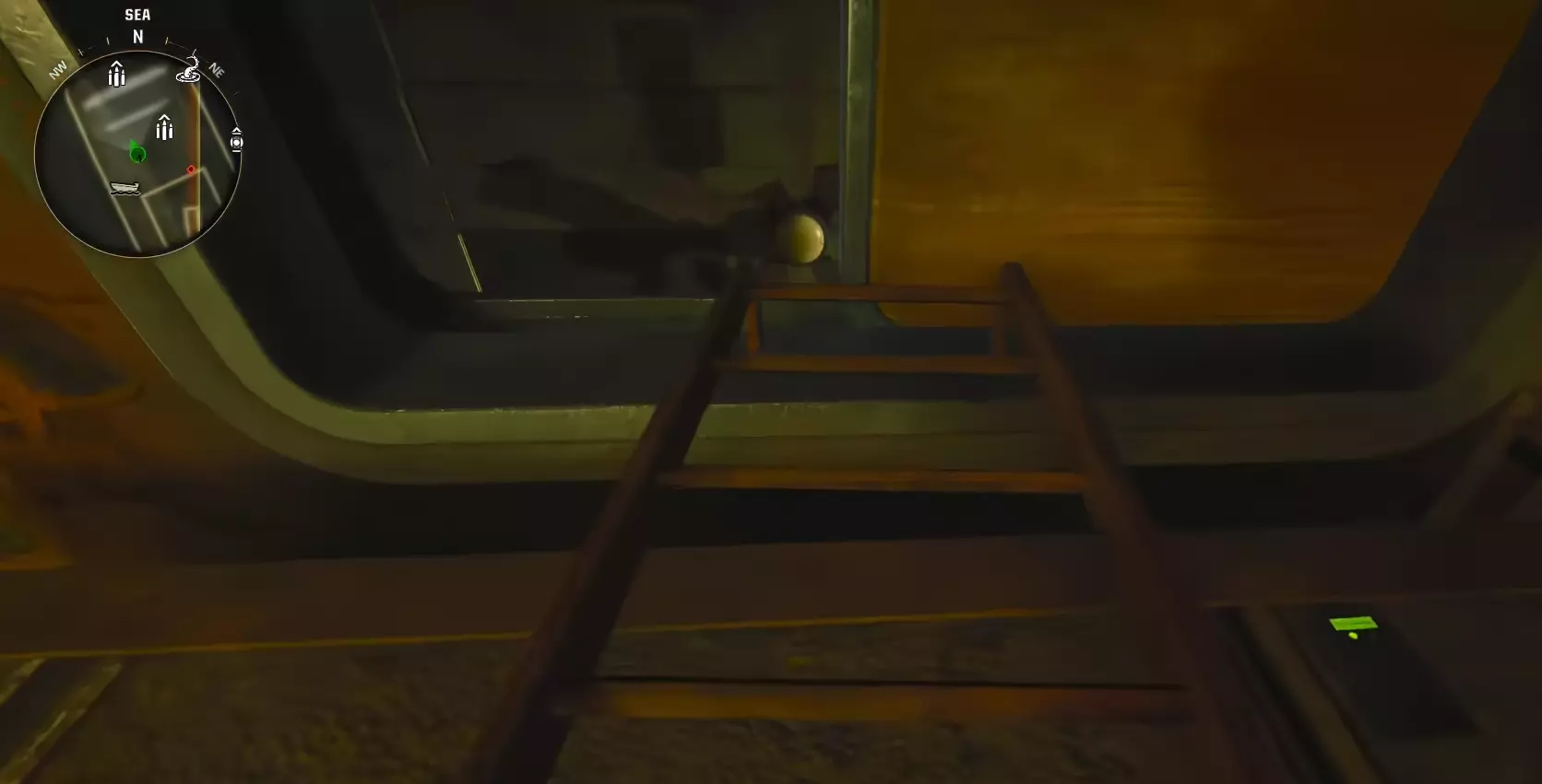 在货船内部,找到这个配电板和梯子。