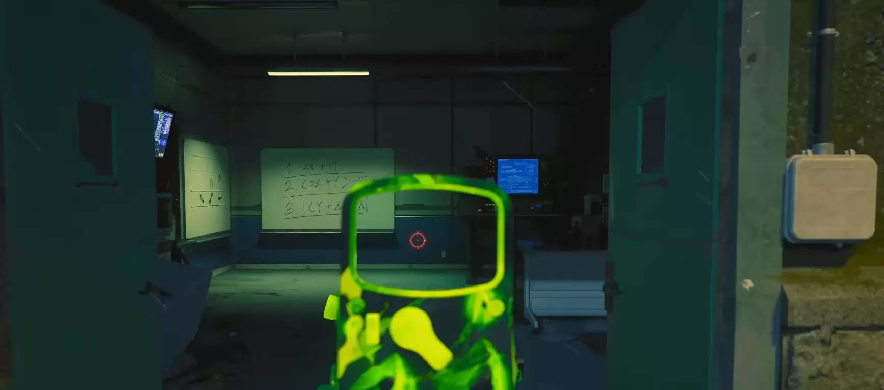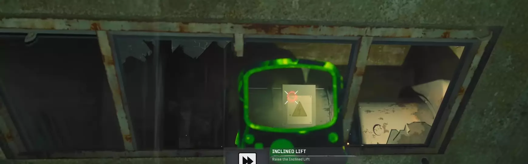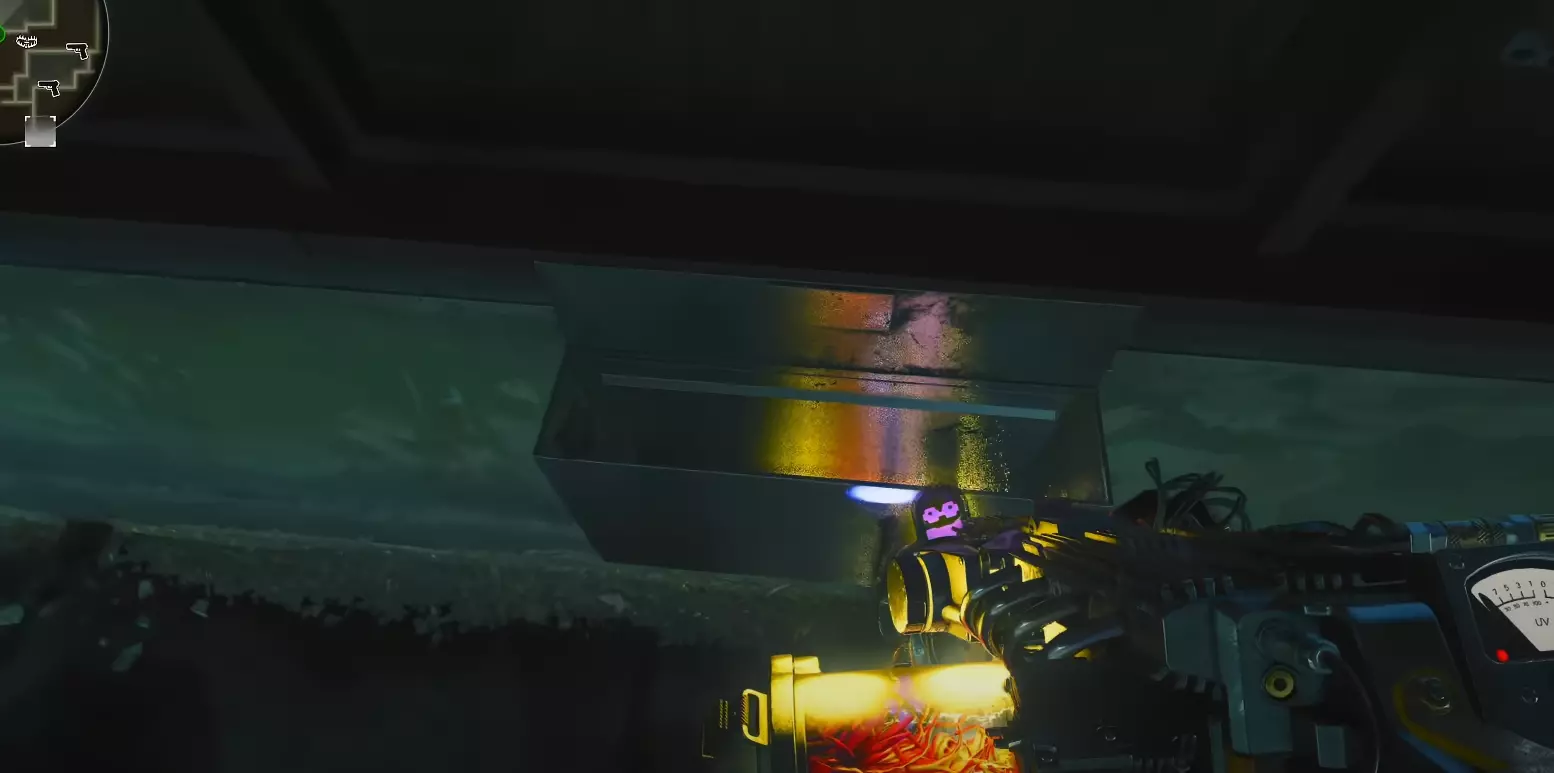 当你向上移动时,看向右侧的那个(物体),并用死亡电线武器射击里面的电源箱。