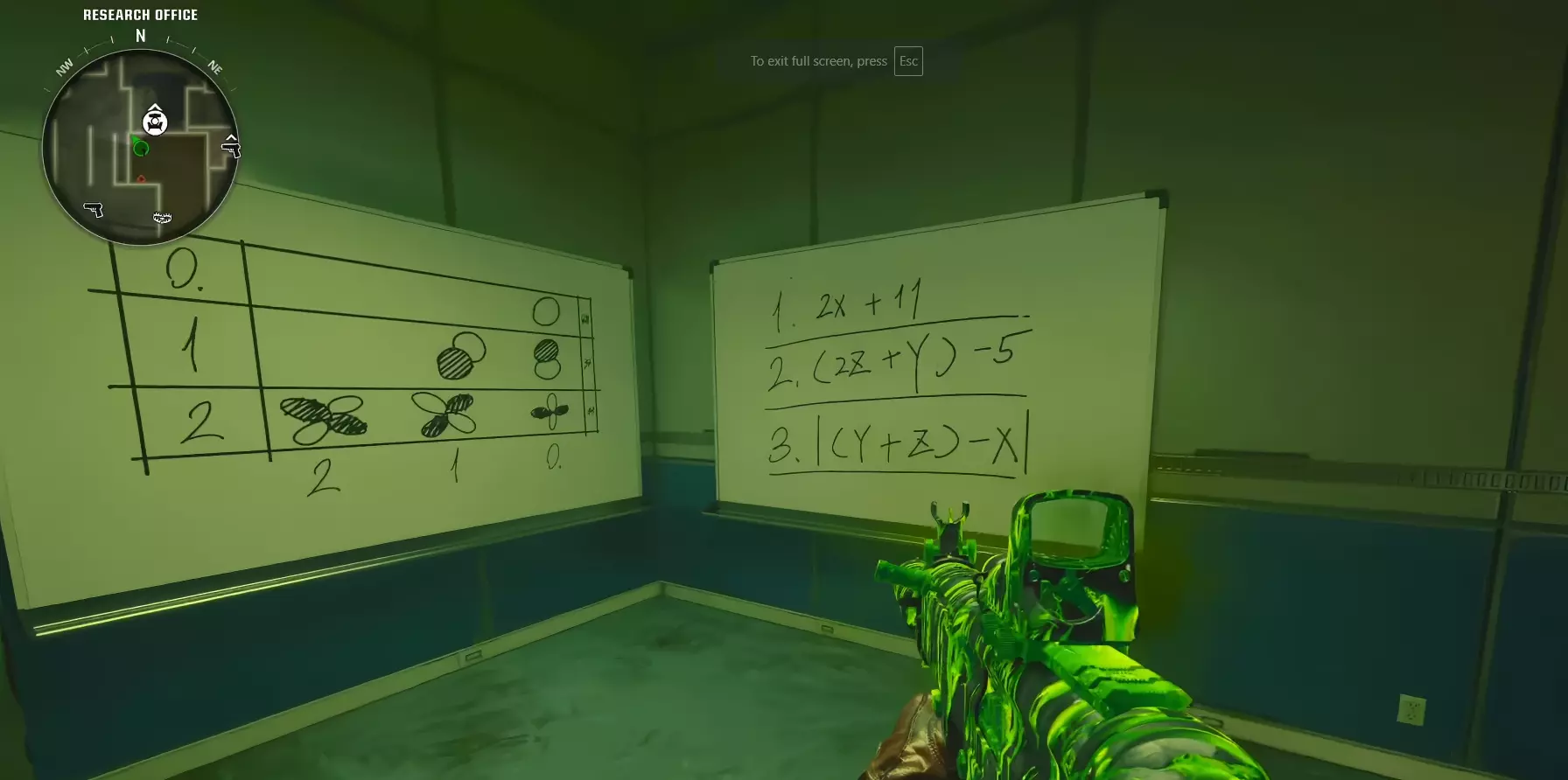 在这种情况下,数字是6。 密码的第三个数字在工程区,就在制作台旁边的墙上。