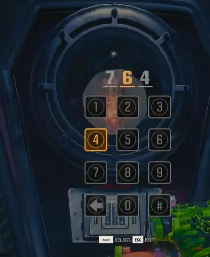 回到生物实验室的内森身边,与键盘互动并输入我们获得的代码。在这个场景中,代码是764。