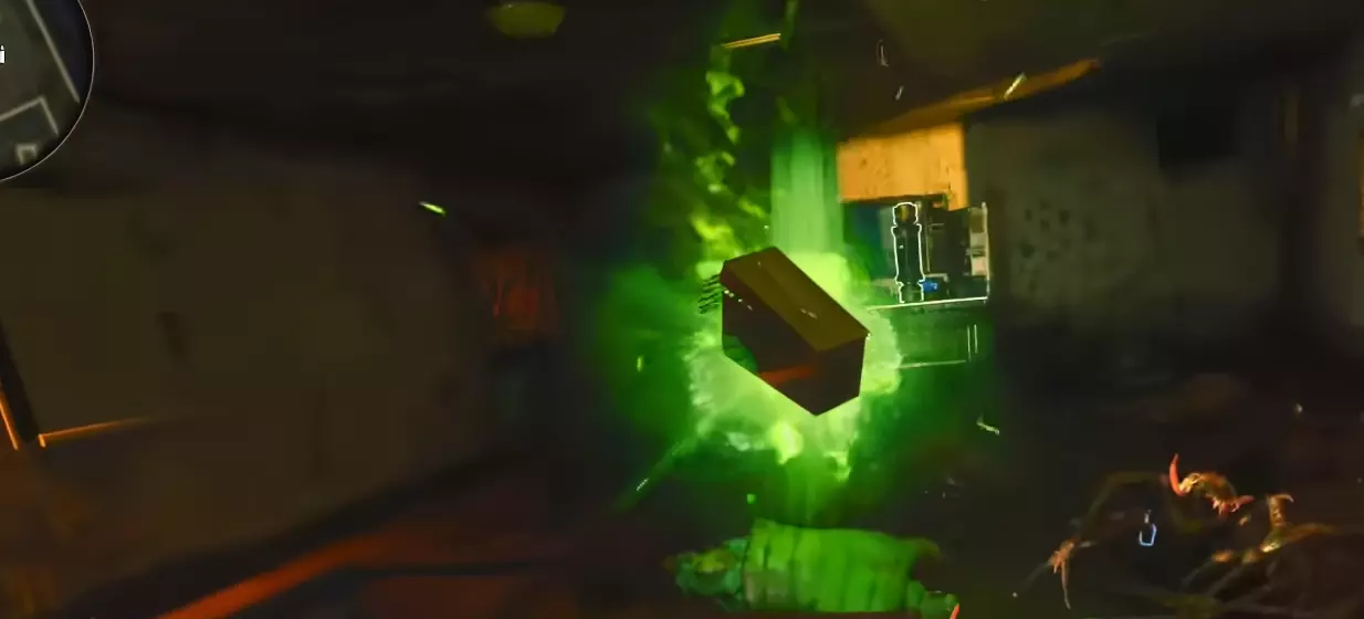 如果你错过了这个,它可以从下方射击。 下一个箱子在你到达电梯顶部后,位于【 Pack-A-Punch 】机器的后面。