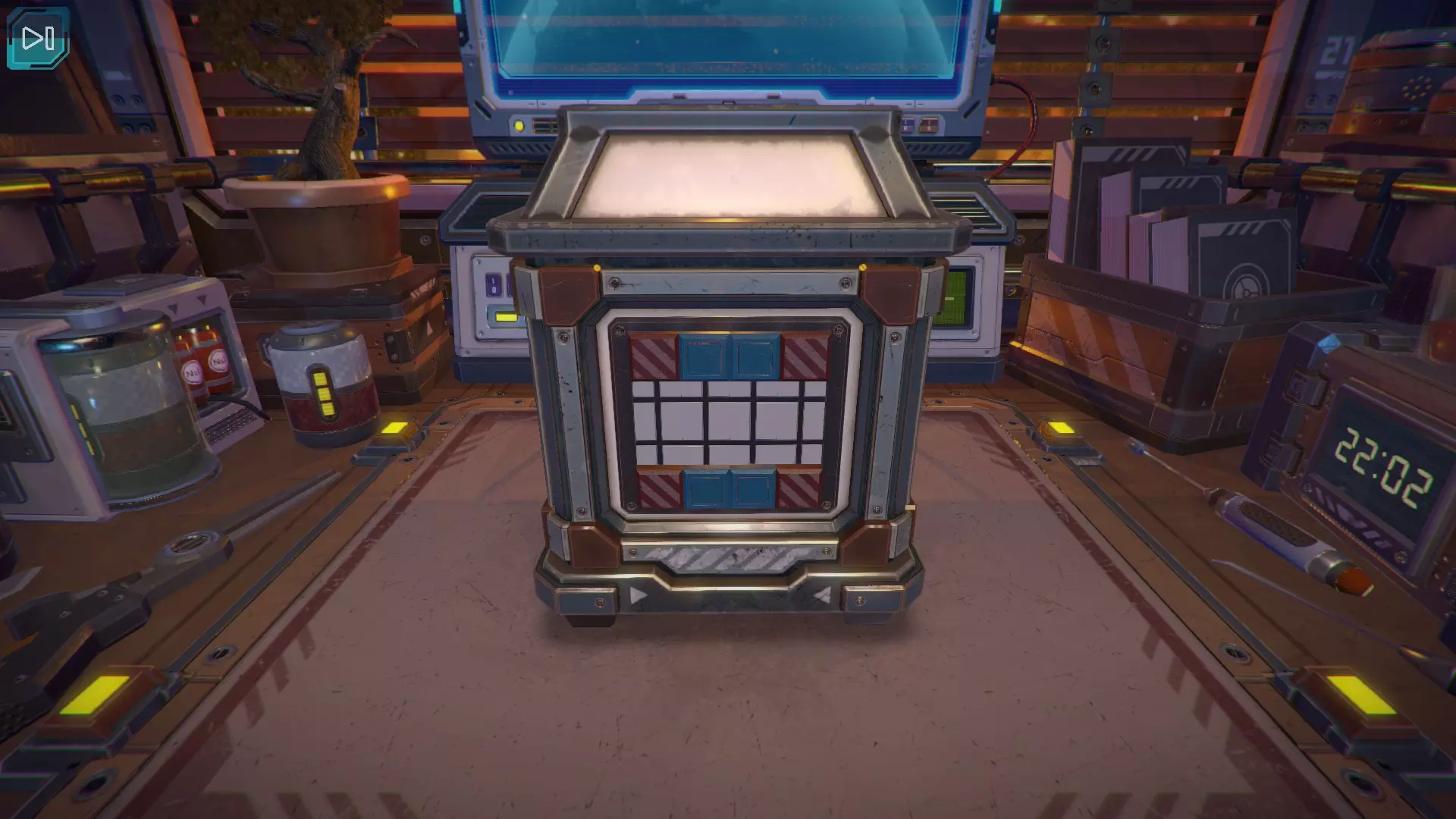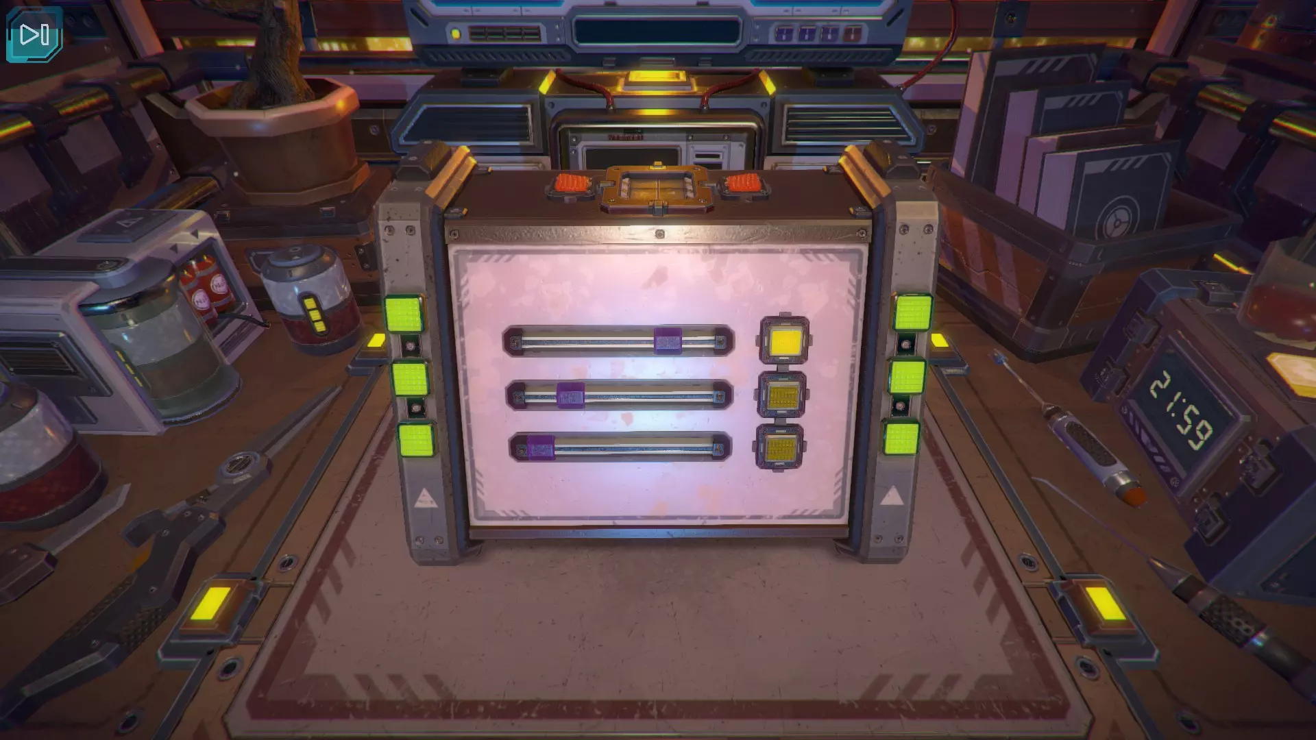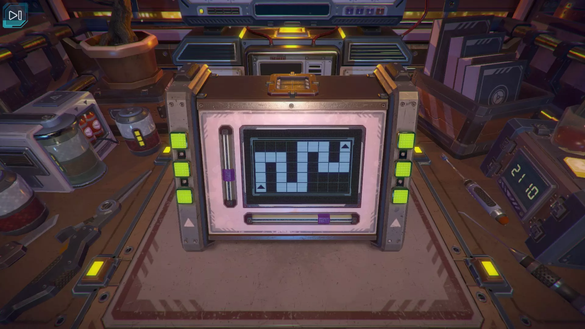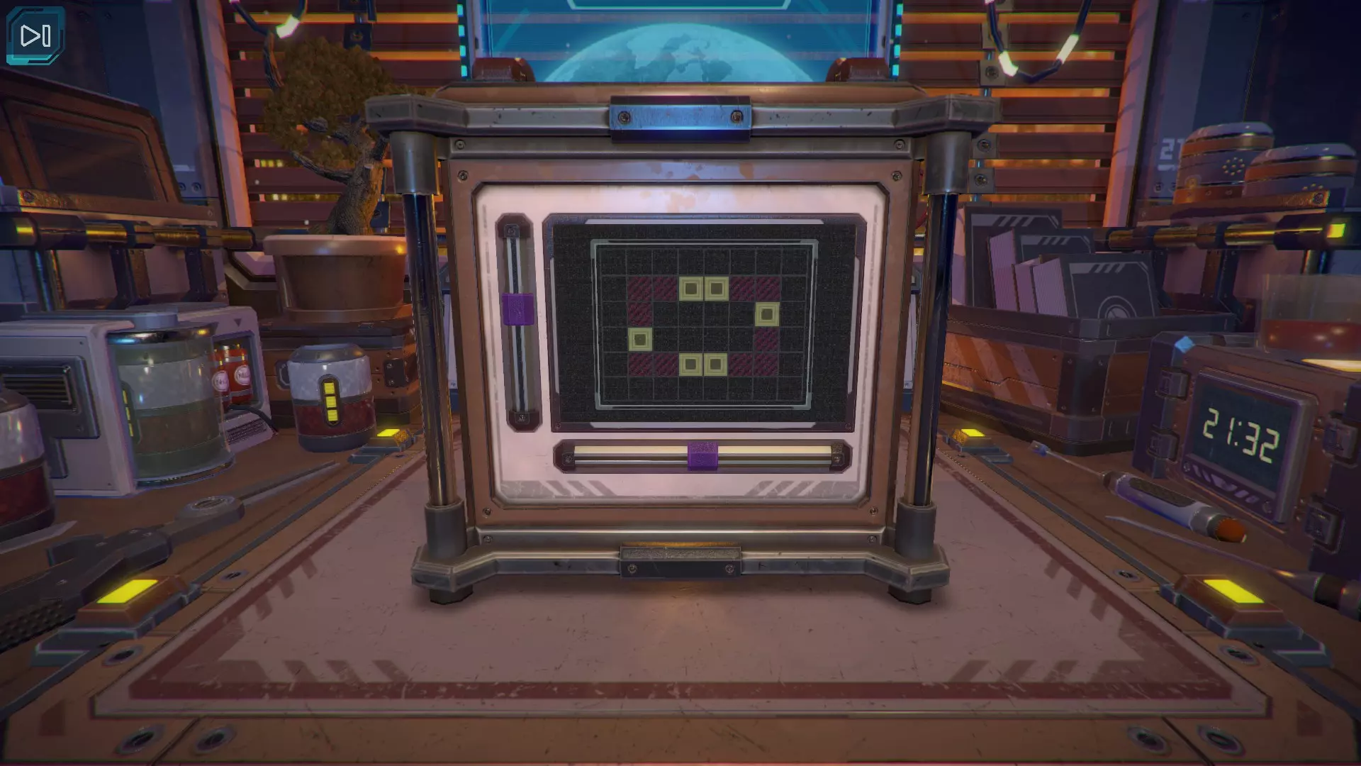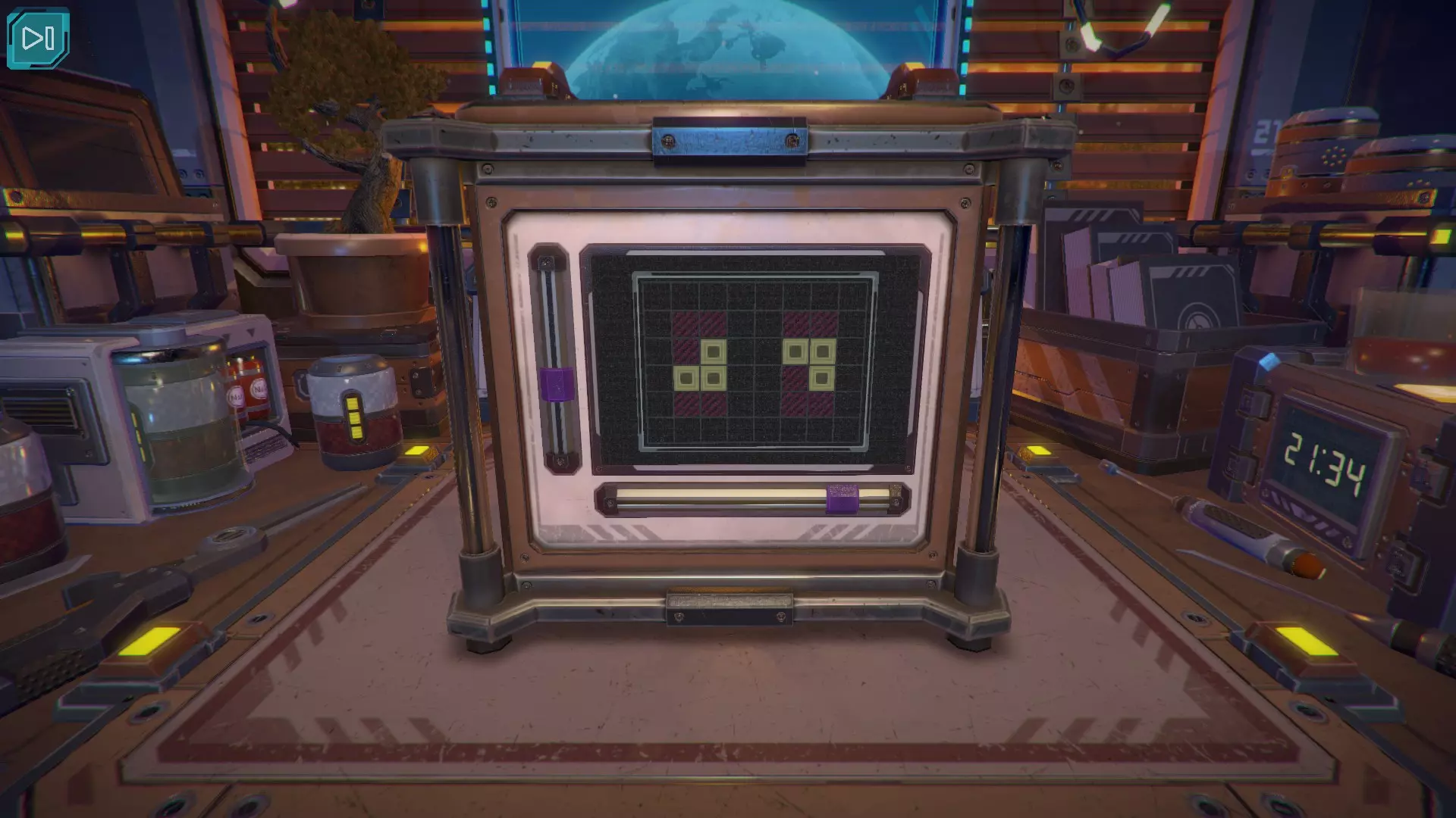第8关:通过移动显示器边缘的两个紫色滑块,打开箱子后面的路径。