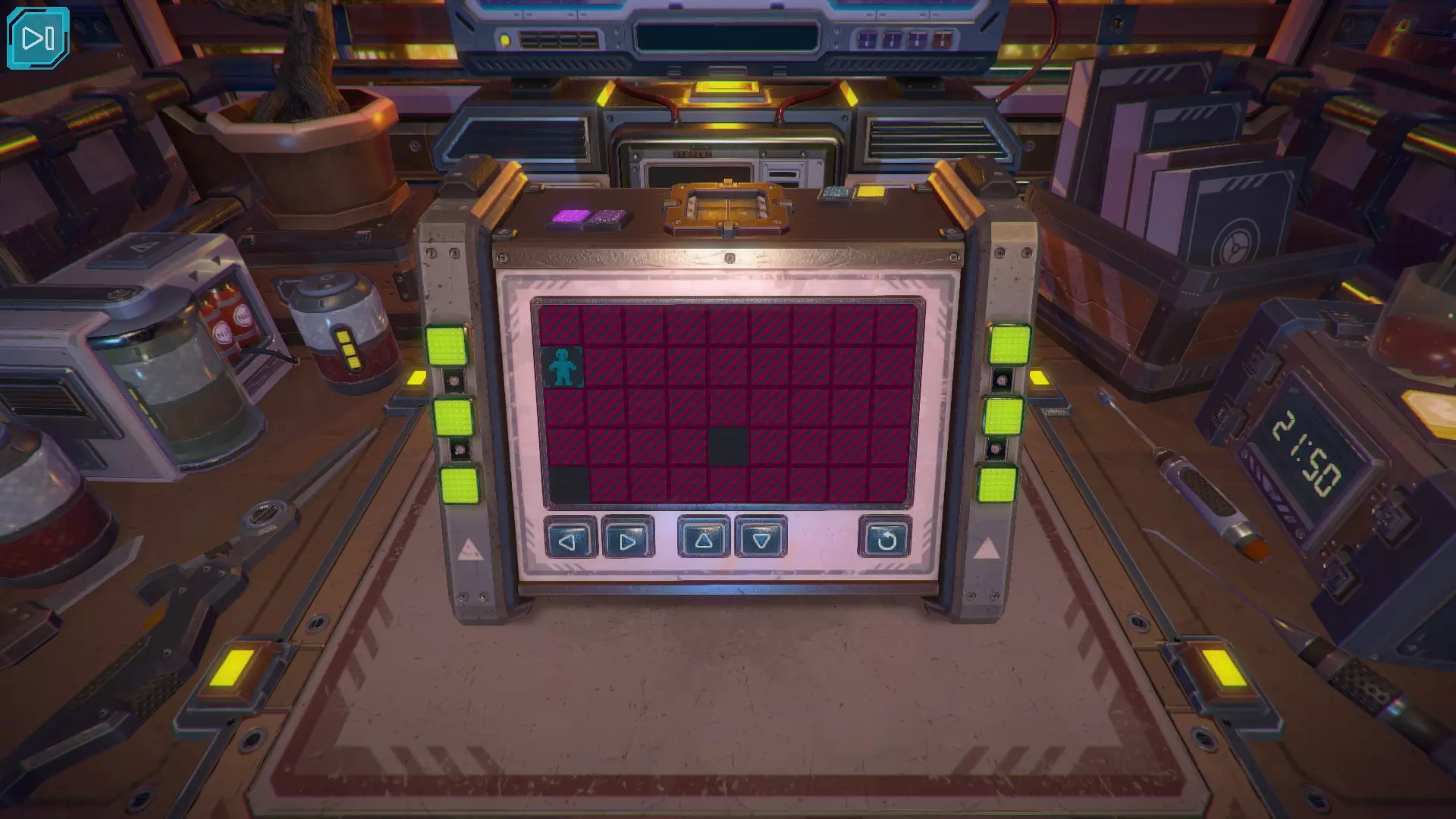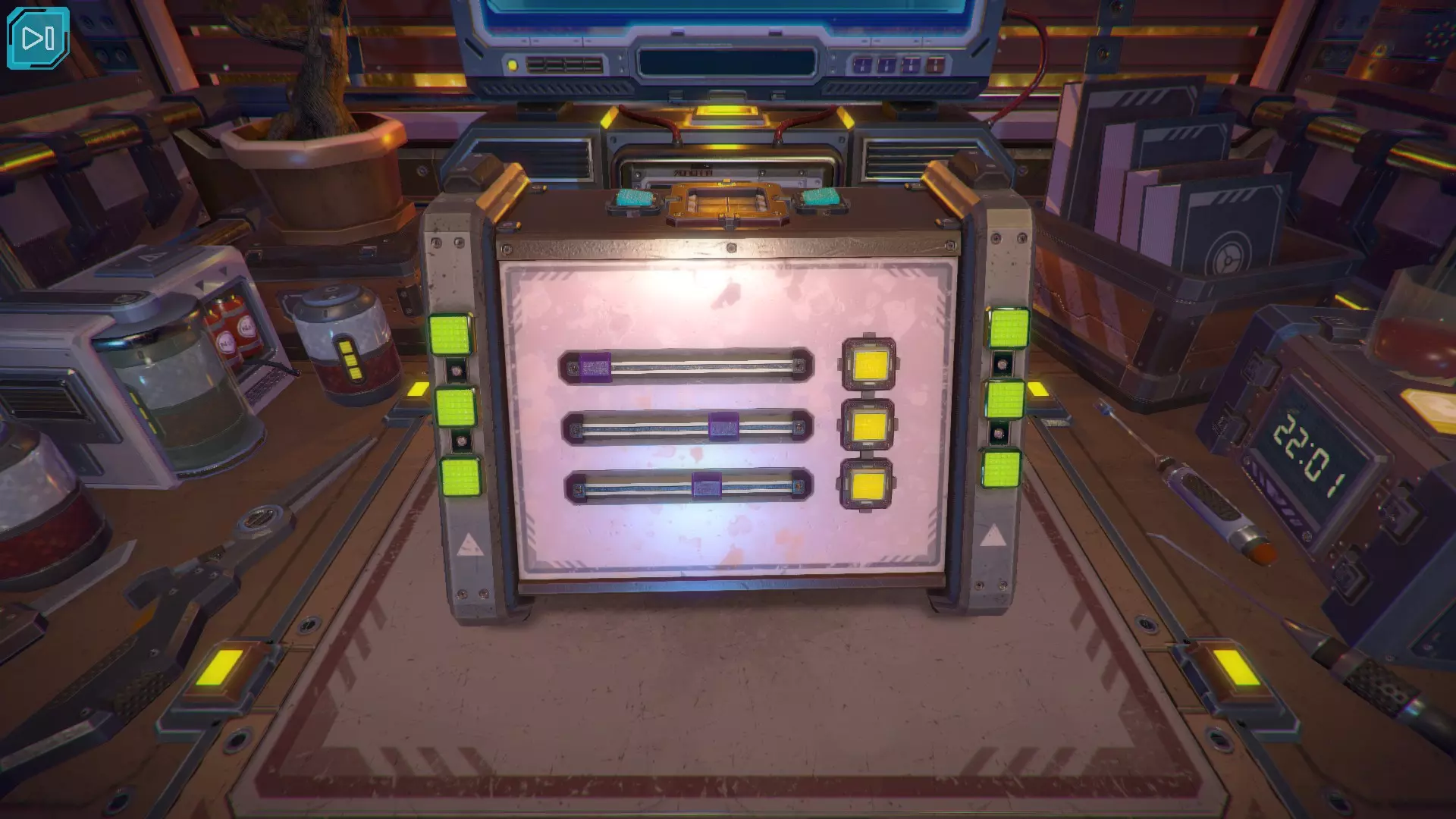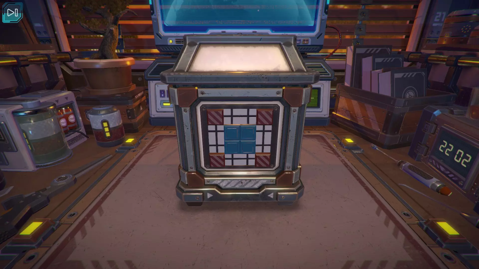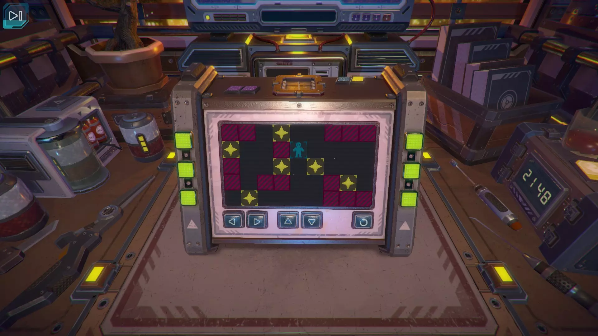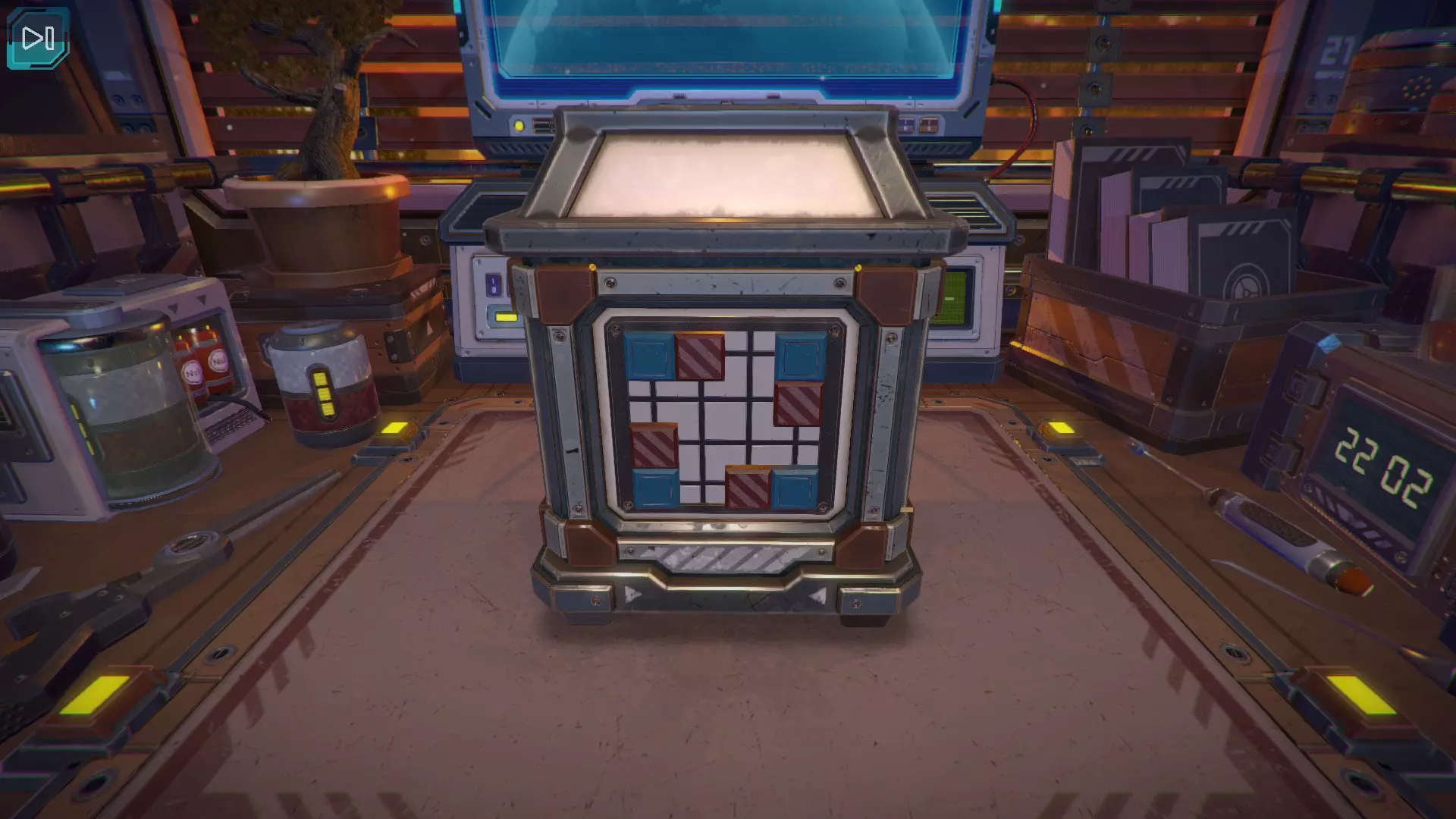 第8关:通过移动显示器边缘的两个紫色滑块,打开箱子后面的路径。