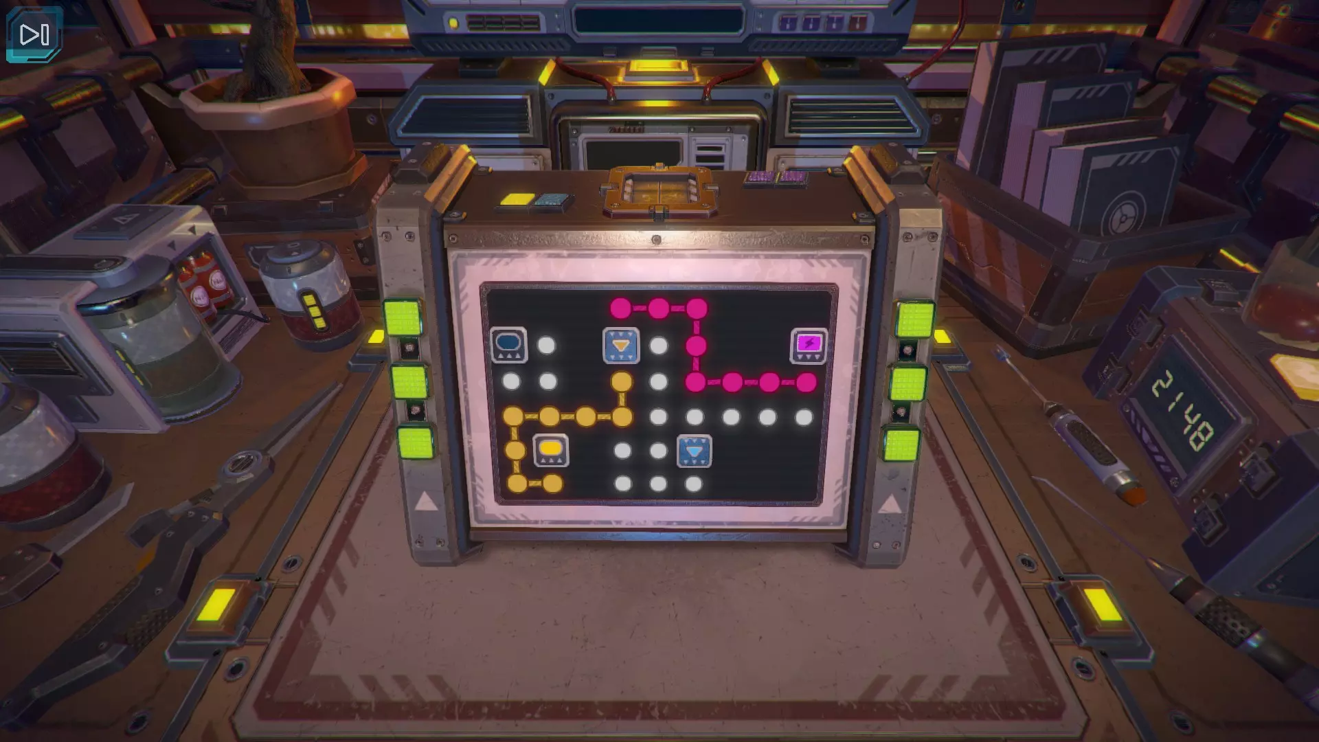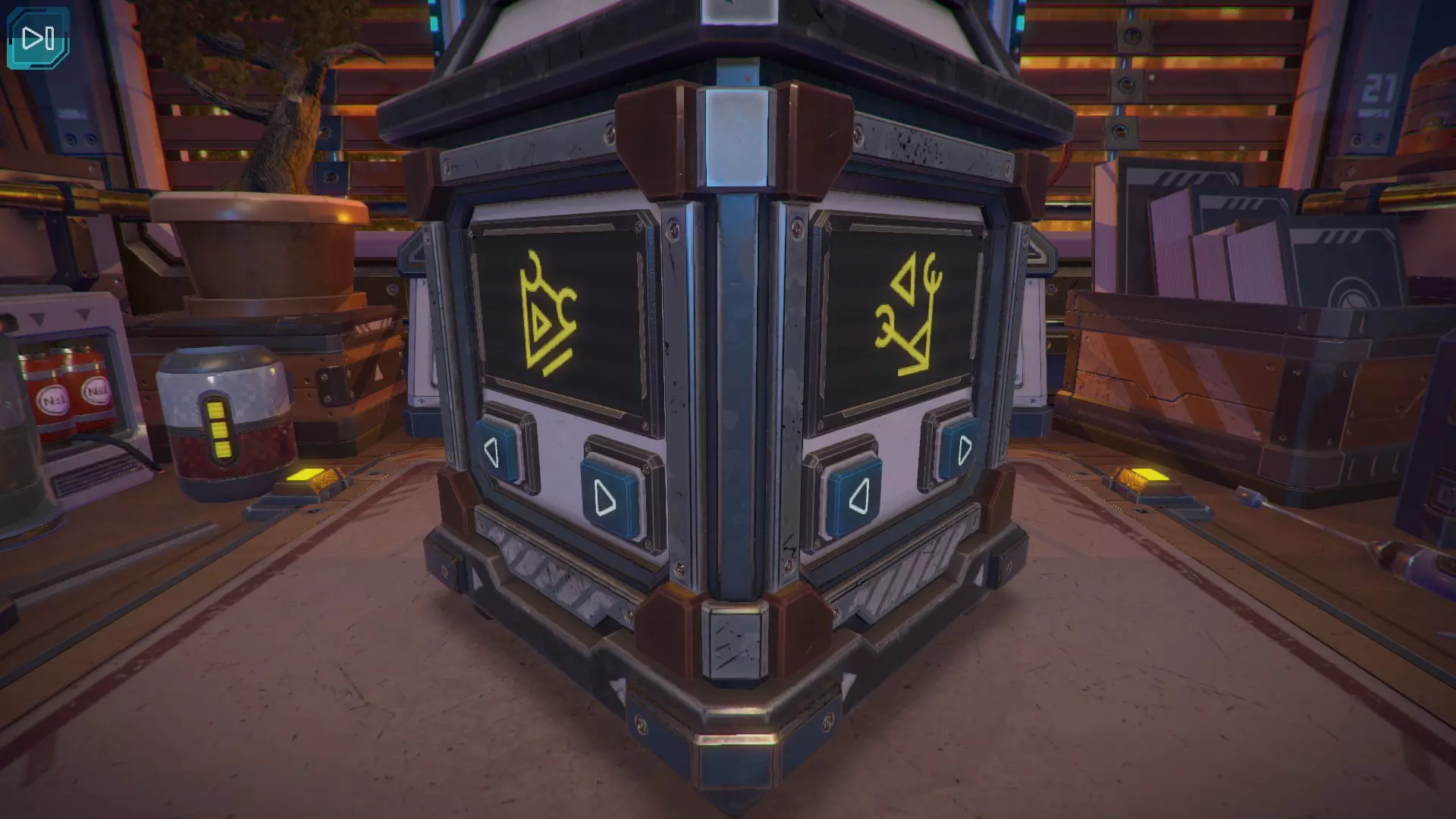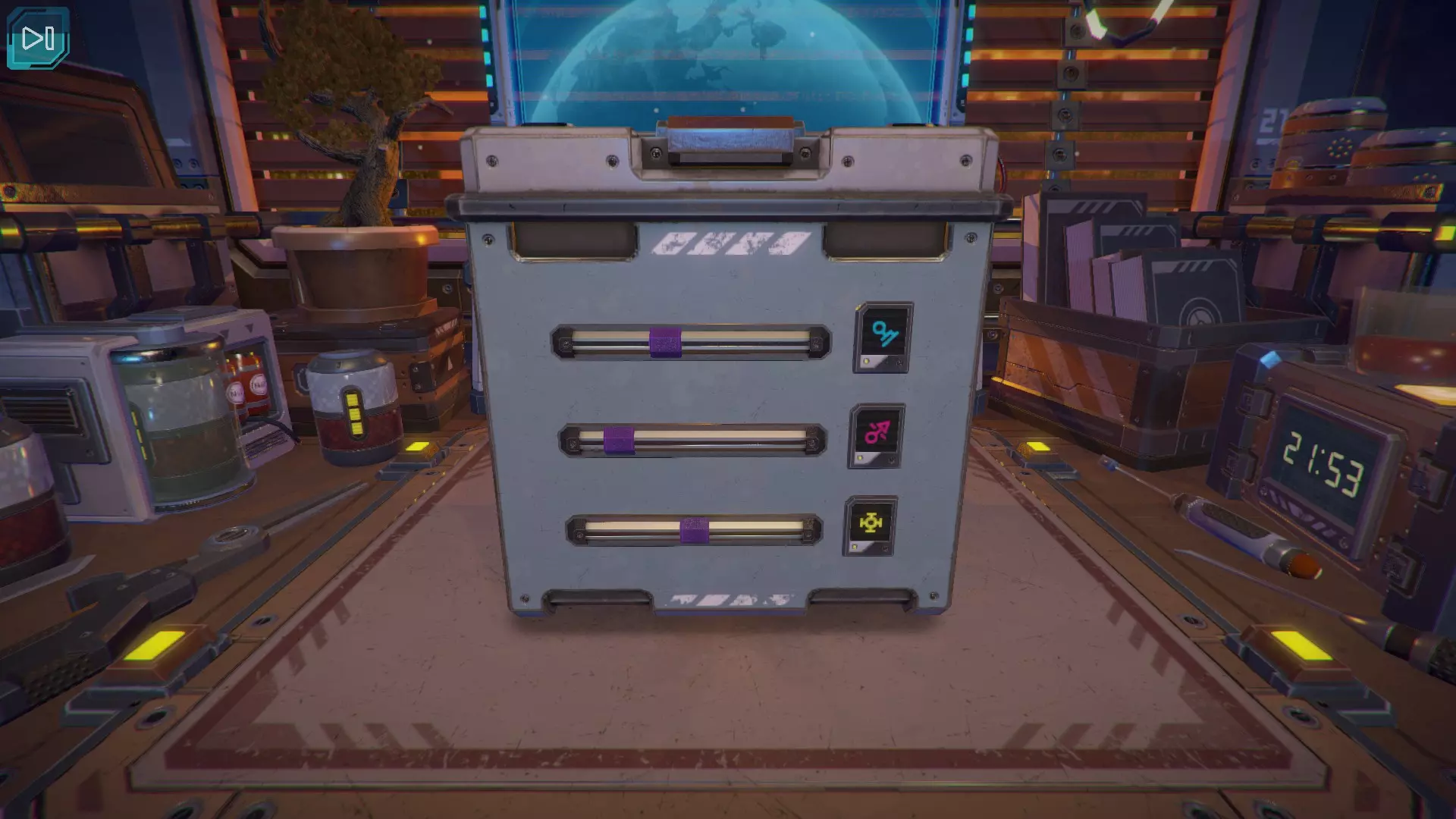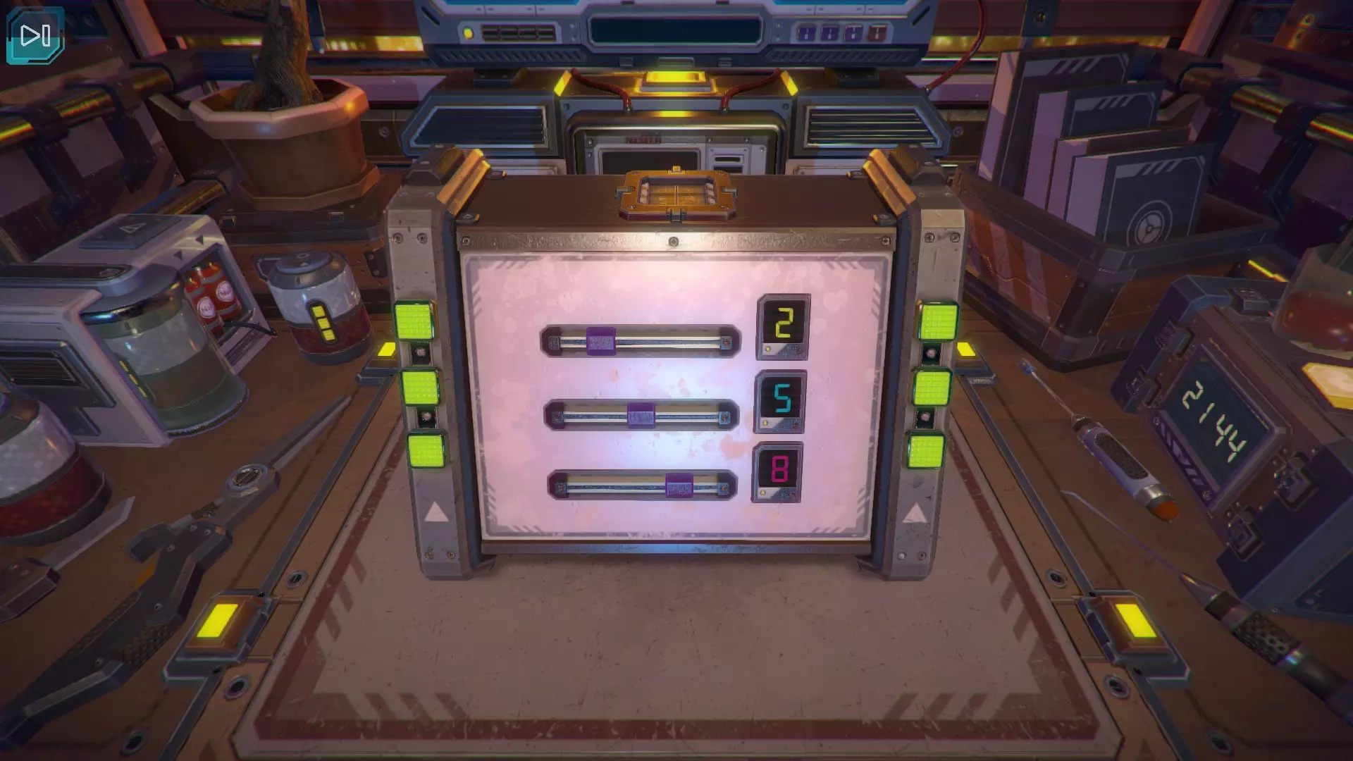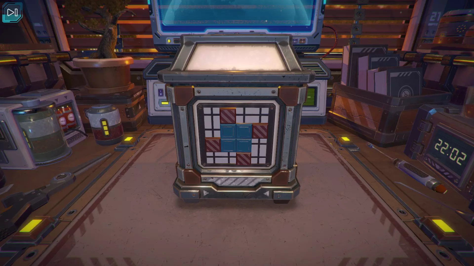 第8关:通过移动显示器边缘的两个紫色滑块,打开箱子后面的路径。